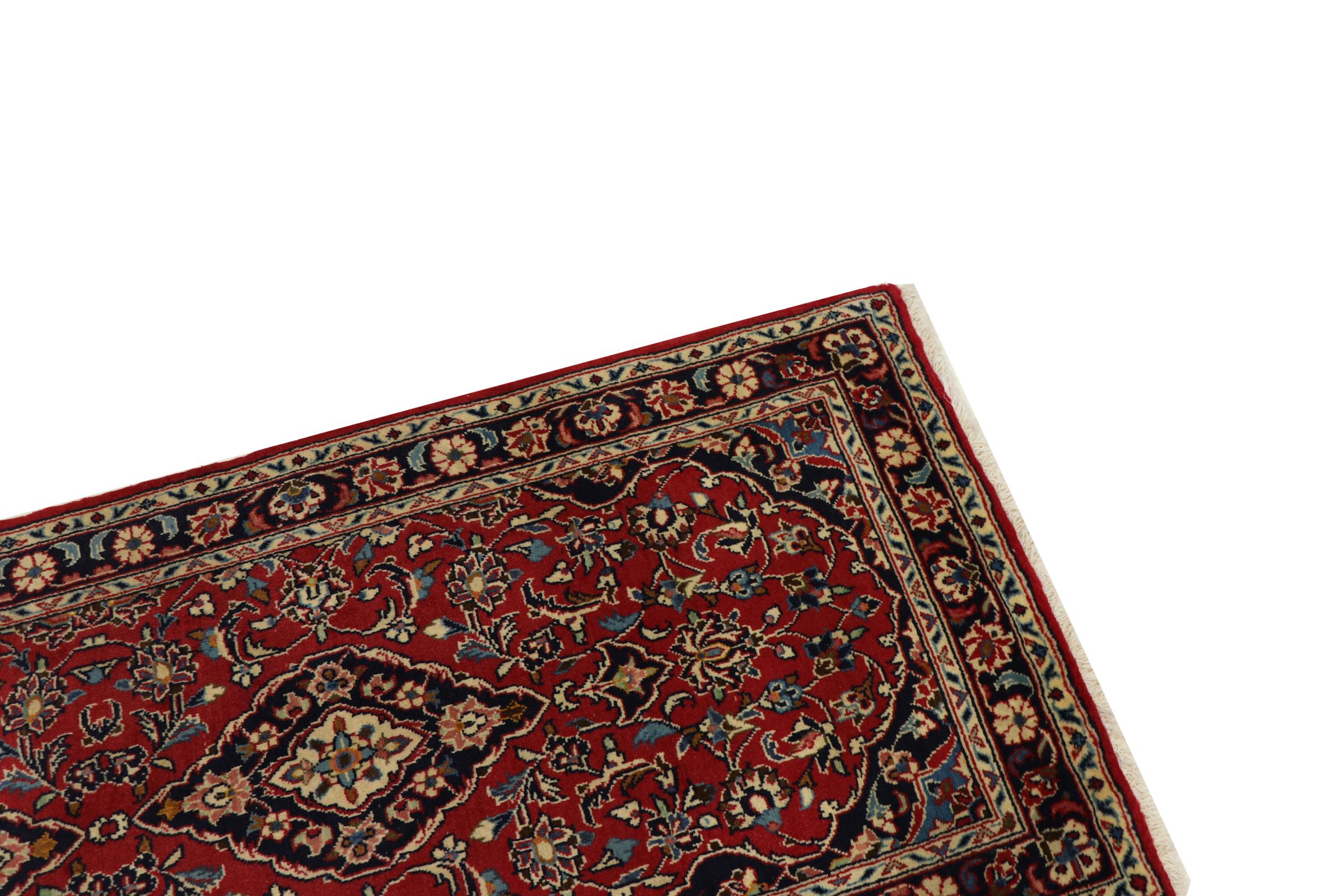 Este tapete de Kashan (Keshan) é mantido em seu design persa muito tradicional e típico com belos ornamentos. Os tapetes Kashan são muito populares devido ao seu design excepcionalmente elegante. Esses tapetes são originários de Kashan, uma cidade na antiga Rota da Seda. Este tapete foi feito à mão com lã de ovelha de alta qualidade e será um destaque único em sua casa.