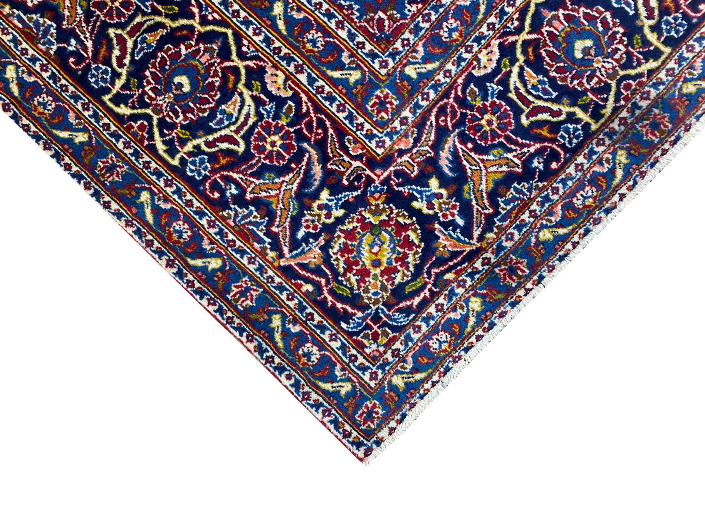 Este tapete de Kashan (Keshan) é mantido em seu design persa muito tradicional e típico com belos ornamentos. Os tapetes Kashan são muito populares devido ao seu design excepcionalmente elegante. Esses tapetes são originários de Kashan, uma cidade na antiga Rota da Seda. Este tapete foi feito à mão com lã de ovelha de alta qualidade e será um destaque único em sua casa.