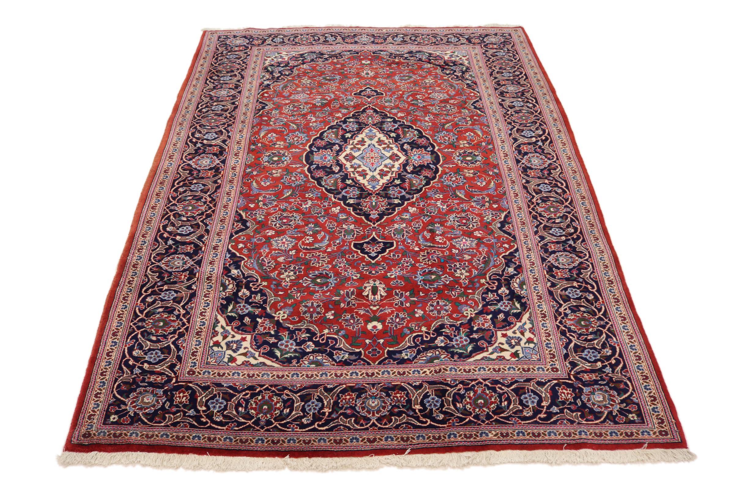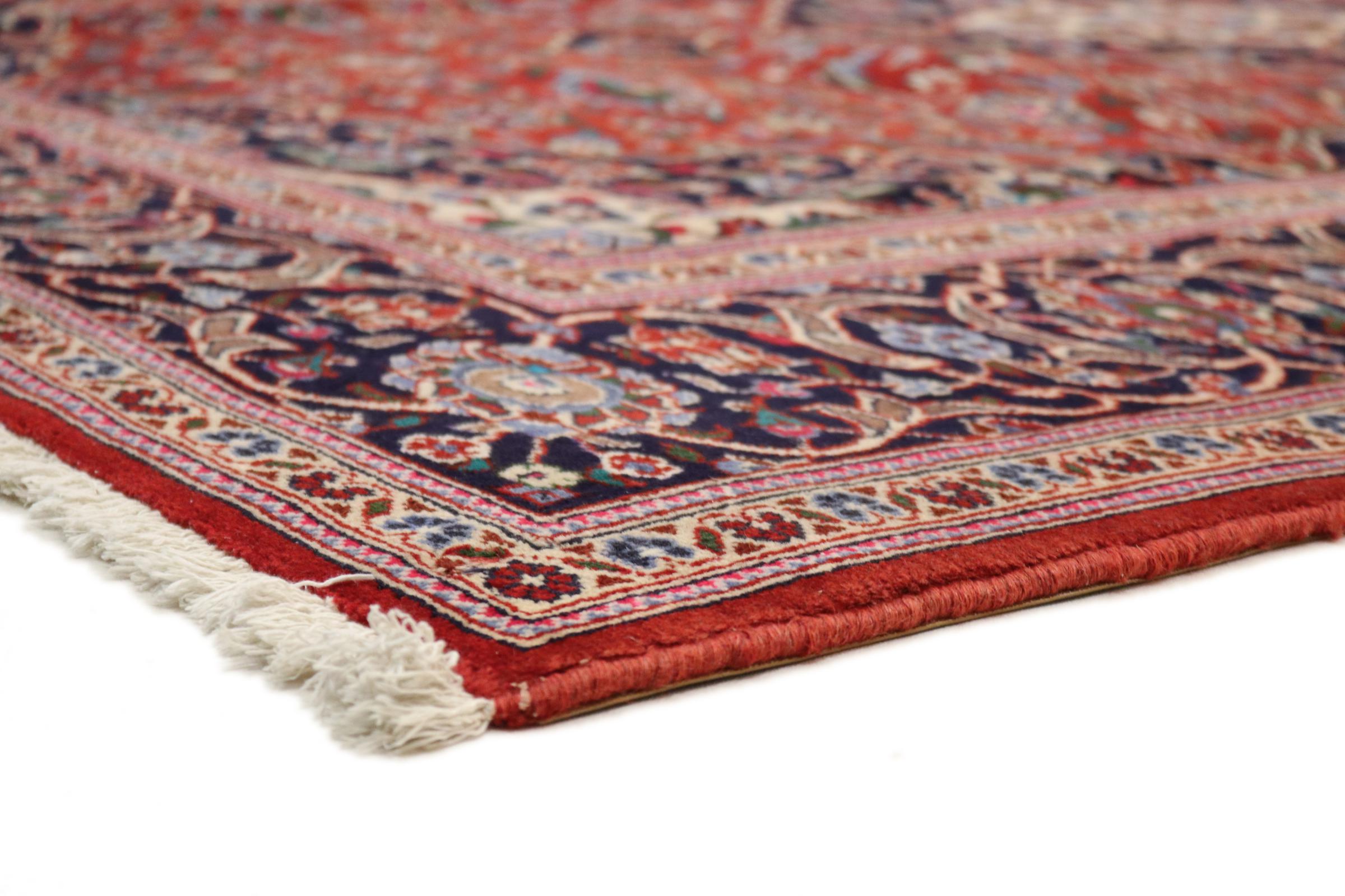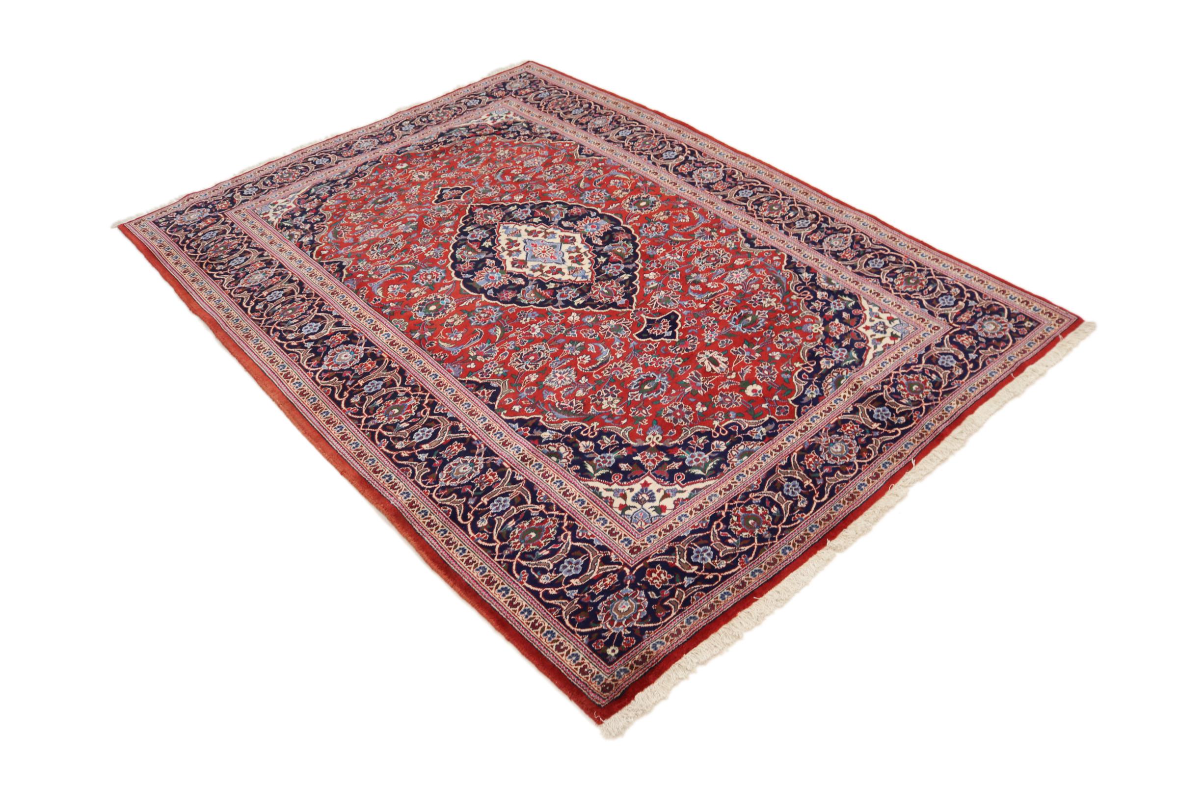 Este tapete de Kashan (Keshan) é mantido em seu design persa muito tradicional e típico com belos ornamentos. Os tapetes Kashan são muito populares devido ao seu design excepcionalmente elegante. Esses tapetes são originários de Kashan, uma cidade na antiga Rota da Seda. Este tapete foi feito à mão com lã de ovelha de alta qualidade e será um destaque único em sua casa.