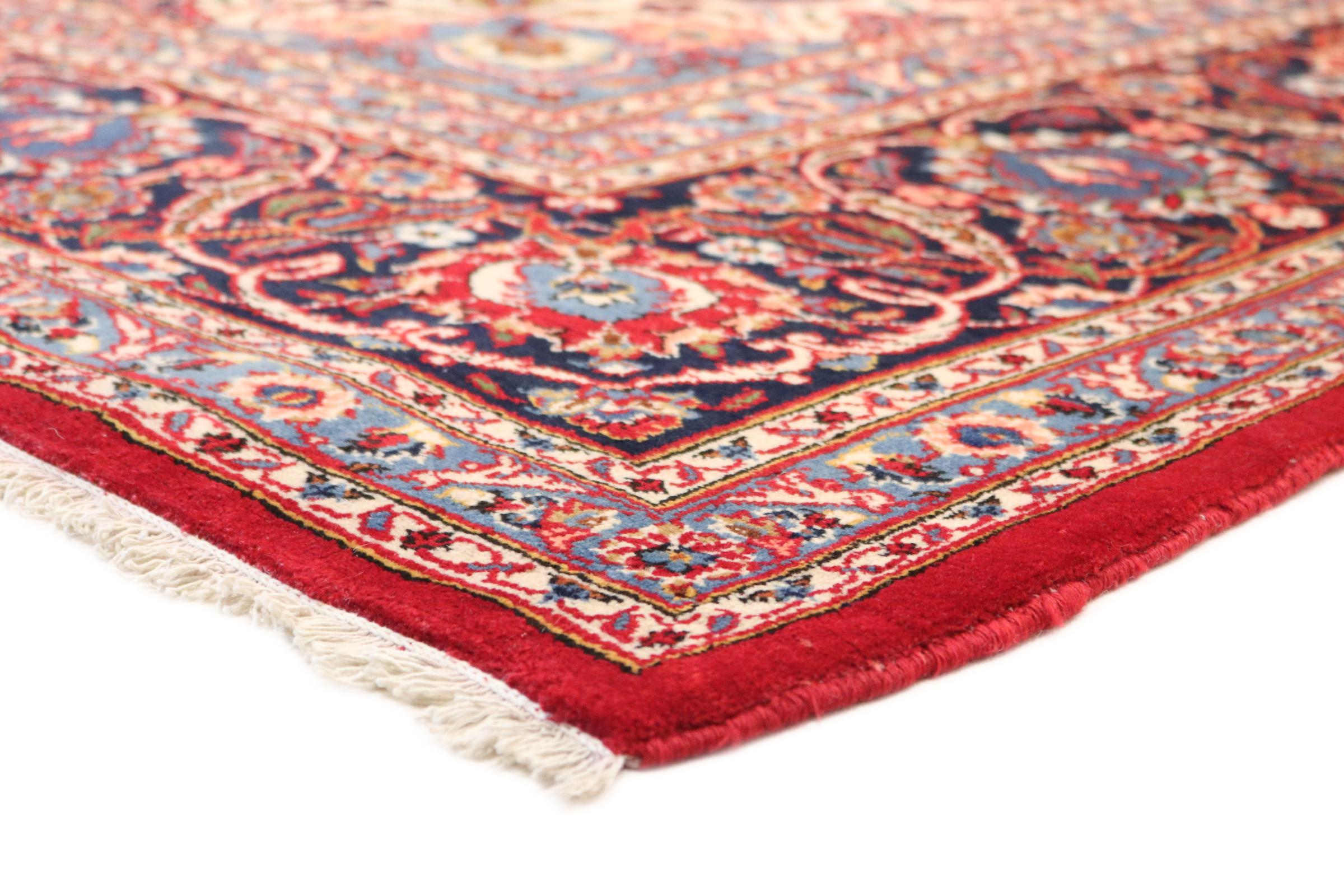 Este tapete de Kashan (Keshan) é mantido em seu design persa muito tradicional e típico com belos ornamentos. Os tapetes Kashan são muito populares devido ao seu design excepcionalmente elegante. Esses tapetes são originários de Kashan, uma cidade na antiga Rota da Seda. Este tapete foi feito à mão com lã de ovelha de alta qualidade e será um destaque único em sua casa.