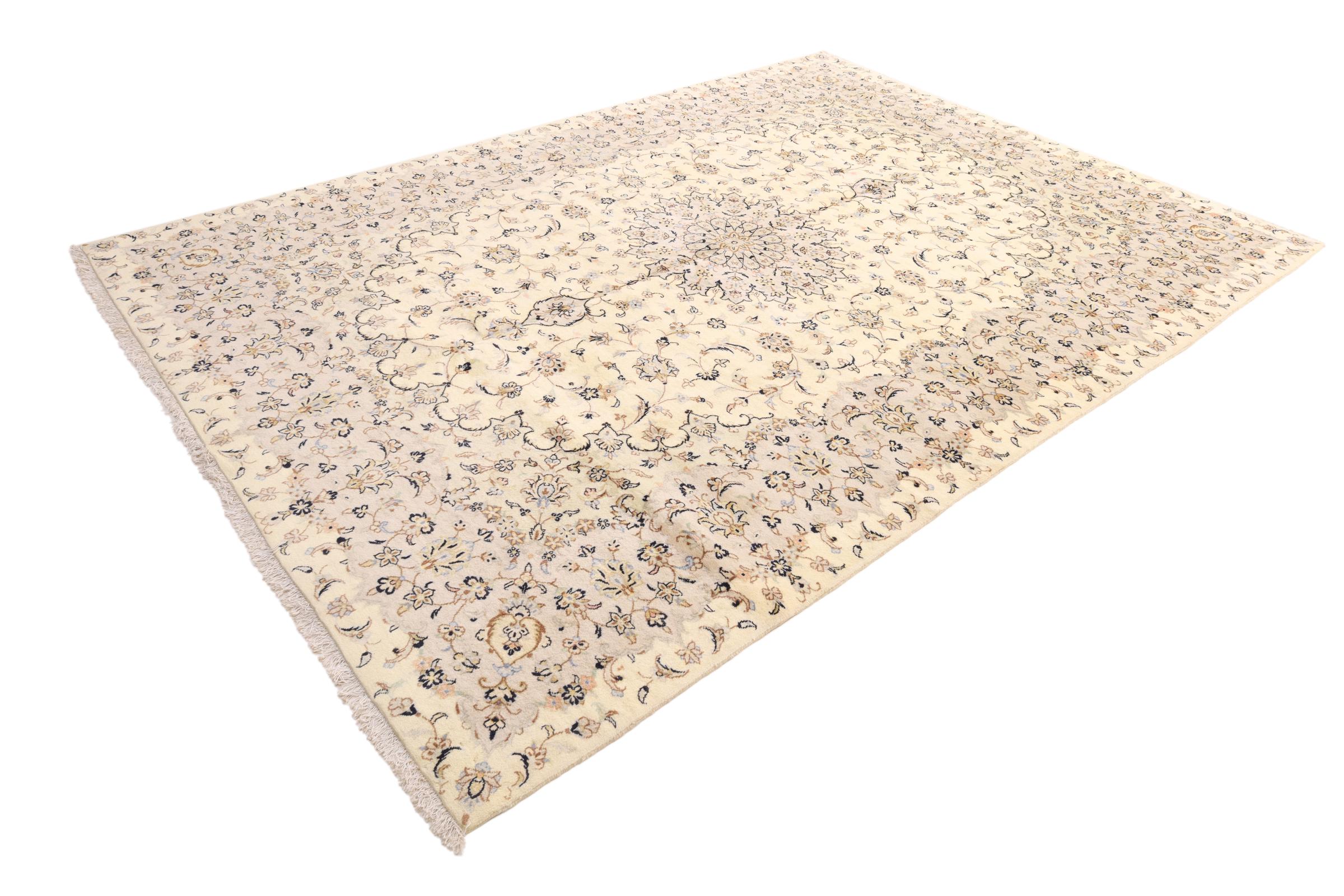 Nº do Tapete: 230776009749293 Tamanho: 348x248 cm Espessura: aproximadamente 12 mm Nós: 160 000 - 200 000 / m² Processamento: Atado à mão Veludo: Lã tecida à mão Urdidura: Algodão Origem: Pérsia / Iran Idade: Novo Peso: aproximadamente 30 kg Em armazém: Único - Apenas 1 em stock