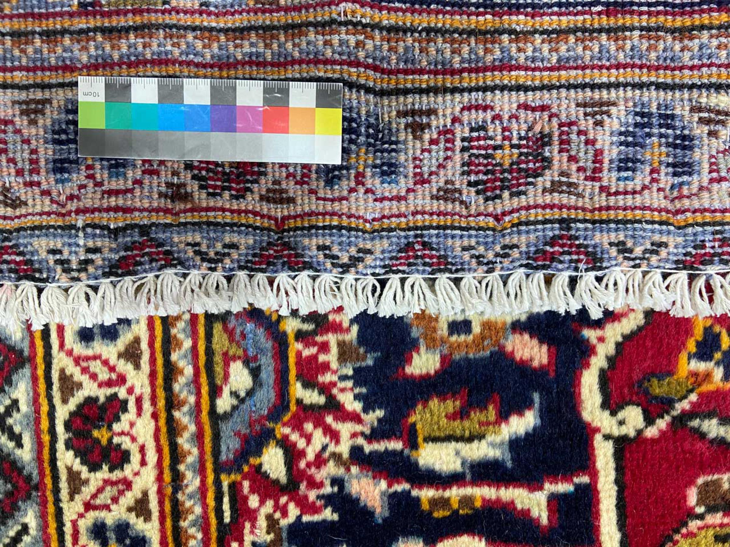 Este tapete é feito de lã de ovelha fiada à mão, da mais alta qualidade. Especialmente no Irão (antiga Pérsia), Afeganistão e Paquistão, a lã ainda é fiada à mão antes do início do nó do tapete. A lã tem provado ser um material natural e extremamente resistente ao longo dos séculos. Entre outras coisas, tem propriedades repelentes de impurezas e isolantes térmicos. Ao mesmo tempo, a lã é incomparavelmente macia e tem um brilho natural.