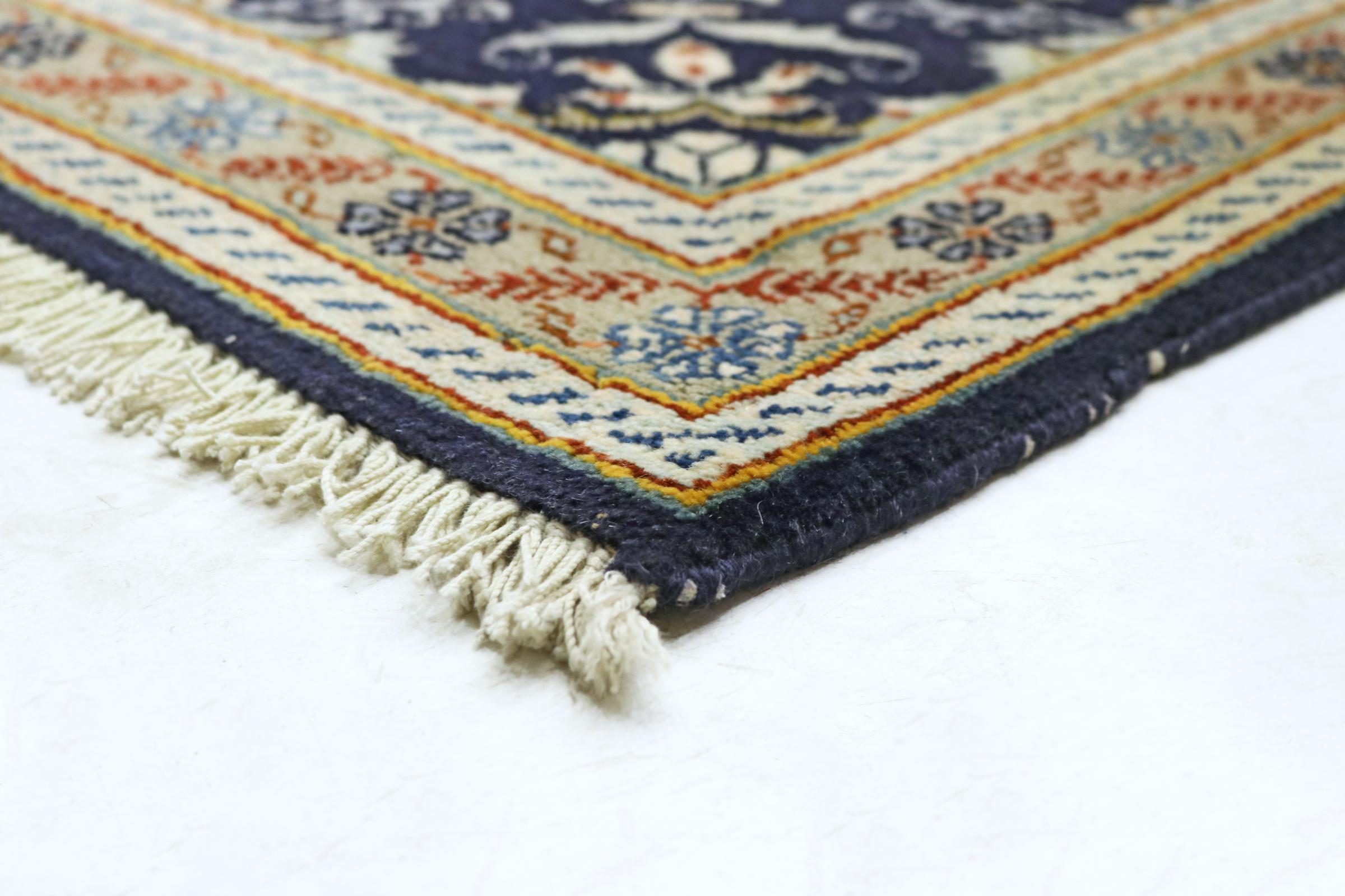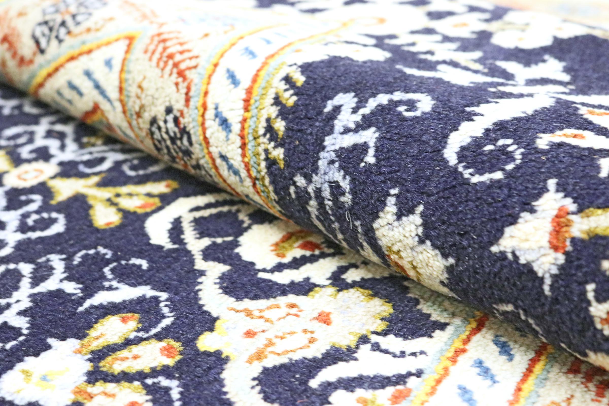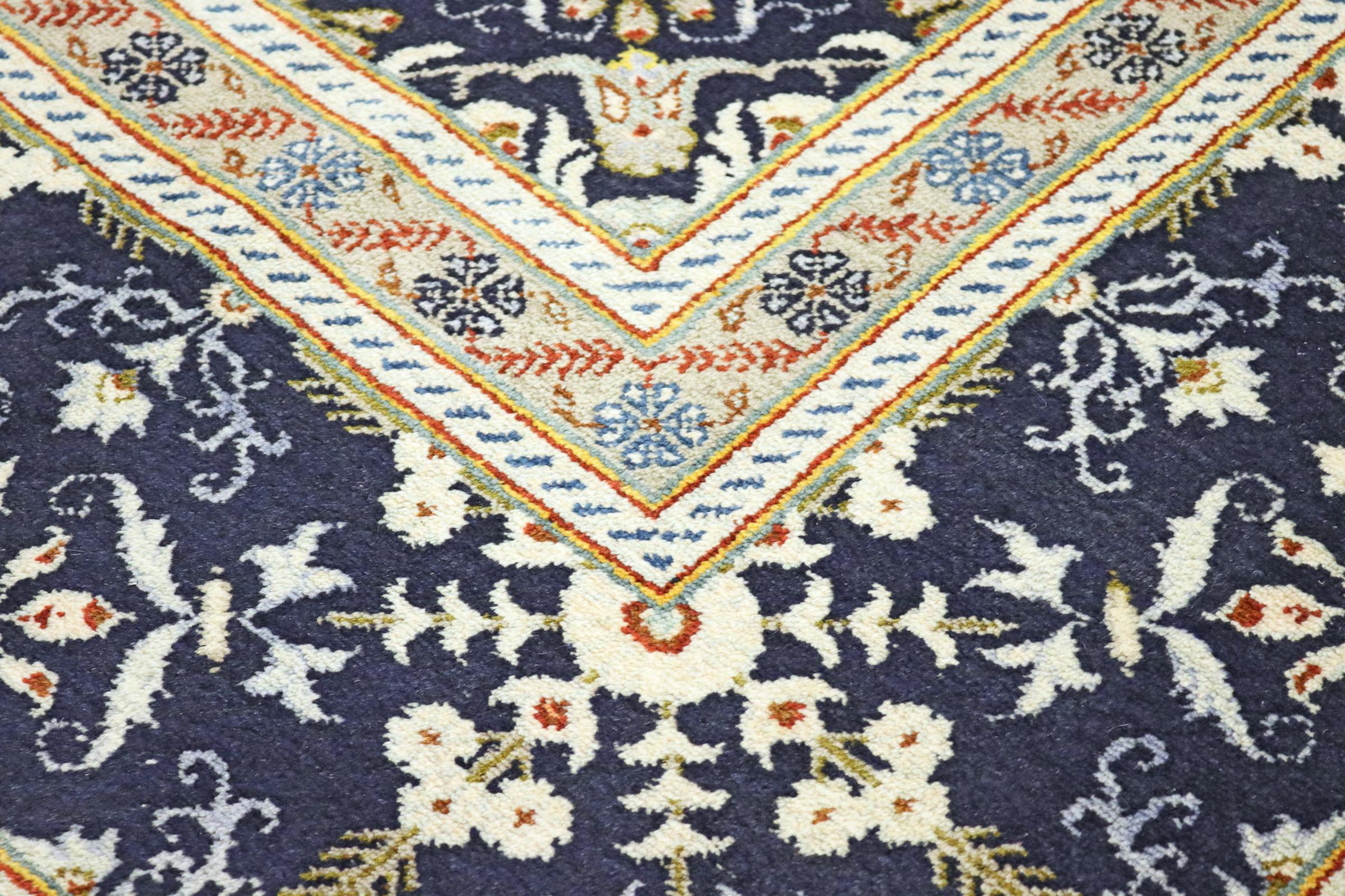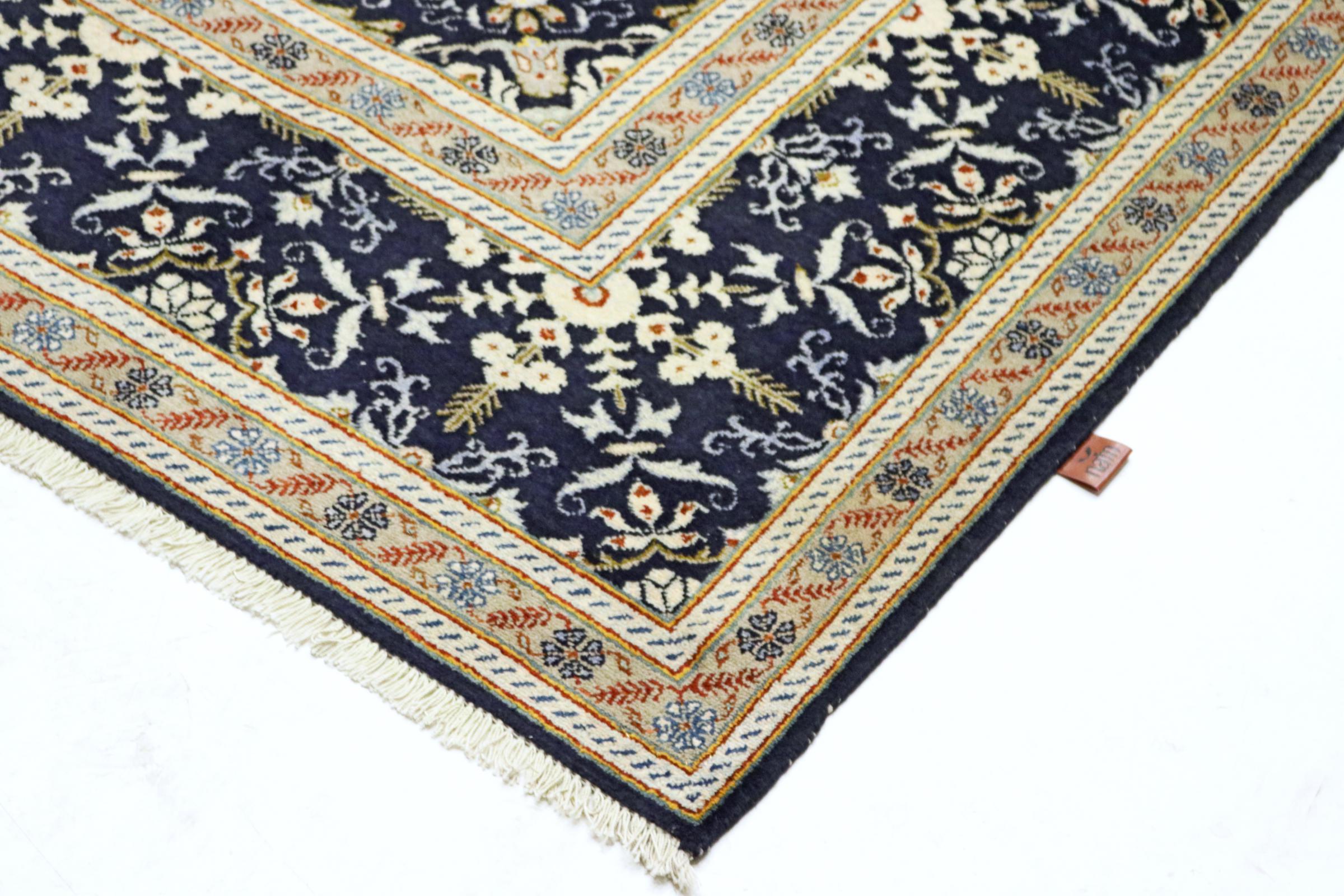 Este tapete de Kashan (Keshan) é mantido em seu design persa muito tradicional e típico com belos ornamentos. Os tapetes Kashan são muito populares devido ao seu design excepcionalmente elegante. Esses tapetes são originários de Kashan, uma cidade na antiga Rota da Seda. Este tapete foi feito à mão com lã de ovelha de alta qualidade e será um destaque único em sua casa.