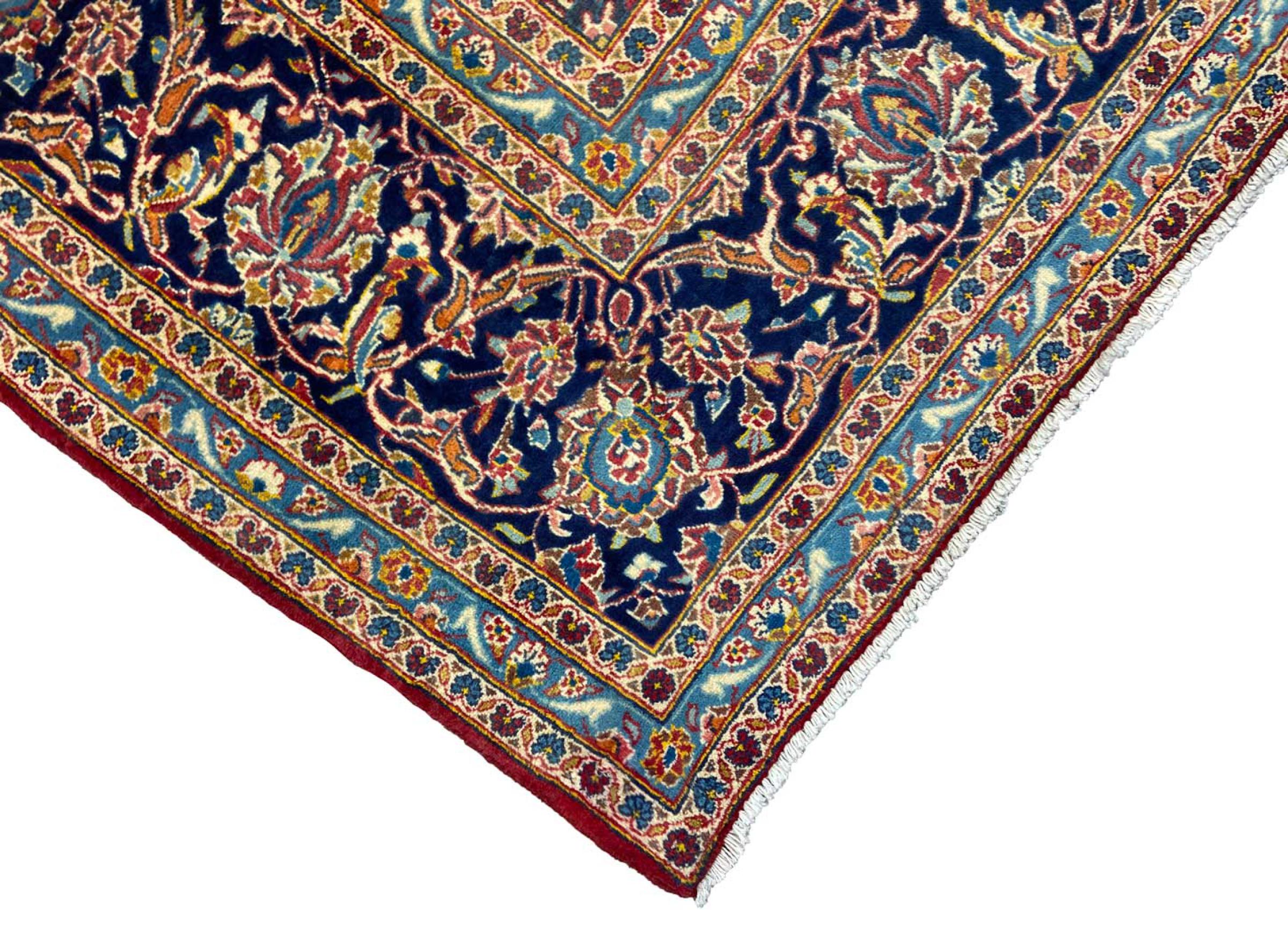 Este tapete de Kashan (Keshan) é mantido em seu design persa muito tradicional e típico com belos ornamentos. Os tapetes Kashan são muito populares devido ao seu design excepcionalmente elegante. Esses tapetes são originários de Kashan, uma cidade na antiga Rota da Seda. Este tapete foi feito à mão com lã de ovelha de alta qualidade e será um destaque único em sua casa.