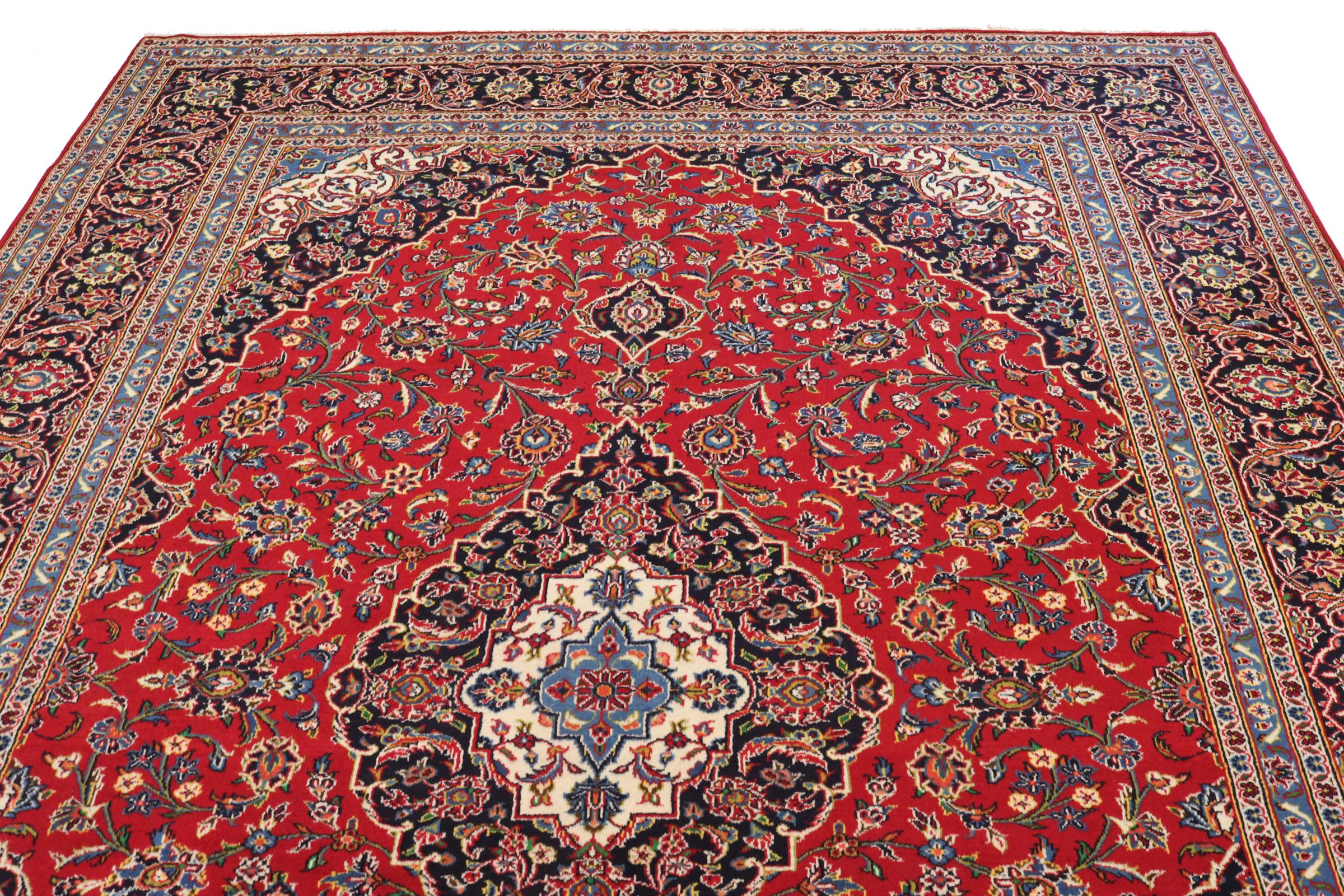 Este tapete de Kashan (Keshan) é mantido em seu design persa muito tradicional e típico com belos ornamentos. Os tapetes Kashan são muito populares devido ao seu design excepcionalmente elegante. Esses tapetes são originários de Kashan, uma cidade na antiga Rota da Seda. Este tapete foi feito à mão com lã de ovelha de alta qualidade e será um destaque único em sua casa.