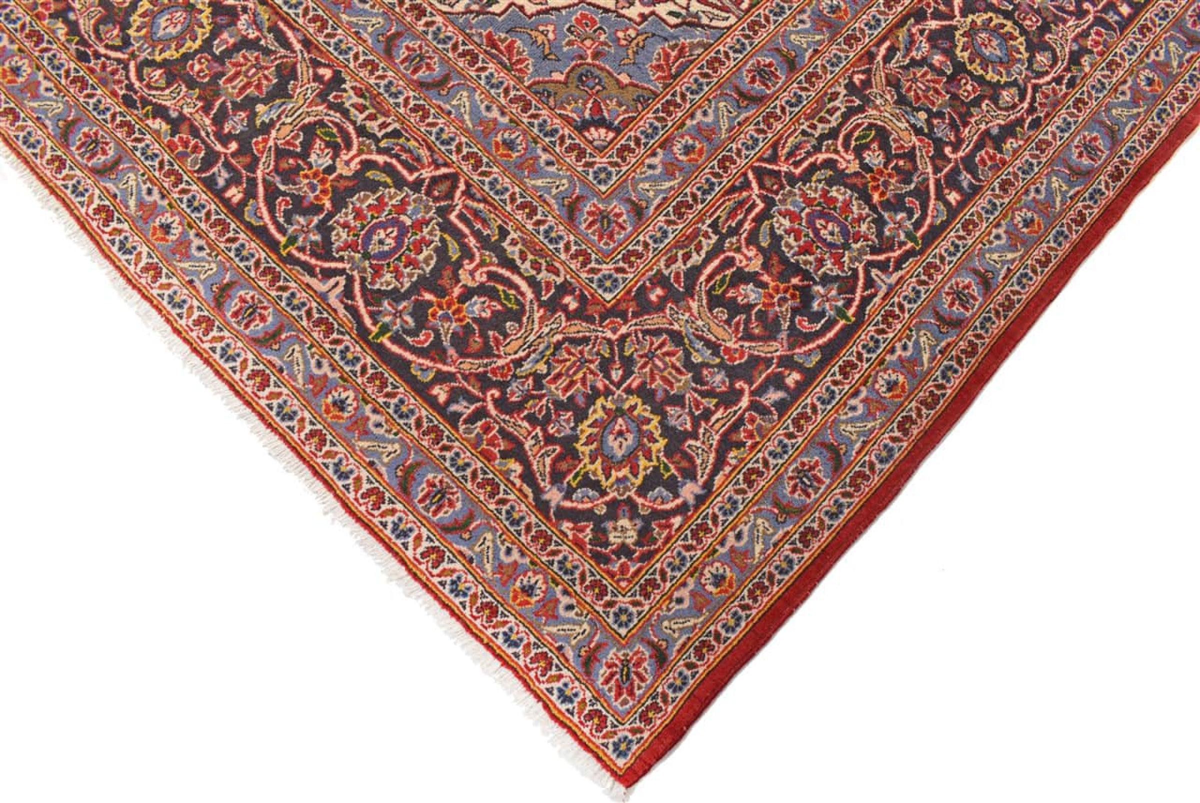 Este tapete de Kashan (Keshan) é mantido em seu design persa muito tradicional e típico com belos ornamentos. Os tapetes Kashan são muito populares devido ao seu design excepcionalmente elegante. Esses tapetes são originários de Kashan, uma cidade na antiga Rota da Seda. Este tapete foi feito à mão com lã de ovelha de alta qualidade e será um destaque único em sua casa.