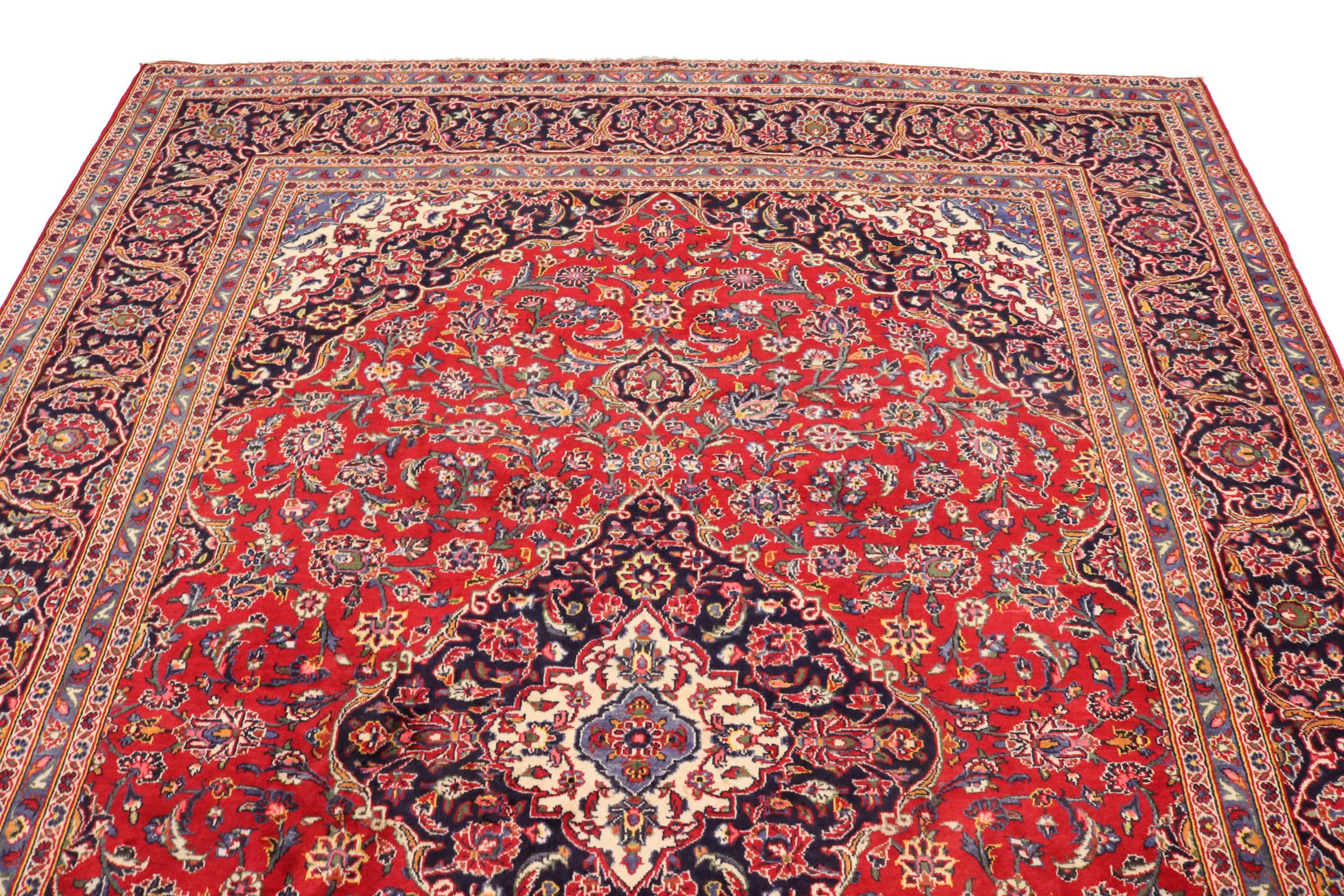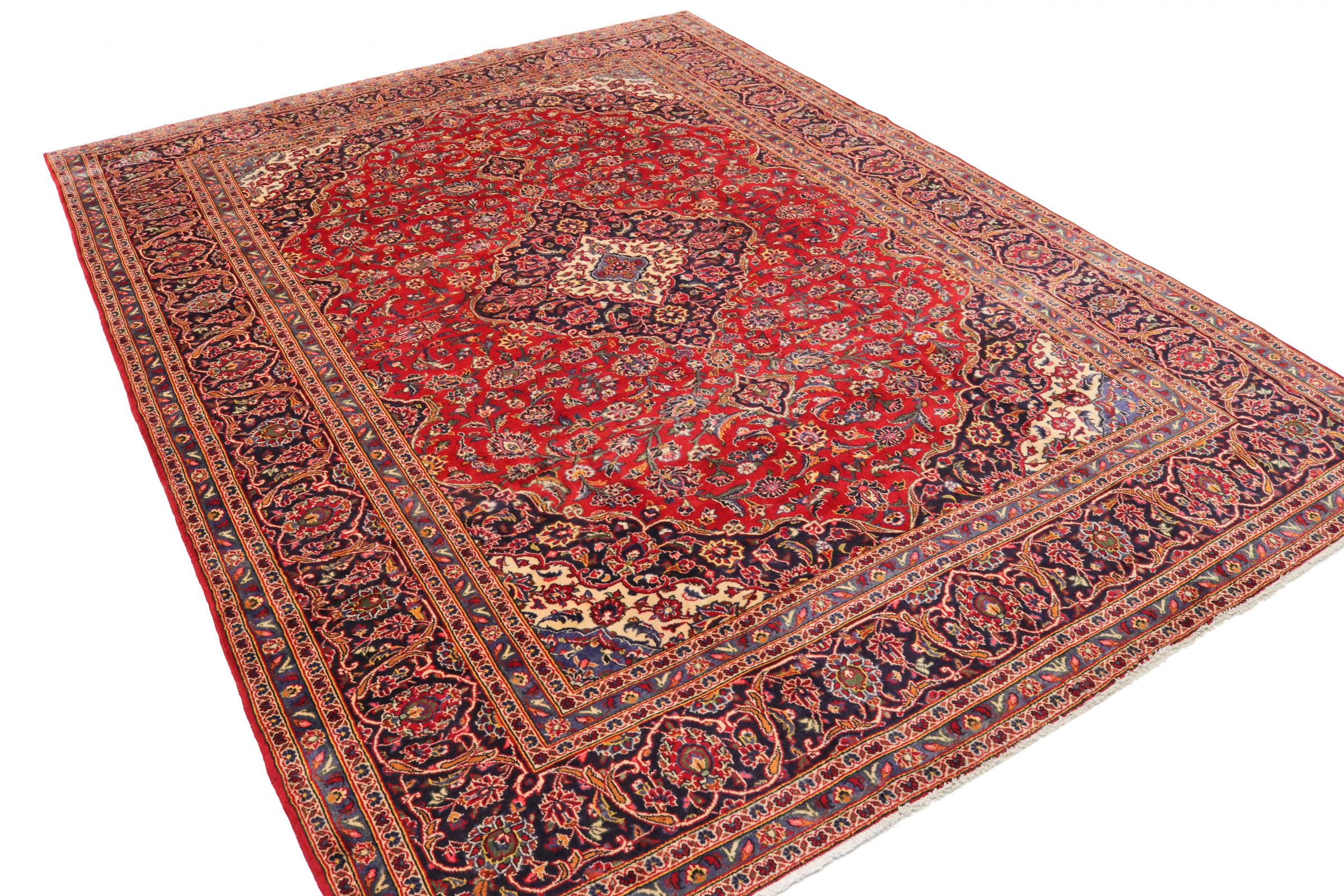 Este tapete de Kashan (Keshan) é mantido em seu design persa muito tradicional e típico com belos ornamentos. Os tapetes Kashan são muito populares devido ao seu design excepcionalmente elegante. Esses tapetes são originários de Kashan, uma cidade na antiga Rota da Seda. Este tapete foi feito à mão com lã de ovelha de alta qualidade e será um destaque único em sua casa.