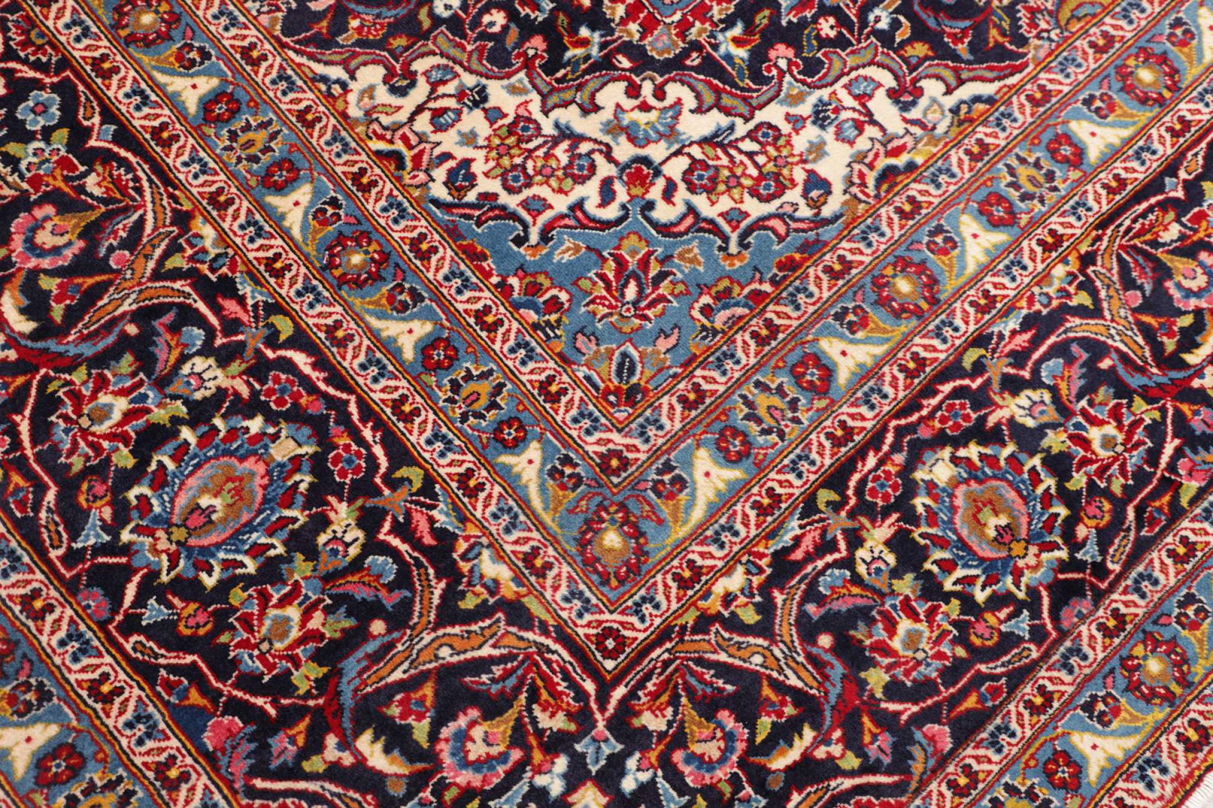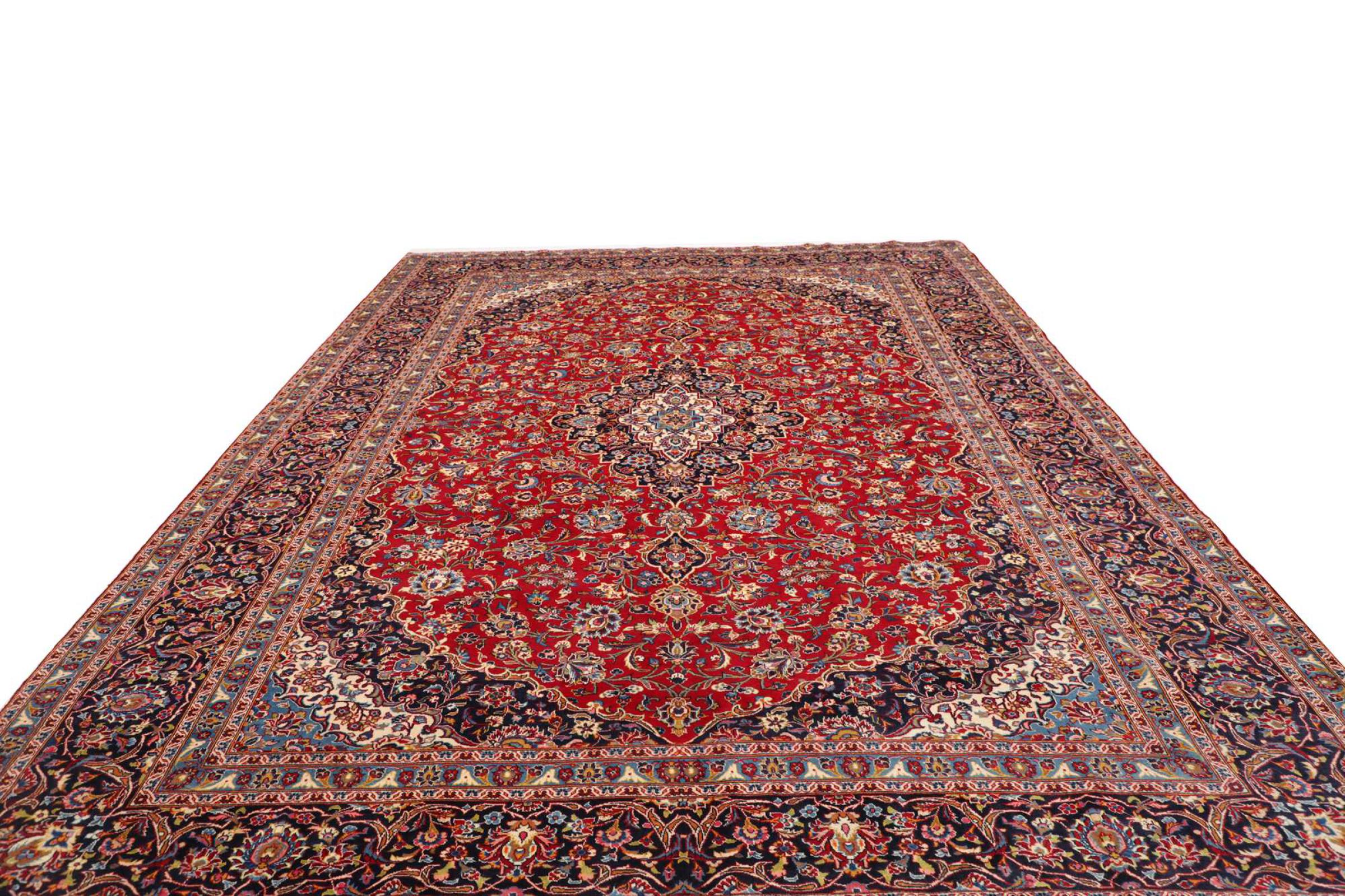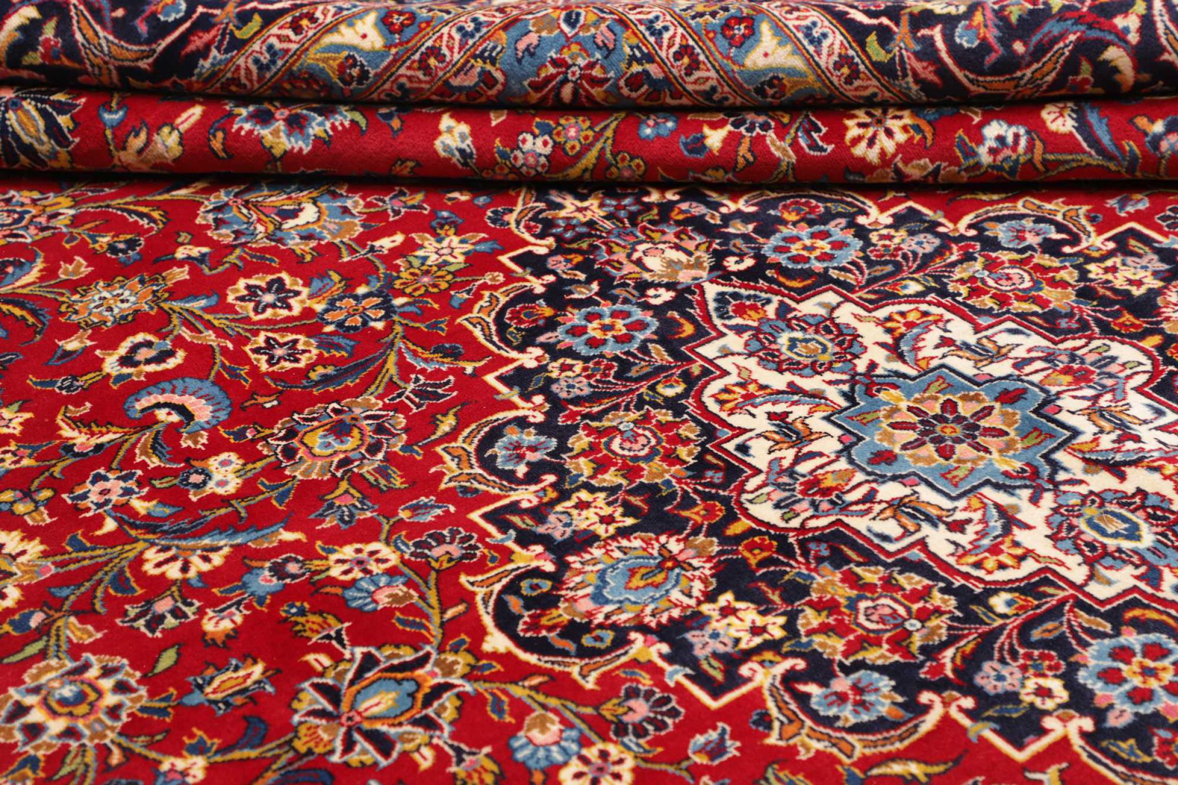 Este tapete de Kashan (Keshan) é mantido em seu design persa muito tradicional e típico com belos ornamentos. Os tapetes Kashan são muito populares devido ao seu design excepcionalmente elegante. Esses tapetes são originários de Kashan, uma cidade na antiga Rota da Seda. Este tapete foi feito à mão com lã de ovelha de alta qualidade e será um destaque único em sua casa.