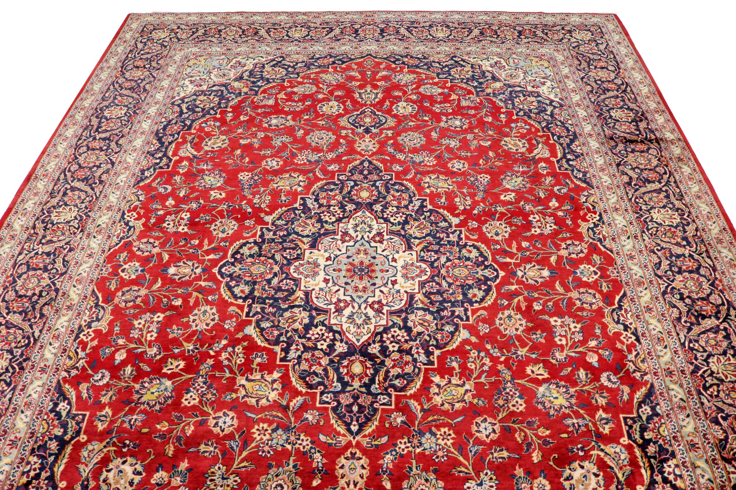 Este tapete de Kashan (Keshan) é mantido em seu design persa muito tradicional e típico com belos ornamentos. Os tapetes Kashan são muito populares devido ao seu design excepcionalmente elegante. Esses tapetes são originários de Kashan, uma cidade na antiga Rota da Seda. Este tapete foi feito à mão com lã de ovelha de alta qualidade e será um destaque único em sua casa.