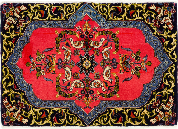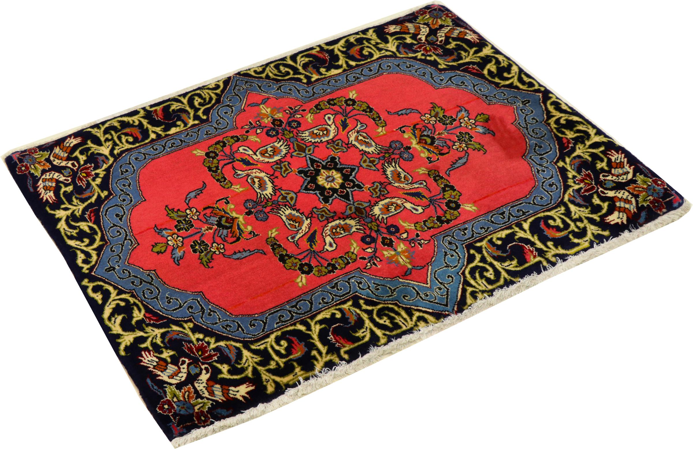 Nº do Tapete: 303370004263852 Tamanho: 97x71 cm Espessura: aproximadamente 5 mm Nós: 440 000 - 490 000 / m² Processamento: Atado à mão Veludo: Lã de cortiça Urdidura: Algodão Origem: Pérsia / Iran Idade: Novo Peso: aproximadamente 2 kg Em armazém: Único - Apenas 1 em stock