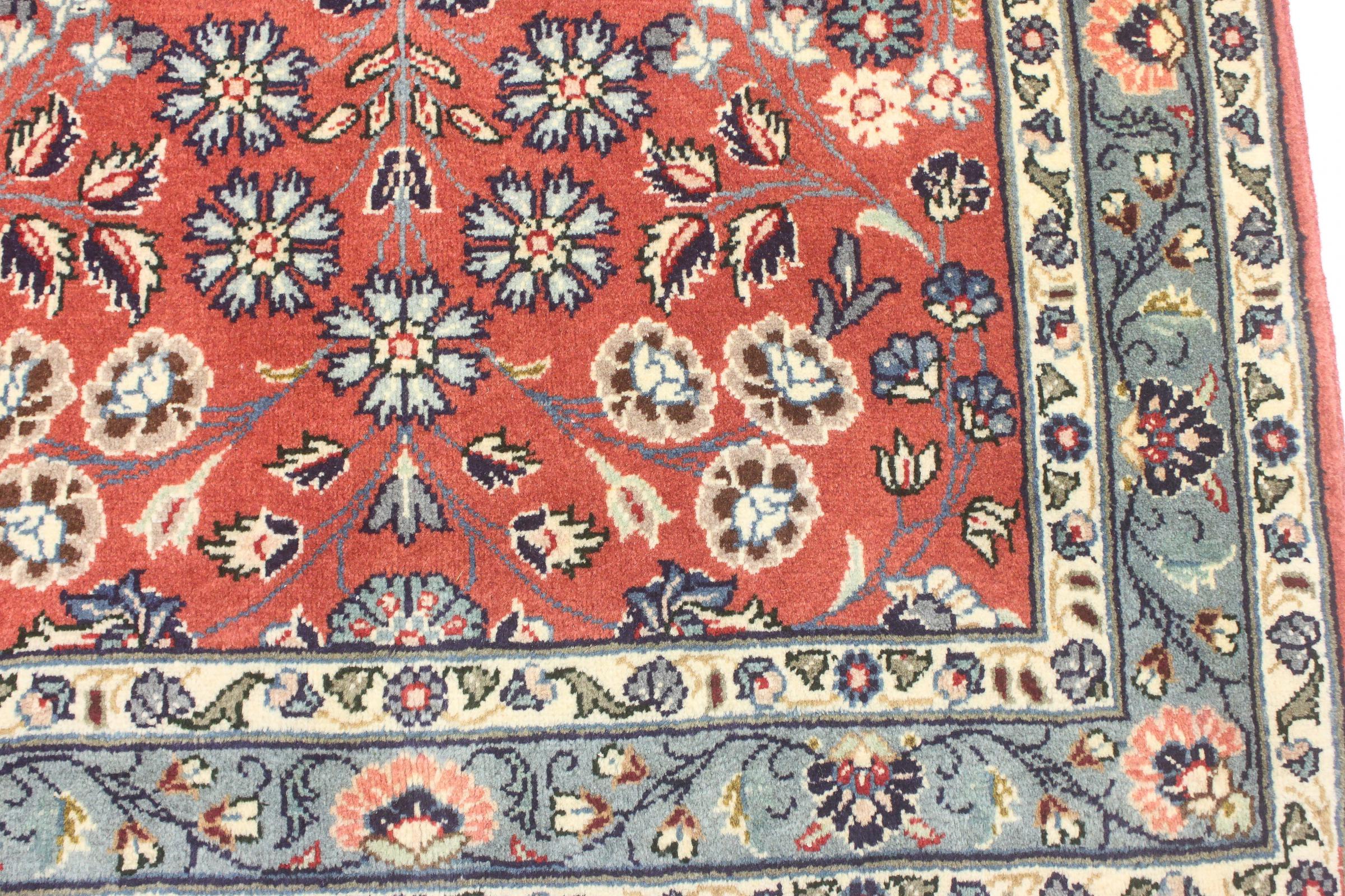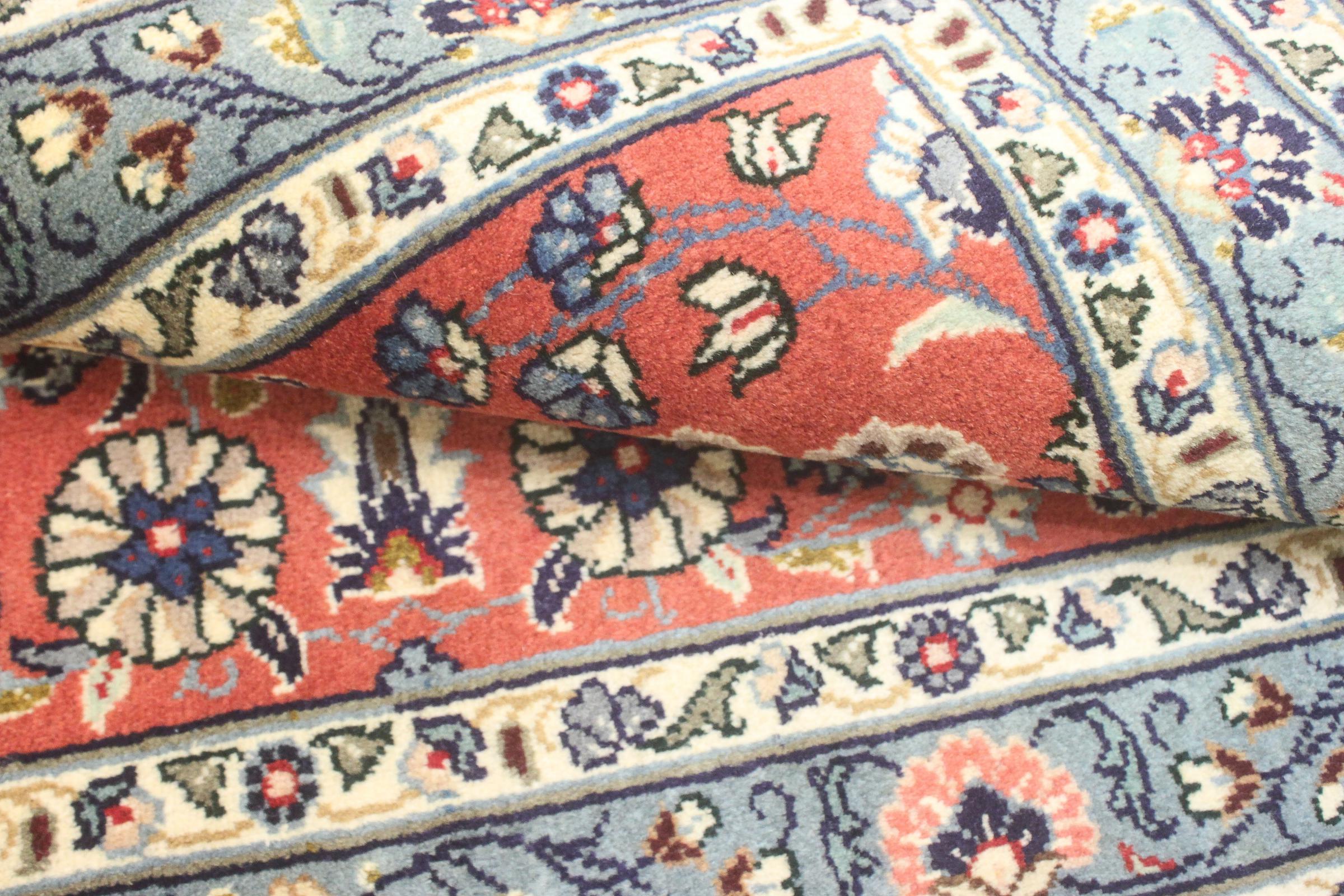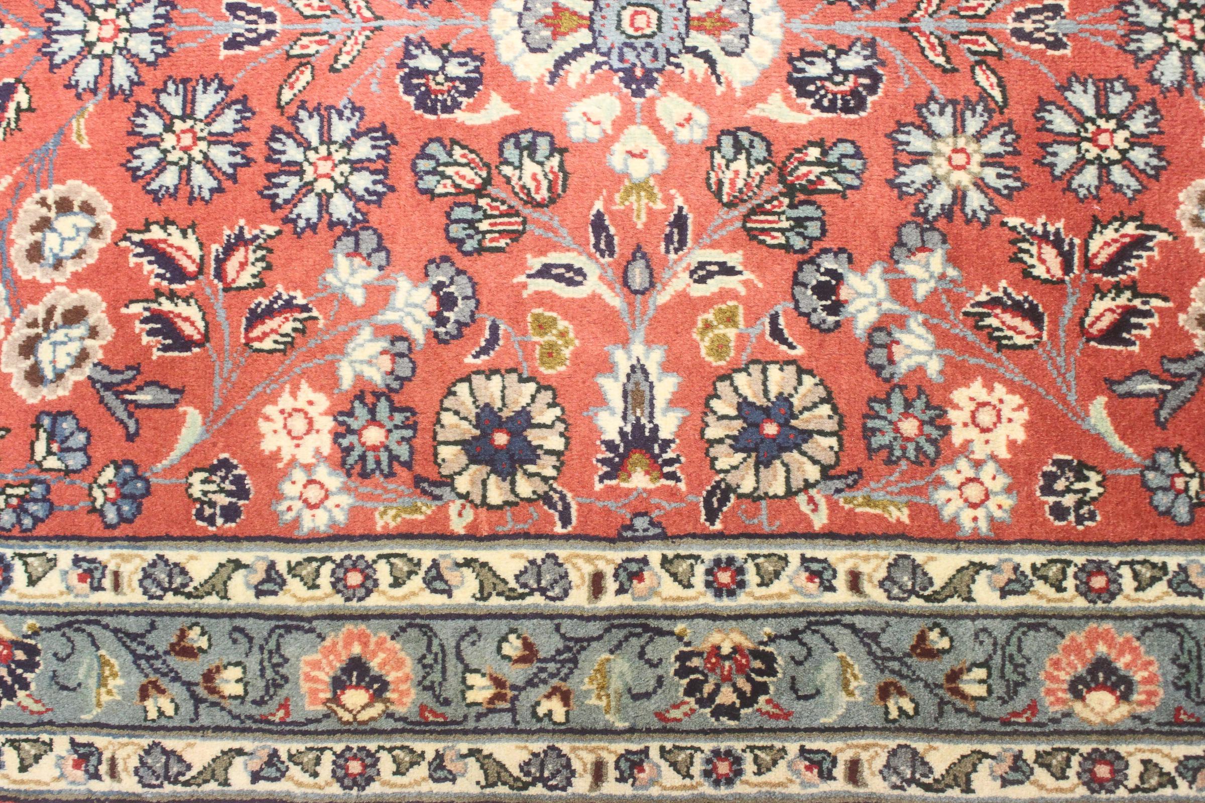 Este tapete de Kashan (Keshan) é mantido em seu design persa muito tradicional e típico com belos ornamentos. Os tapetes Kashan são muito populares devido ao seu design excepcionalmente elegante. Esses tapetes são originários de Kashan, uma cidade na antiga Rota da Seda. Este tapete foi feito à mão com lã de ovelha de alta qualidade e será um destaque único em sua casa.