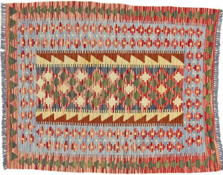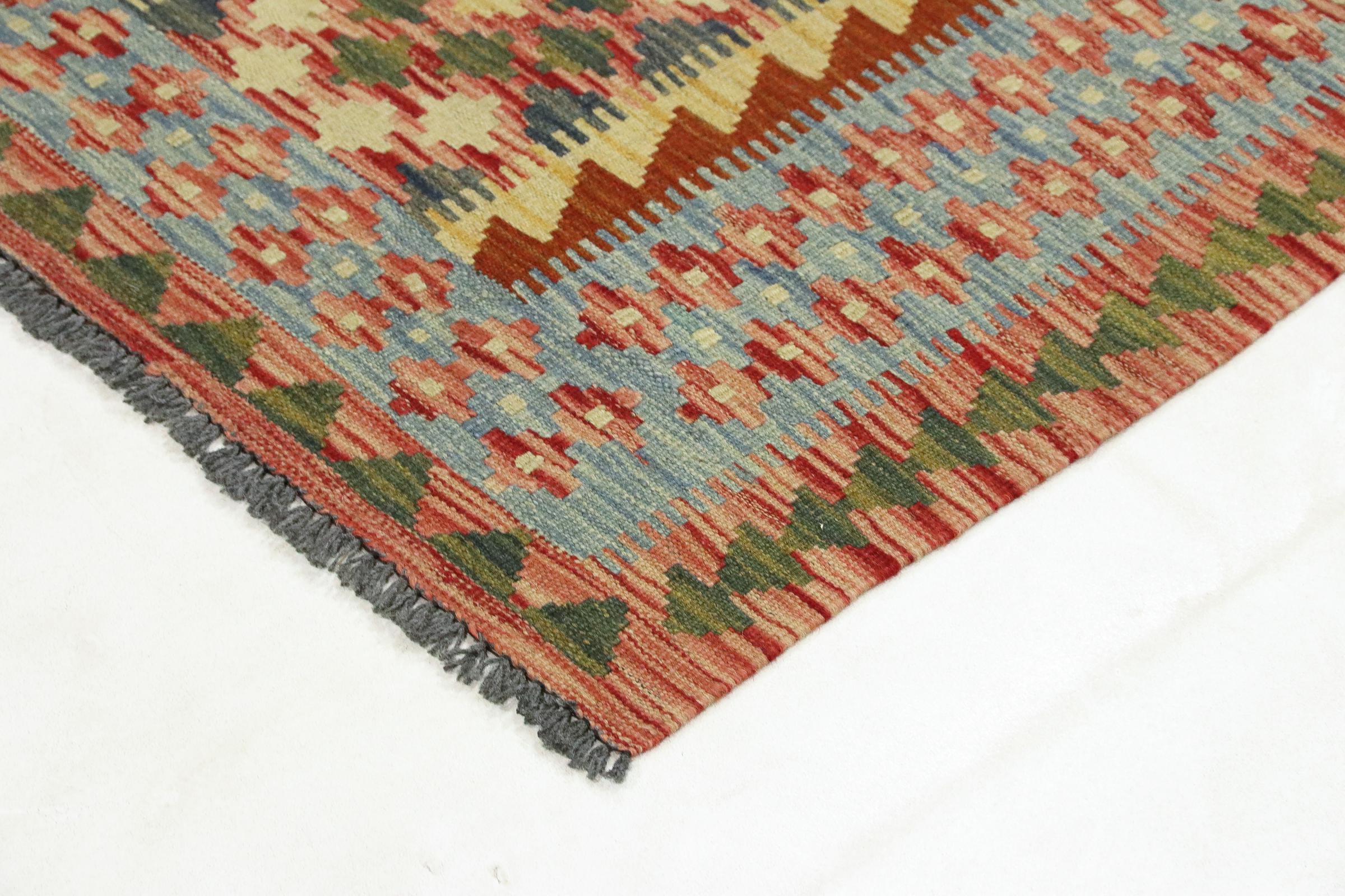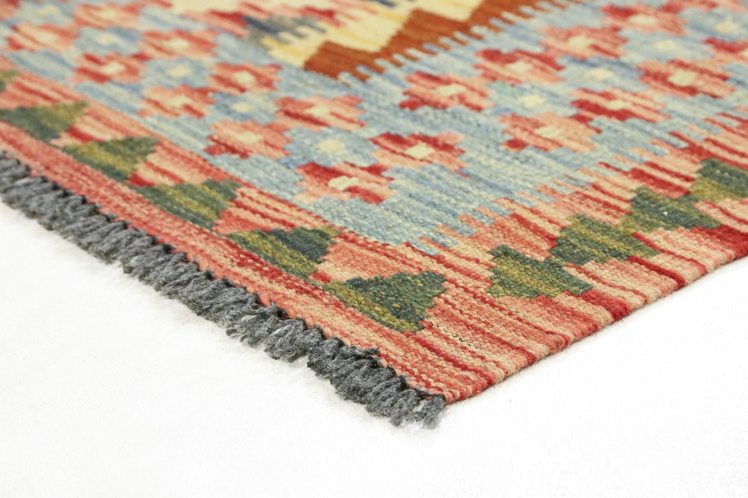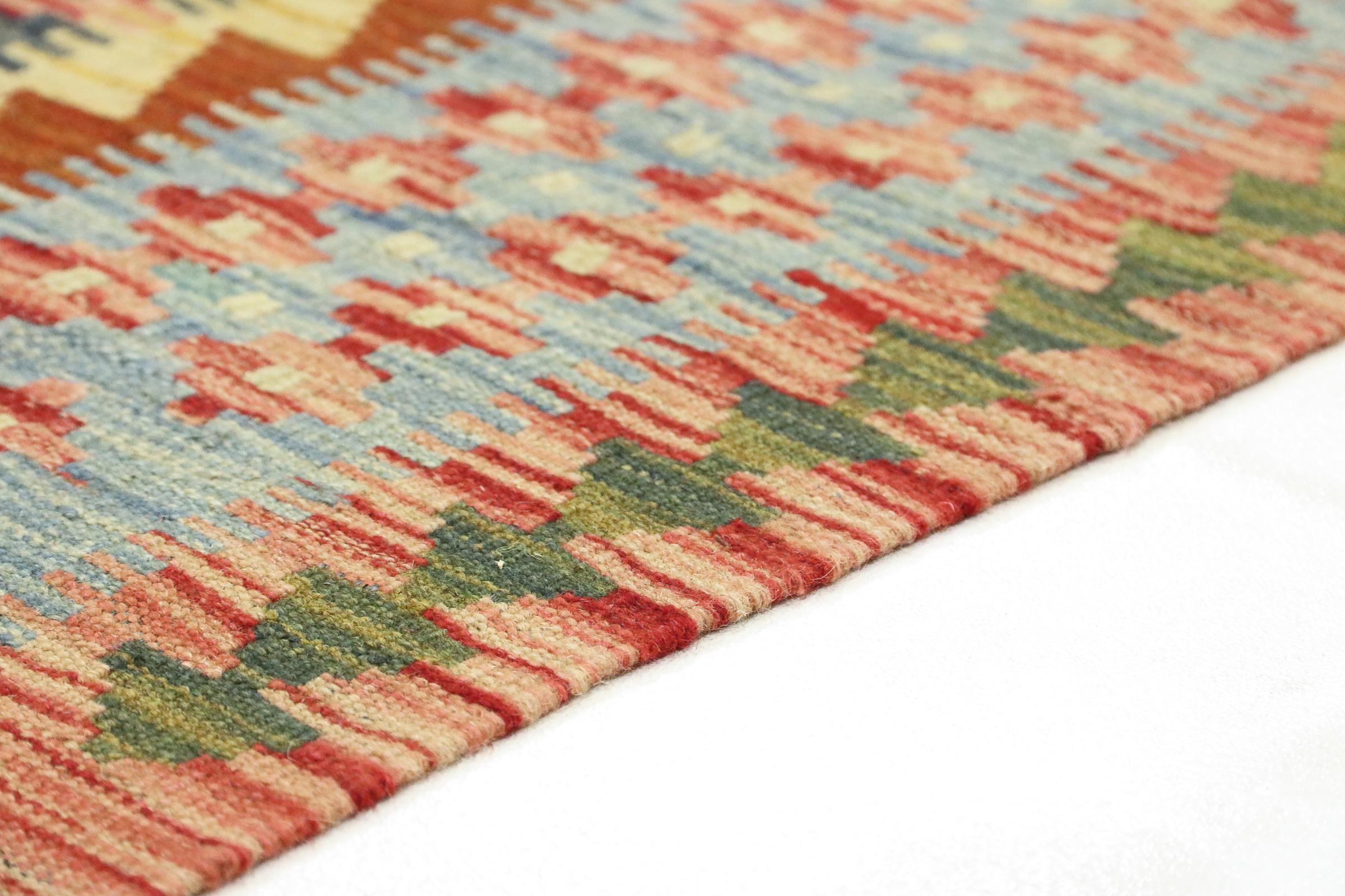 Estes tapetes quilim mostram uma diferença decisiva em relação aos tapetes feitos à mão - são tecidos à mão. Assim, não têm uma grande pilha de lã e são frequentemente mais achatados e ásperos do que os tapetes de lã nodados. O seu fabrico é menos elaborado e, por isso, são normalmente muito mais baratos. Como vantagem, os tapetes kilim são também muito mais leves e podem ser colocados pela frente e por trás. Os quilims tecidos à mão provêm originalmente da antiga Pérsia e são agora frequentemente fabricados também no Afeganistão. Têm padrões bastante simples e simples, que se devem à sua técnica de tecelagem.