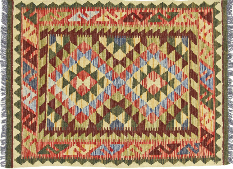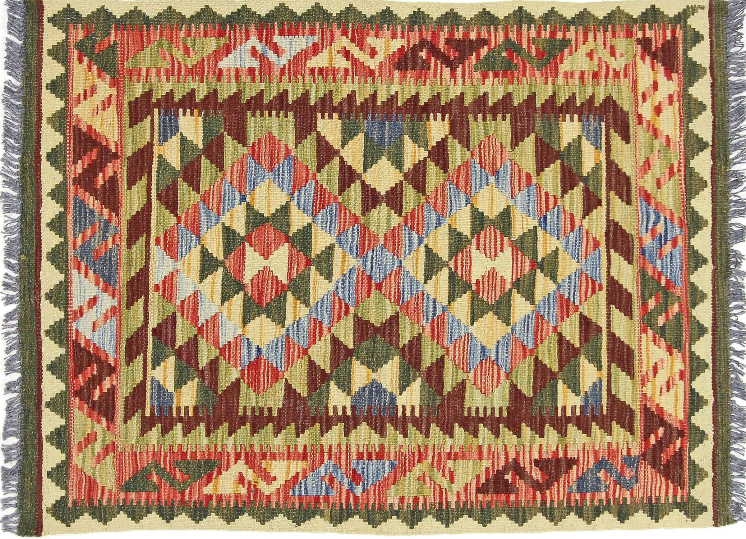 Estes tapetes quilim mostram uma diferença decisiva em relação aos tapetes feitos à mão - são tecidos à mão. Assim, não têm uma grande pilha de lã e são frequentemente mais achatados e ásperos do que os tapetes de lã nodados. O seu fabrico é menos elaborado e, por isso, são normalmente muito mais baratos. Como vantagem, os tapetes kilim são também muito mais leves e podem ser colocados pela frente e por trás. Os quilims tecidos à mão provêm originalmente da antiga Pérsia e são agora frequentemente fabricados também no Afeganistão. Têm padrões bastante simples e simples, que se devem à sua técnica de tecelagem.