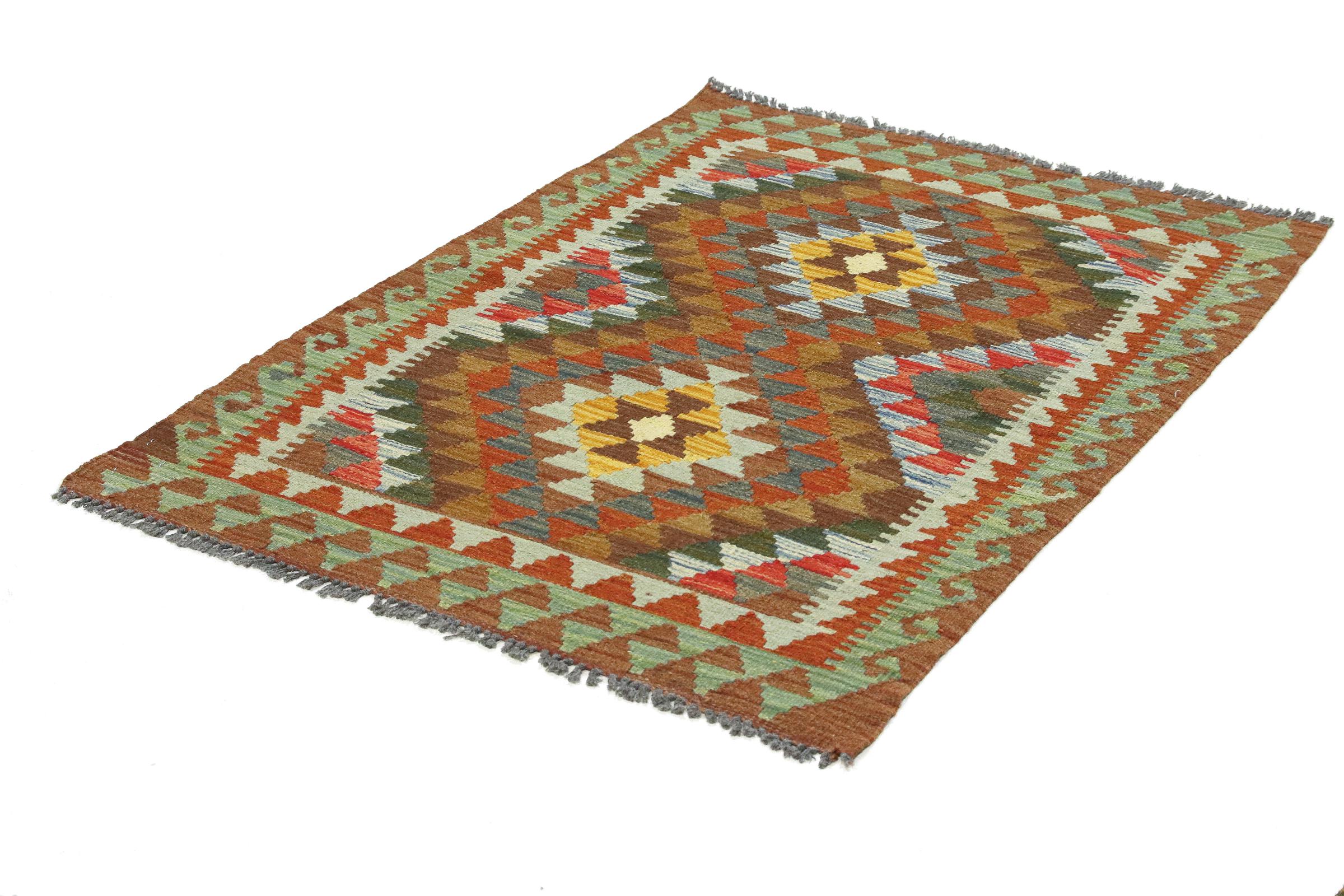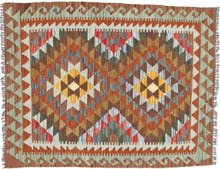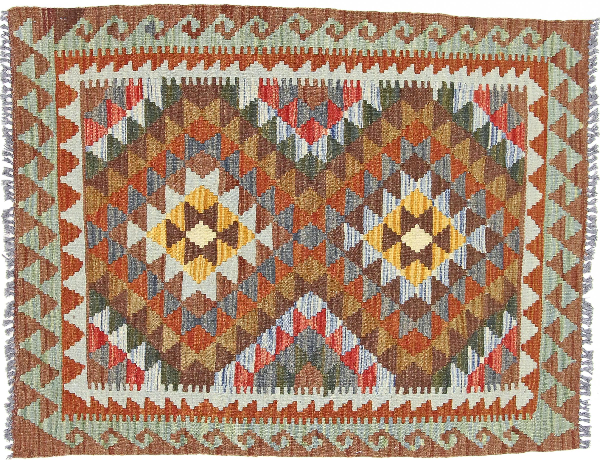 Estes tapetes quilim mostram uma diferença decisiva em relação aos tapetes feitos à mão - são tecidos à mão. Assim, não têm uma grande pilha de lã e são frequentemente mais achatados e ásperos do que os tapetes de lã nodados. O seu fabrico é menos elaborado e, por isso, são normalmente muito mais baratos. Como vantagem, os tapetes kilim são também muito mais leves e podem ser colocados pela frente e por trás. Os quilims tecidos à mão provêm originalmente da antiga Pérsia e são agora frequentemente fabricados também no Afeganistão. Têm padrões bastante simples e simples, que se devem à sua técnica de tecelagem.