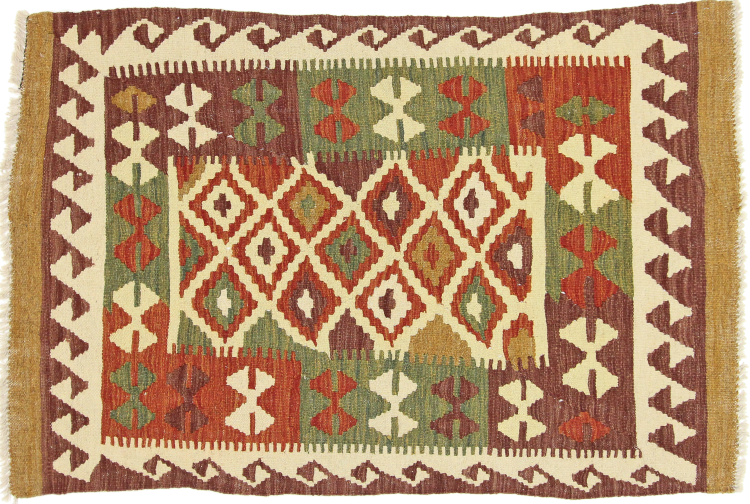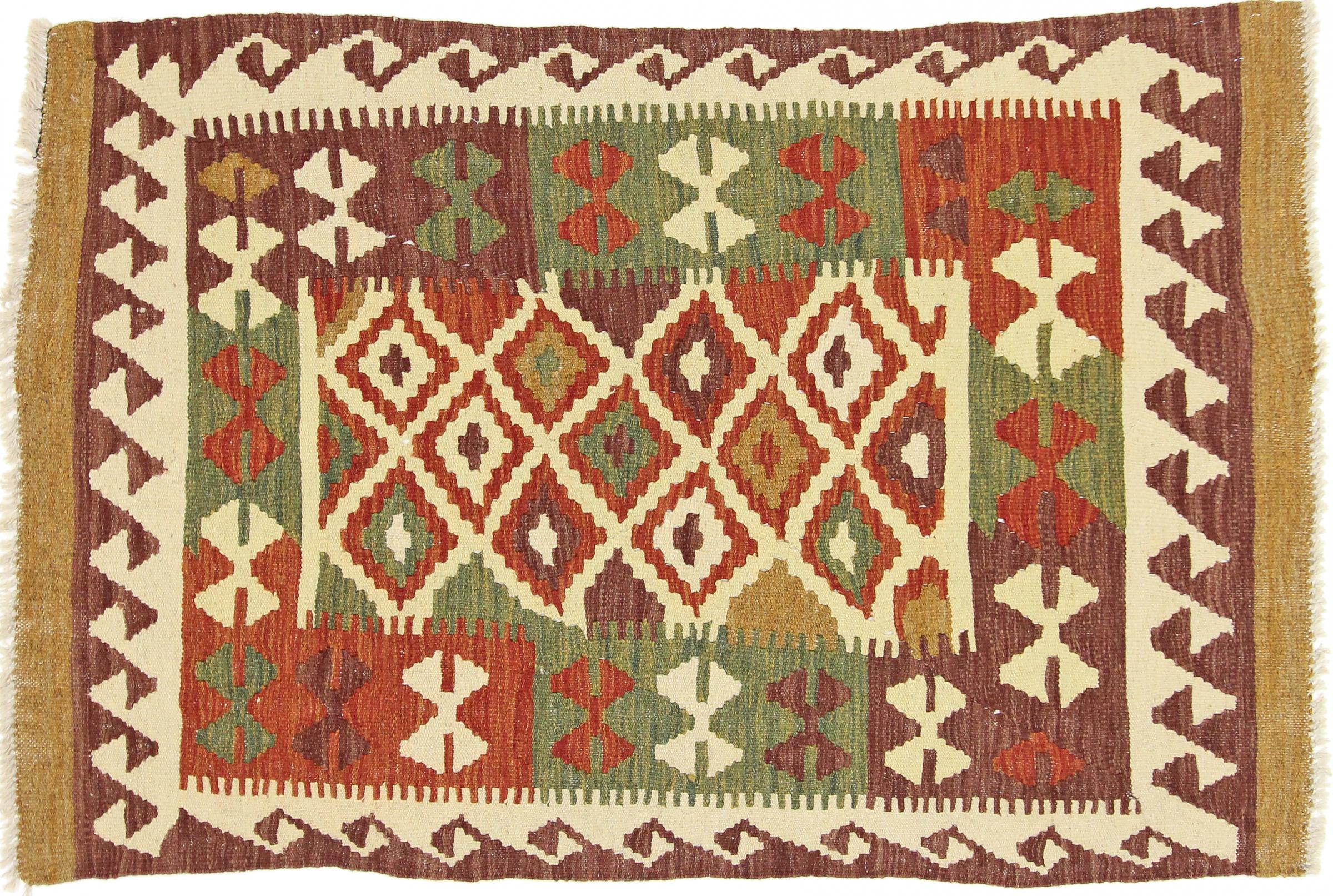 Estes tapetes quilim mostram uma diferença decisiva em relação aos tapetes feitos à mão - são tecidos à mão. Assim, não têm uma grande pilha de lã e são frequentemente mais achatados e ásperos do que os tapetes de lã nodados. O seu fabrico é menos elaborado e, por isso, são normalmente muito mais baratos. Como vantagem, os tapetes kilim são também muito mais leves e podem ser colocados pela frente e por trás. Os quilims tecidos à mão provêm originalmente da antiga Pérsia e são agora frequentemente fabricados também no Afeganistão. Têm padrões bastante simples e simples, que se devem à sua técnica de tecelagem.