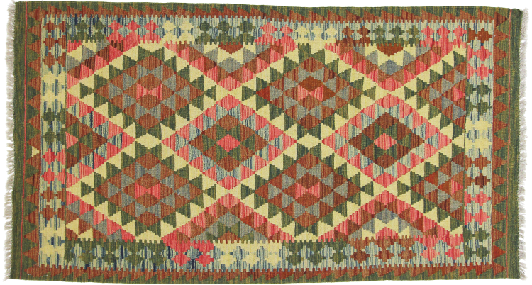 Estes tapetes quilim mostram uma diferença decisiva em relação aos tapetes feitos à mão - são tecidos à mão. Assim, não têm uma grande pilha de lã e são frequentemente mais achatados e ásperos do que os tapetes de lã nodados. O seu fabrico é menos elaborado e, por isso, são normalmente muito mais baratos. Como vantagem, os tapetes kilim são também muito mais leves e podem ser colocados pela frente e por trás. Os quilims tecidos à mão provêm originalmente da antiga Pérsia e são agora frequentemente fabricados também no Afeganistão. Têm padrões bastante simples e simples, que se devem à sua técnica de tecelagem.