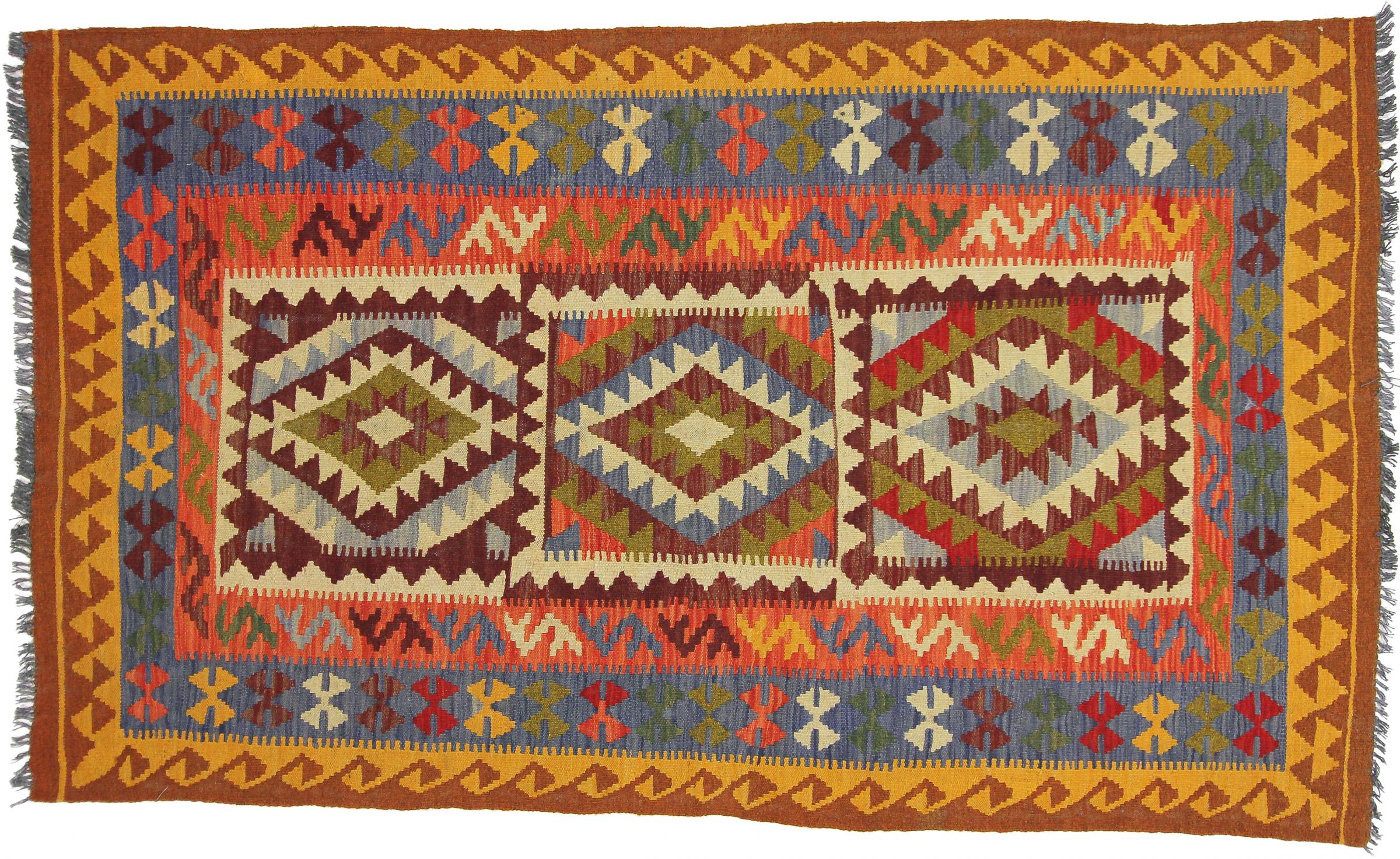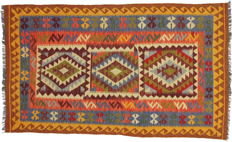 Estes tapetes quilim mostram uma diferença decisiva em relação aos tapetes feitos à mão - são tecidos à mão. Assim, não têm uma grande pilha de lã e são frequentemente mais achatados e ásperos do que os tapetes de lã nodados. O seu fabrico é menos elaborado e, por isso, são normalmente muito mais baratos. Como vantagem, os tapetes kilim são também muito mais leves e podem ser colocados pela frente e por trás. Os quilims tecidos à mão provêm originalmente da antiga Pérsia e são agora frequentemente fabricados também no Afeganistão. Têm padrões bastante simples e simples, que se devem à sua técnica de tecelagem.
