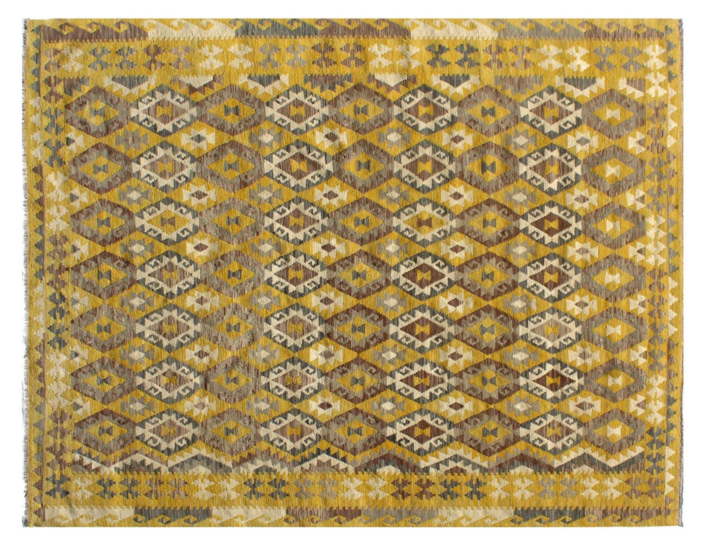 Estes tapetes quilim mostram uma diferença decisiva em relação aos tapetes feitos à mão - são tecidos à mão. Assim, não têm uma grande pilha de lã e são frequentemente mais achatados e ásperos do que os tapetes de lã nodados. O seu fabrico é menos elaborado e, por isso, são normalmente muito mais baratos. Como vantagem, os tapetes kilim são também muito mais leves e podem ser colocados pela frente e por trás. Os quilims tecidos à mão provêm originalmente da antiga Pérsia e são agora frequentemente fabricados também no Afeganistão. Têm padrões bastante simples e simples, que se devem à sua técnica de tecelagem.