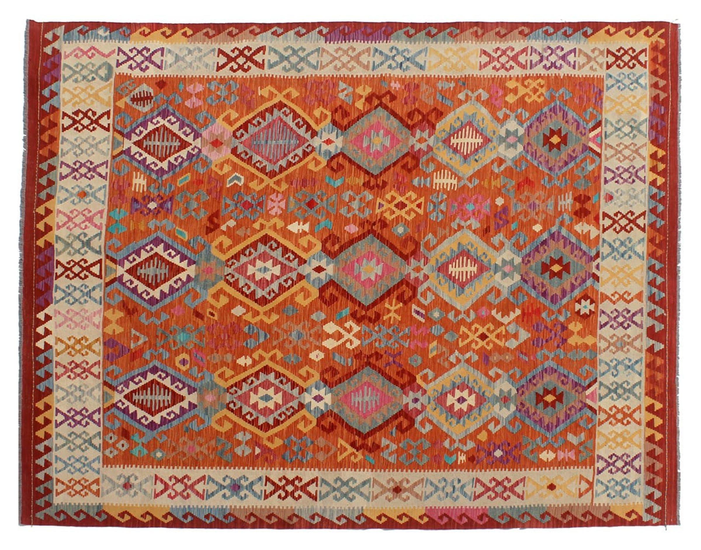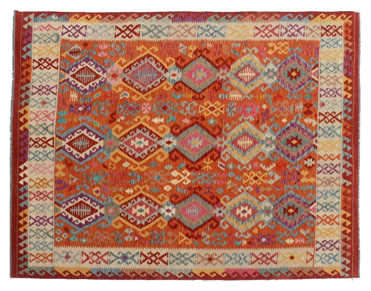 Estes tapetes quilim mostram uma diferença decisiva em relação aos tapetes feitos à mão - são tecidos à mão. Assim, não têm uma grande pilha de lã e são frequentemente mais achatados e ásperos do que os tapetes de lã nodados. O seu fabrico é menos elaborado e, por isso, são normalmente muito mais baratos. Como vantagem, os tapetes kilim são também muito mais leves e podem ser colocados pela frente e por trás. Os quilims tecidos à mão provêm originalmente da antiga Pérsia e são agora frequentemente fabricados também no Afeganistão. Têm padrões bastante simples e simples, que se devem à sua técnica de tecelagem.