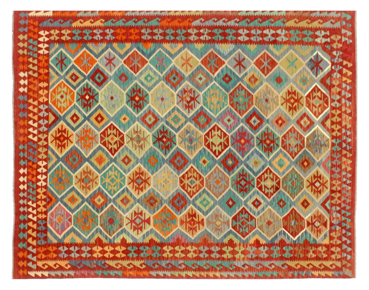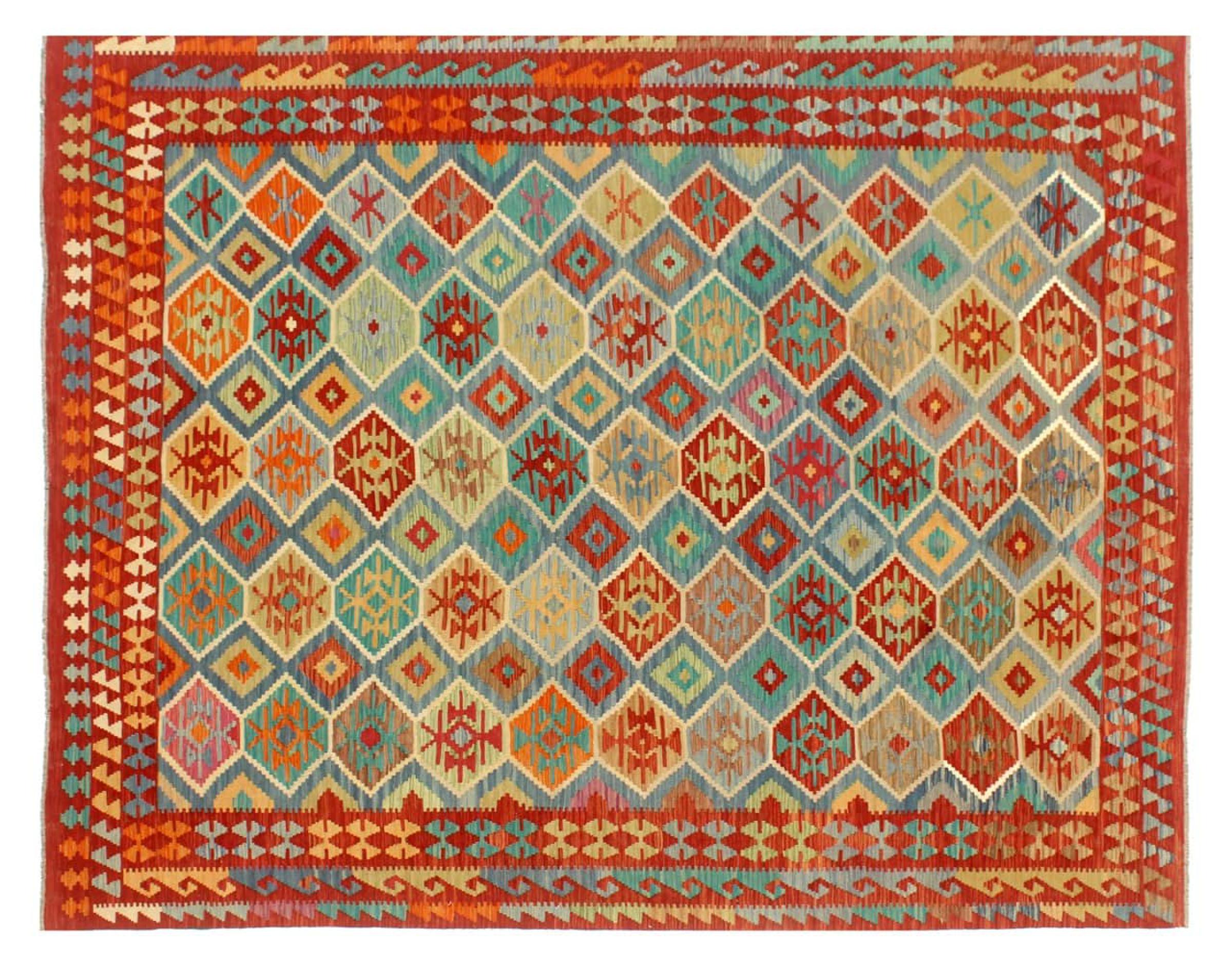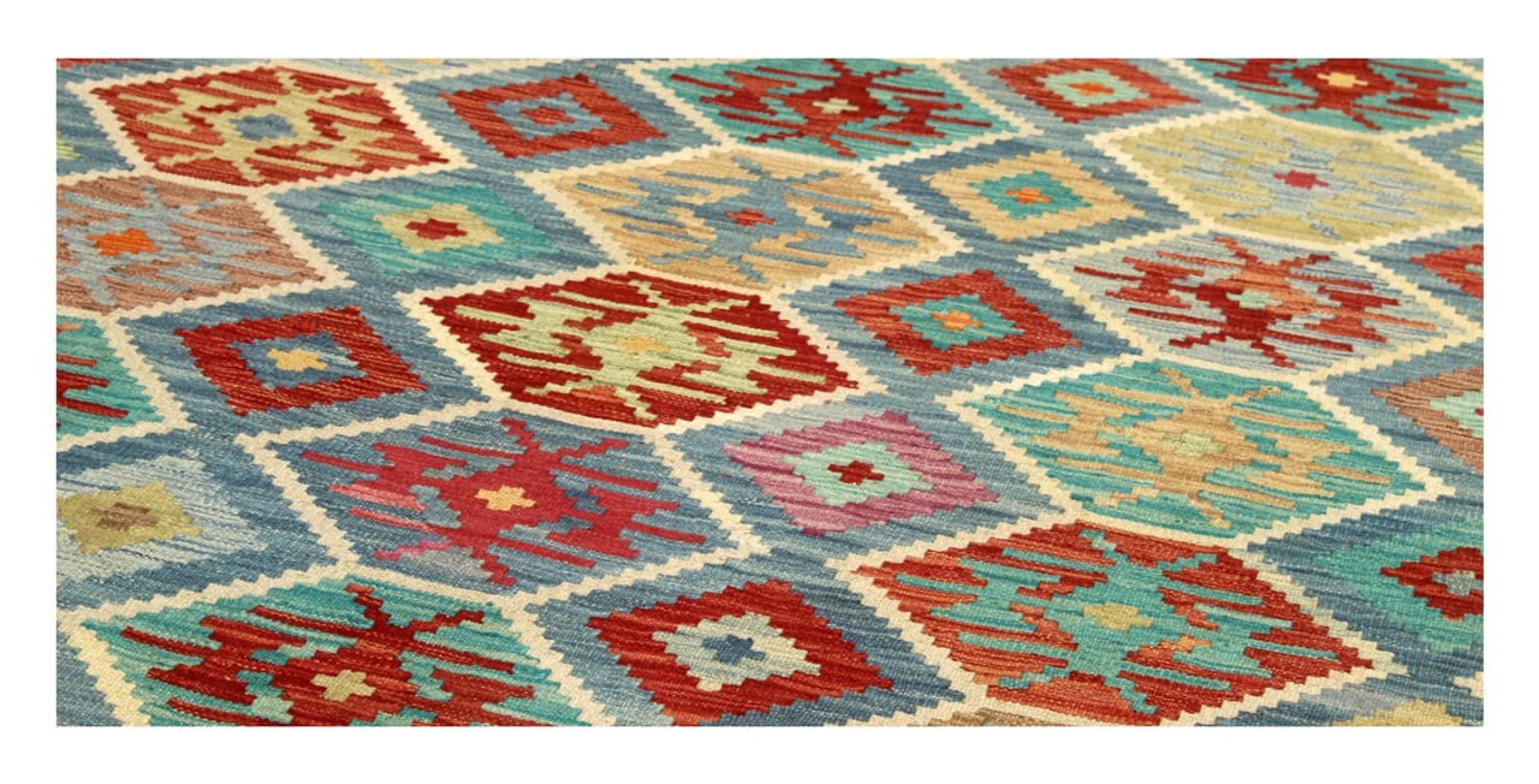 Estes tapetes quilim mostram uma diferença decisiva em relação aos tapetes feitos à mão - são tecidos à mão. Assim, não têm uma grande pilha de lã e são frequentemente mais achatados e ásperos do que os tapetes de lã nodados. O seu fabrico é menos elaborado e, por isso, são normalmente muito mais baratos. Como vantagem, os tapetes kilim são também muito mais leves e podem ser colocados pela frente e por trás. Os quilims tecidos à mão provêm originalmente da antiga Pérsia e são agora frequentemente fabricados também no Afeganistão. Têm padrões bastante simples e simples, que se devem à sua técnica de tecelagem.