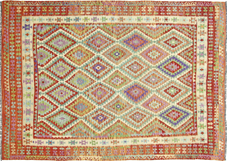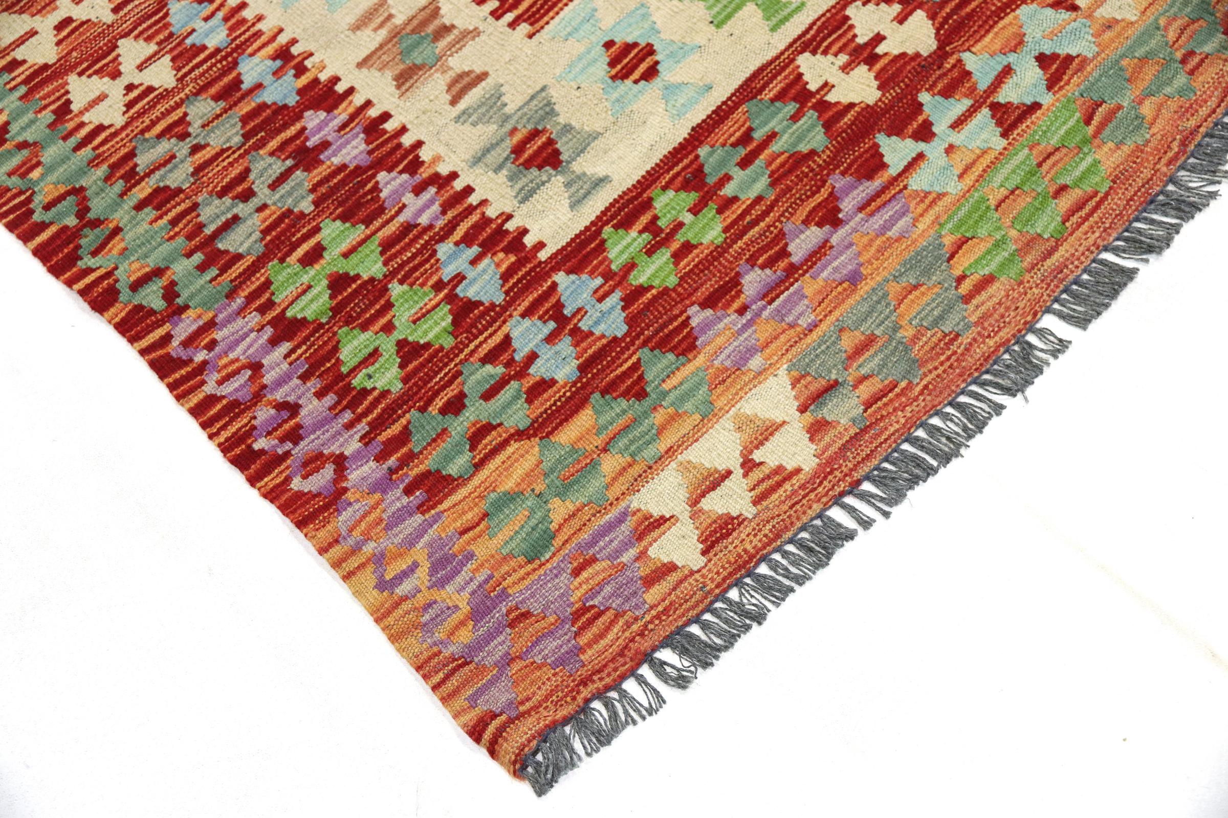 Este kilim afegão tecido à mão é lindo graças às cores multifacetadas e ao padrão típico. Foi tecido à mão no Afeganistão com 100% lã de ovelha. É, sem dúvida, mais robusto e durável do que os tapetes feitos à máquina. Além disso, este kilim tem seu próprio caráter. Uma peça única para você e sua casa que você nunca mais encontrará.