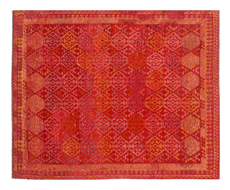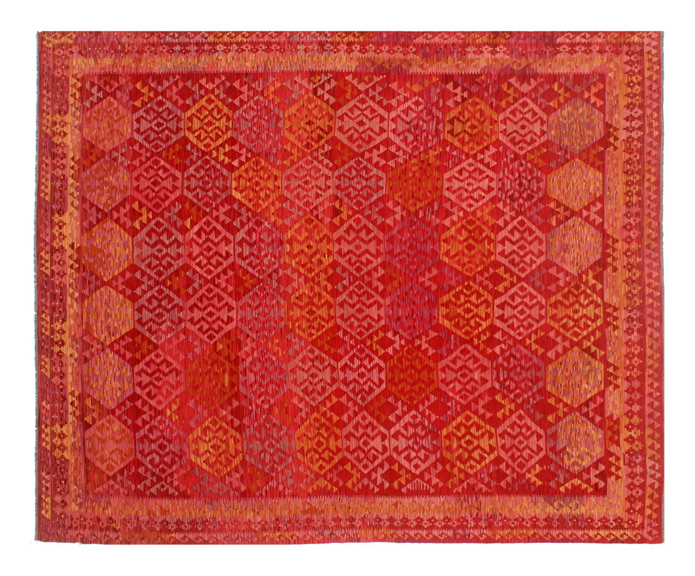 Estes tapetes quilim mostram uma diferença decisiva em relação aos tapetes feitos à mão - são tecidos à mão. Assim, não têm uma grande pilha de lã e são frequentemente mais achatados e ásperos do que os tapetes de lã nodados. O seu fabrico é menos elaborado e, por isso, são normalmente muito mais baratos. Como vantagem, os tapetes kilim são também muito mais leves e podem ser colocados pela frente e por trás. Os quilims tecidos à mão provêm originalmente da antiga Pérsia e são agora frequentemente fabricados também no Afeganistão. Têm padrões bastante simples e simples, que se devem à sua técnica de tecelagem.