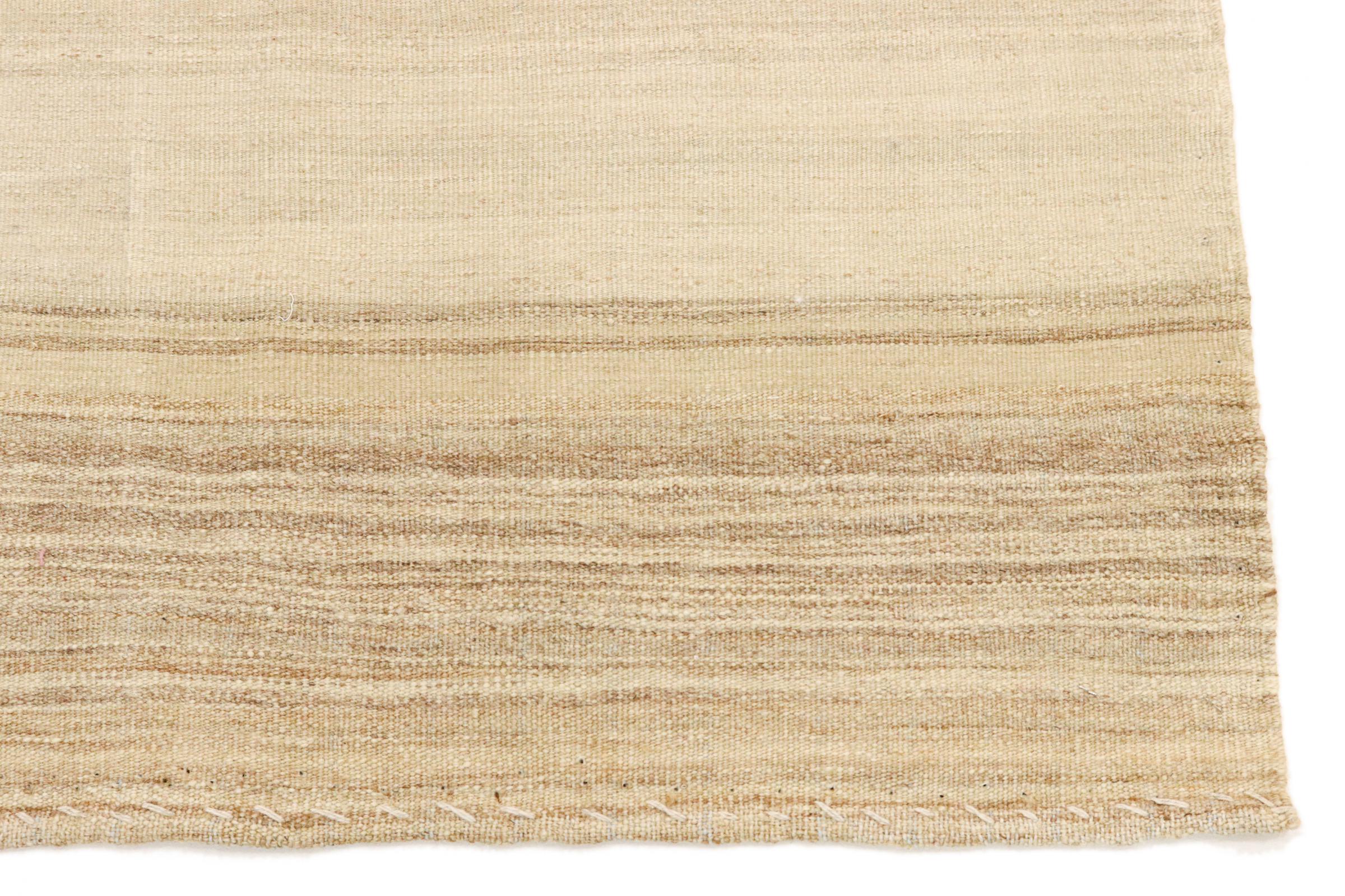 Este kilim fars tecido à mão combina padrões e ornamentos persas com a tradição de tramas planas. Uma grande e moderna combinação dos conceitos mais populares do Oriente. Isso cria um tapete com uma ampla gama de usos. Seja como colcha ou tapete na frente do sofá - um kilim Fars torna isso possível e agora pode ser encontrado nas revistas de design de interiores mais conhecidas. Os tapetes Kilim Fars são tecidos à mão no Irã e, portanto, estão entre os kilims da mais alta qualidade.