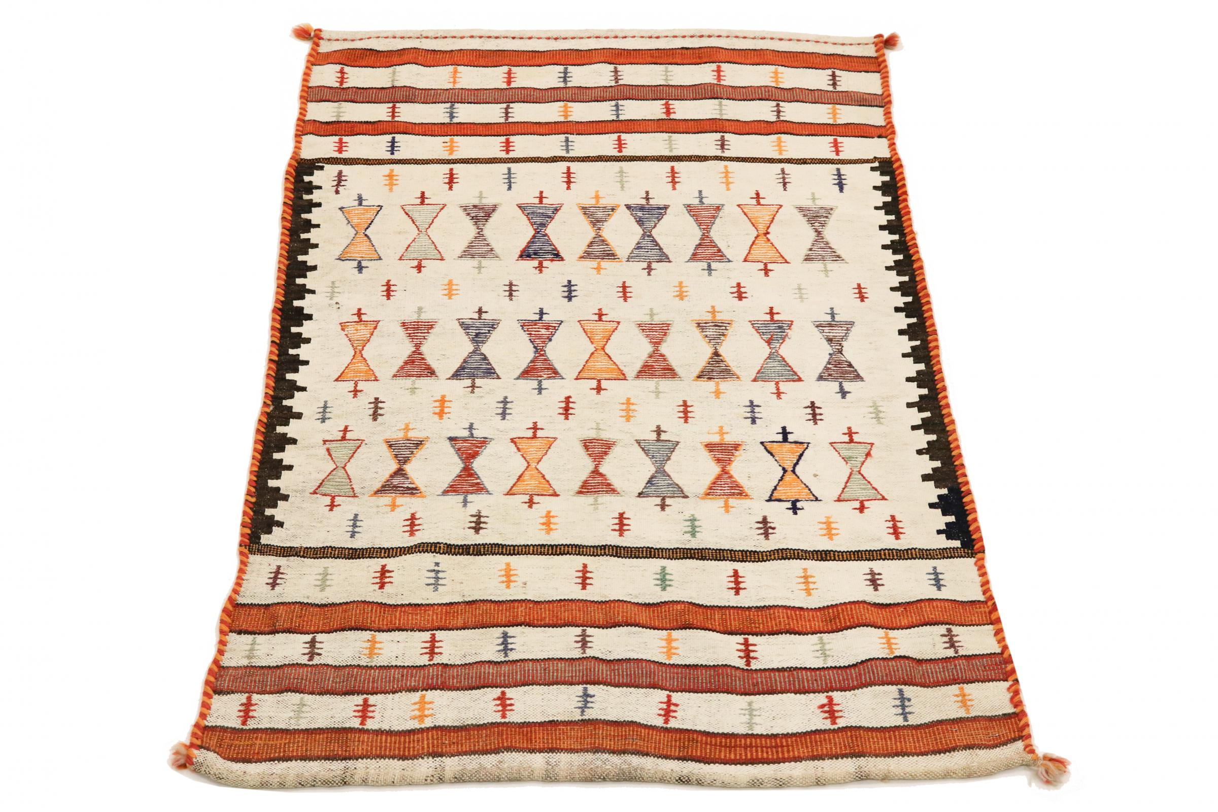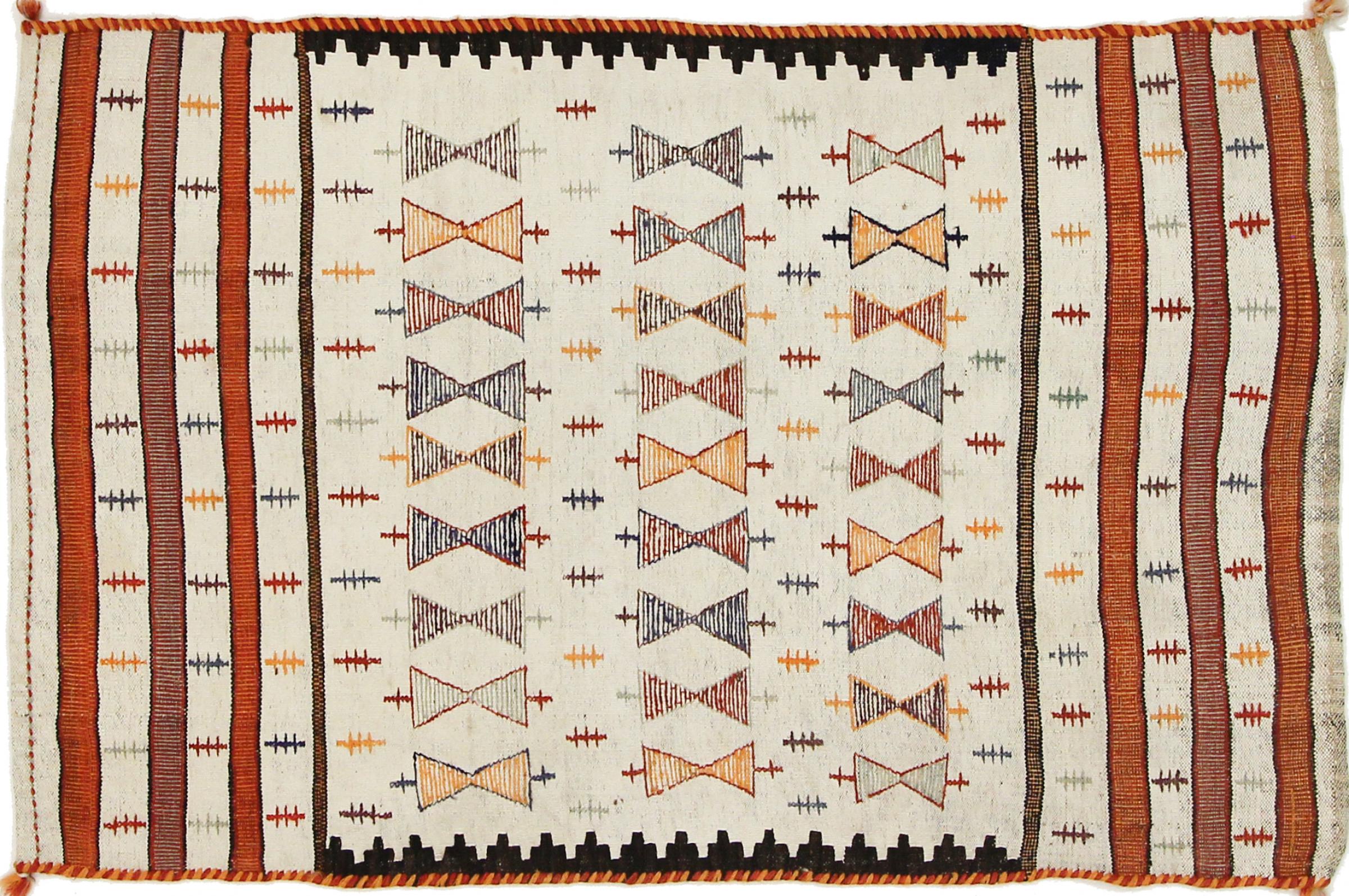 Estes tapetes quilim mostram uma diferença decisiva em relação aos tapetes feitos à mão - são tecidos à mão. Assim, não têm uma grande pilha de lã e são frequentemente mais achatados e ásperos do que os tapetes de lã nodados. O seu fabrico é menos elaborado e, por isso, são normalmente muito mais baratos. Como vantagem, os tapetes kilim são também muito mais leves e podem ser colocados pela frente e por trás. Os quilims tecidos à mão provêm originalmente da antiga Pérsia e são agora frequentemente fabricados também no Afeganistão. Têm padrões bastante simples e simples, que se devem à sua técnica de tecelagem.