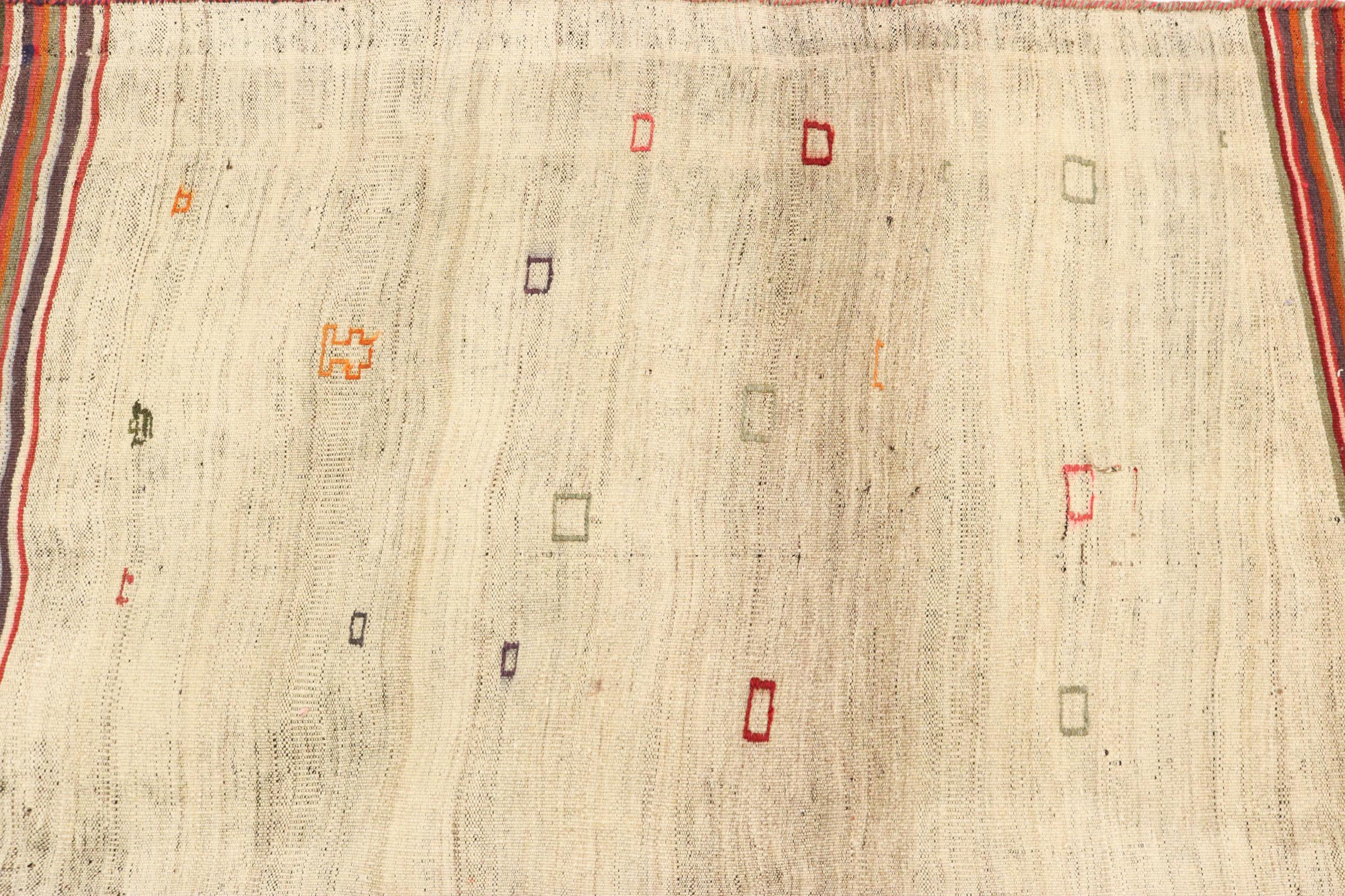 Este kilim fars tecido à mão combina padrões e ornamentos persas com a tradição de tramas planas. Uma grande e moderna combinação dos conceitos mais populares do Oriente. Isso cria um tapete com uma ampla gama de usos. Seja como colcha ou tapete na frente do sofá - um kilim Fars torna isso possível e agora pode ser encontrado nas revistas de design de interiores mais conhecidas. Os tapetes Kilim Fars são tecidos à mão no Irã e, portanto, estão entre os kilims da mais alta qualidade.