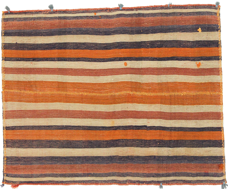 Este tapete foi feito à mão sobre um tear como uma trama plana. Flatweave é o termo utilizado para descrever tapetes que não têm pêlo. Como o nome promete, estes tapetes são tecidos e não atados. Isto resulta num tapete plano com uma superfície estruturada. Os tecidos planos não são tão macios e geralmente mais finos do que os tapetes com nós. Ao mesmo tempo, são muito menos complexos de fabricar e podem normalmente ser dispostos de ambos os lados (frente e verso). Os seus padrões são normalmente geométricos, o que é determinado pelo tecido.