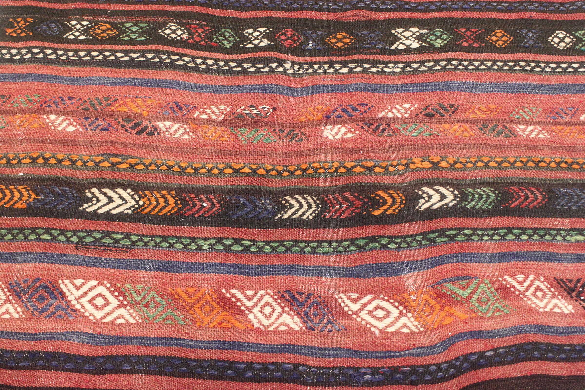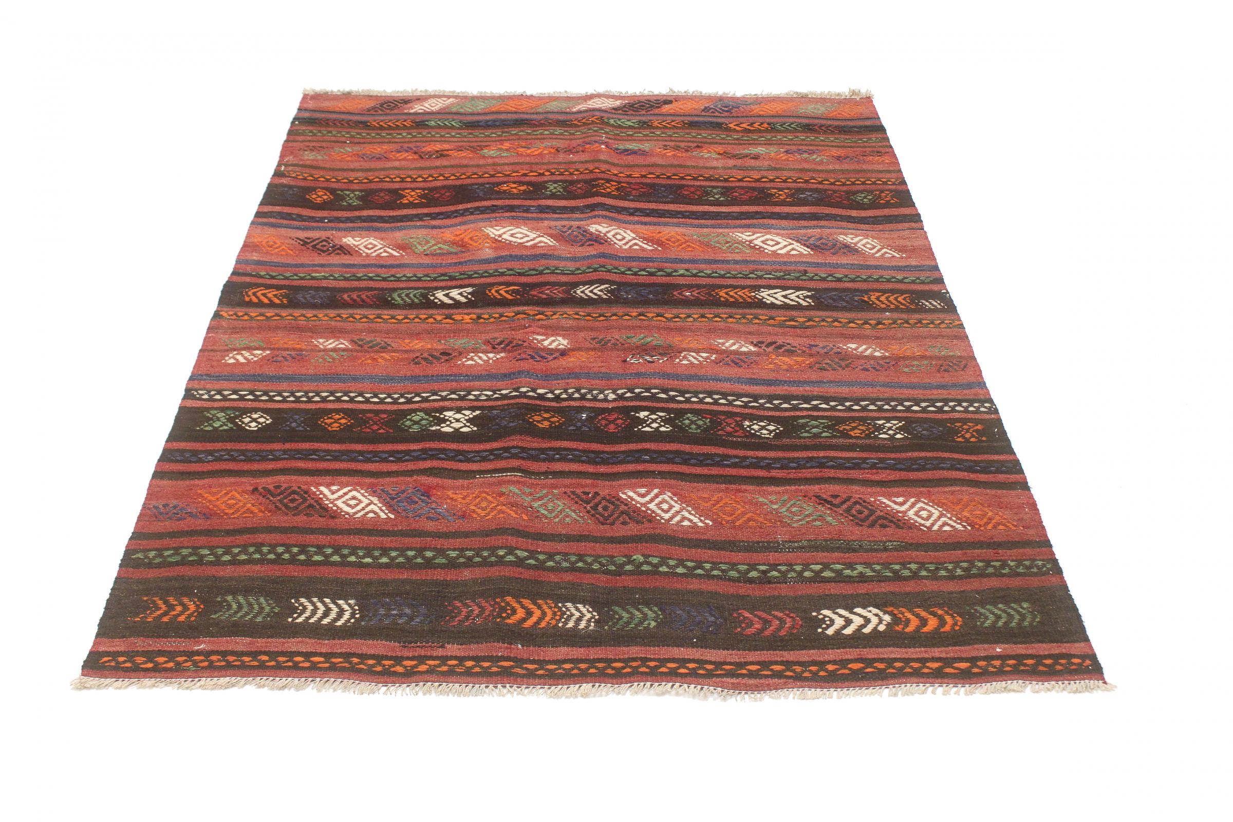 Estes tapetes quilim mostram uma diferença decisiva em relação aos tapetes feitos à mão - são tecidos à mão. Assim, não têm uma grande pilha de lã e são frequentemente mais achatados e ásperos do que os tapetes de lã nodados. O seu fabrico é menos elaborado e, por isso, são normalmente muito mais baratos. Como vantagem, os tapetes kilim são também muito mais leves e podem ser colocados pela frente e por trás. Os quilims tecidos à mão provêm originalmente da antiga Pérsia e são agora frequentemente fabricados também no Afeganistão. Têm padrões bastante simples e simples, que se devem à sua técnica de tecelagem.