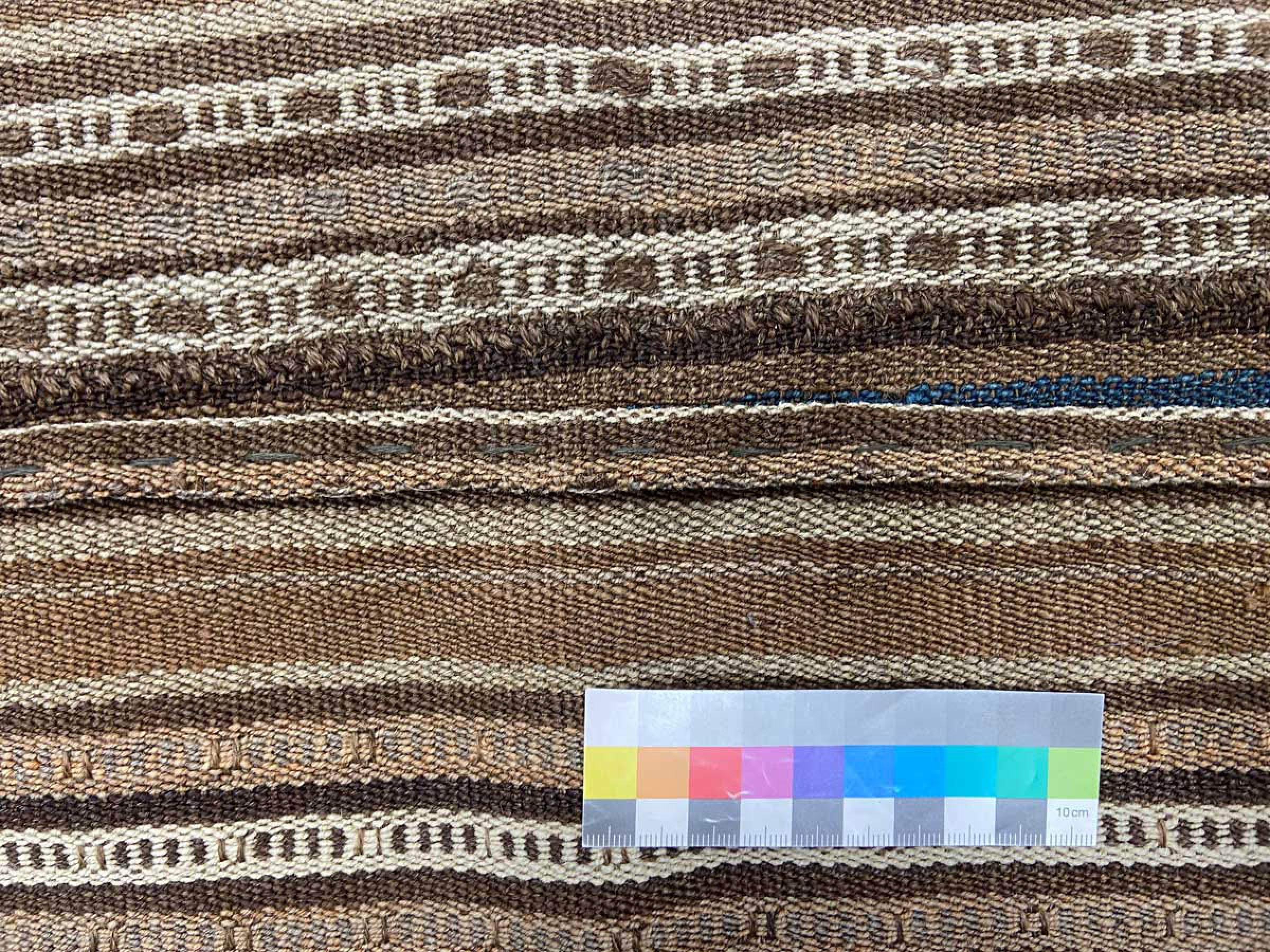 Este tapete foi feito à mão sobre um tear como uma trama plana. Flatweave é o termo utilizado para descrever tapetes que não têm pêlo. Como o nome promete, estes tapetes são tecidos e não atados. Isto resulta num tapete plano com uma superfície estruturada. Os tecidos planos não são tão macios e geralmente mais finos do que os tapetes com nós. Ao mesmo tempo, são muito menos complexos de fabricar e podem normalmente ser dispostos de ambos os lados (frente e verso). Os seus padrões são normalmente geométricos, o que é determinado pelo tecido.