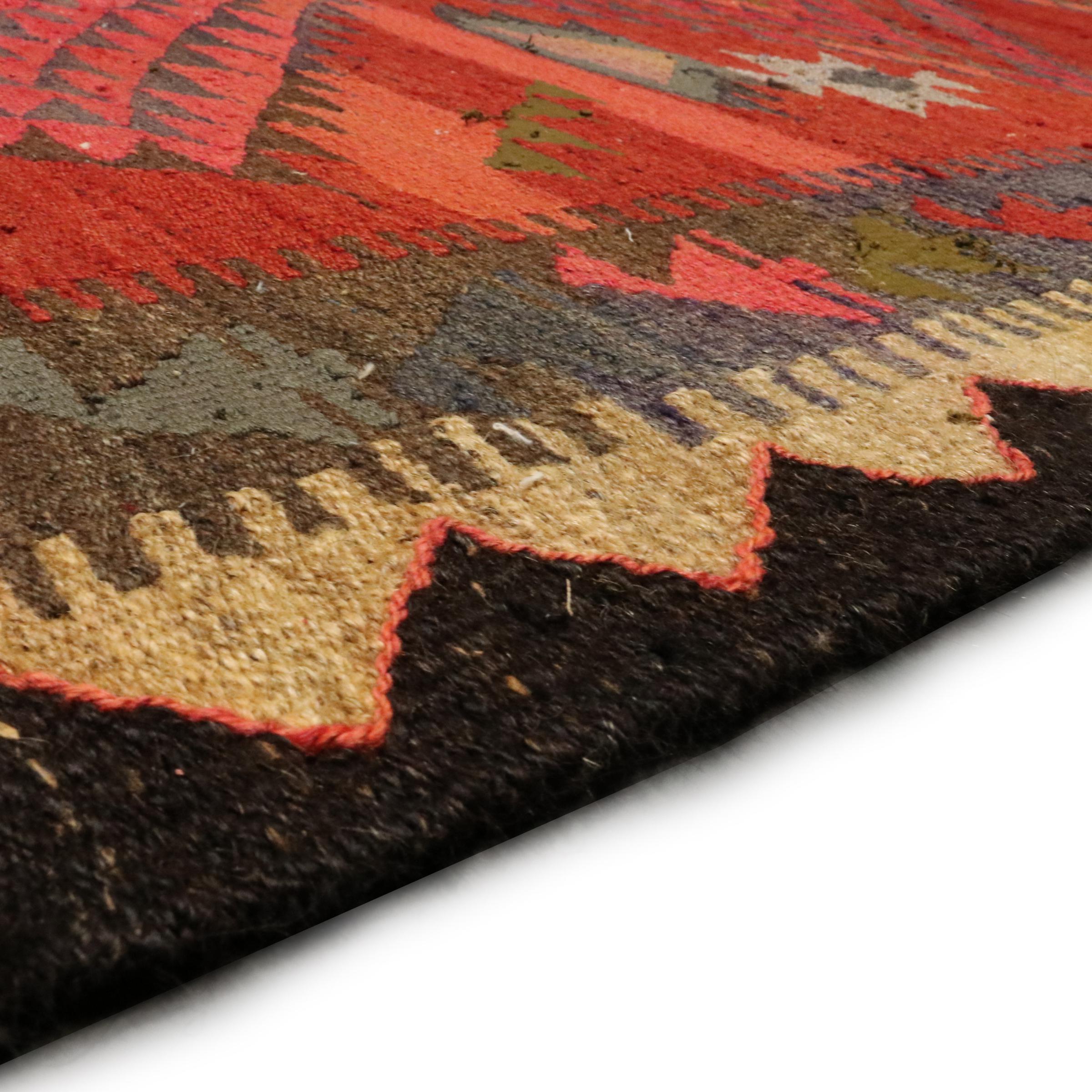 Este kilim fars tecido à mão combina padrões e ornamentos persas com a tradição de tramas planas. Uma grande e moderna combinação dos conceitos mais populares do Oriente. Isso cria um tapete com uma ampla gama de usos. Seja como colcha ou tapete na frente do sofá - um kilim Fars torna isso possível e agora pode ser encontrado nas revistas de design de interiores mais conhecidas. Os tapetes Kilim Fars são tecidos à mão no Irã e, portanto, estão entre os kilims da mais alta qualidade.