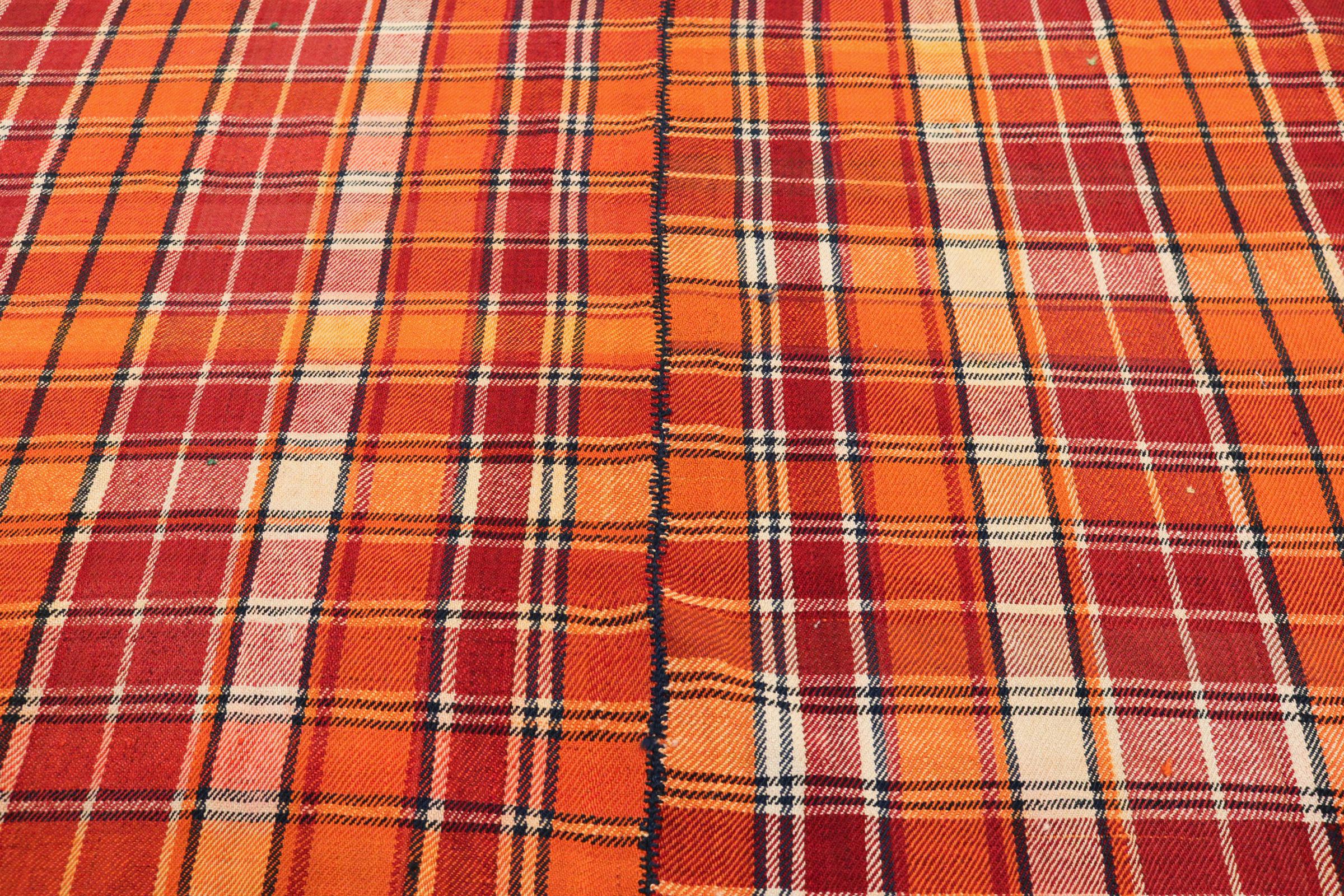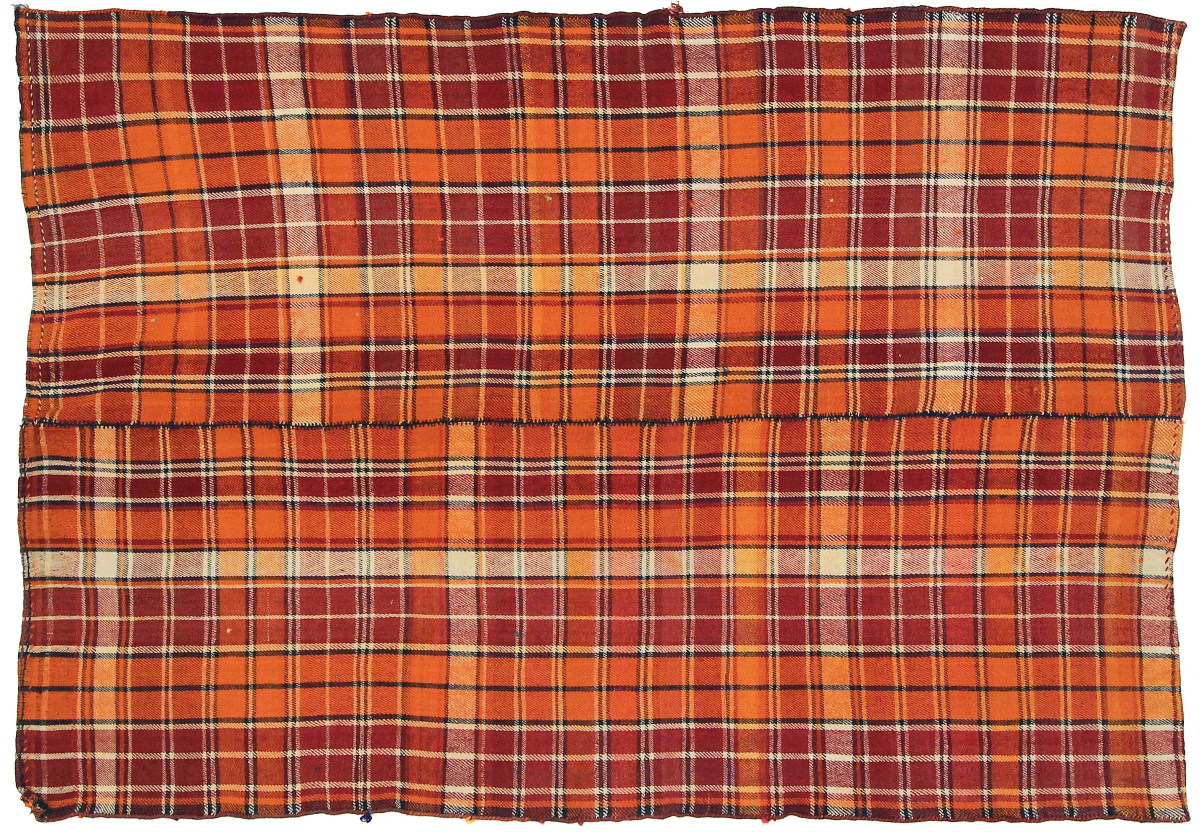 Este tapete foi feito à mão sobre um tear como uma trama plana. Flatweave é o termo utilizado para descrever tapetes que não têm pêlo. Como o nome promete, estes tapetes são tecidos e não atados. Isto resulta num tapete plano com uma superfície estruturada. Os tecidos planos não são tão macios e geralmente mais finos do que os tapetes com nós. Ao mesmo tempo, são muito menos complexos de fabricar e podem normalmente ser dispostos de ambos os lados (frente e verso). Os seus padrões são normalmente geométricos, o que é determinado pelo tecido.