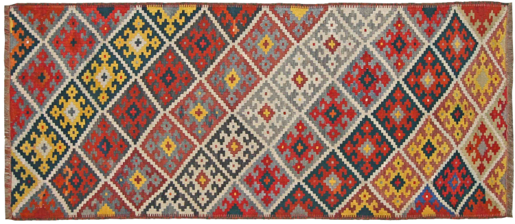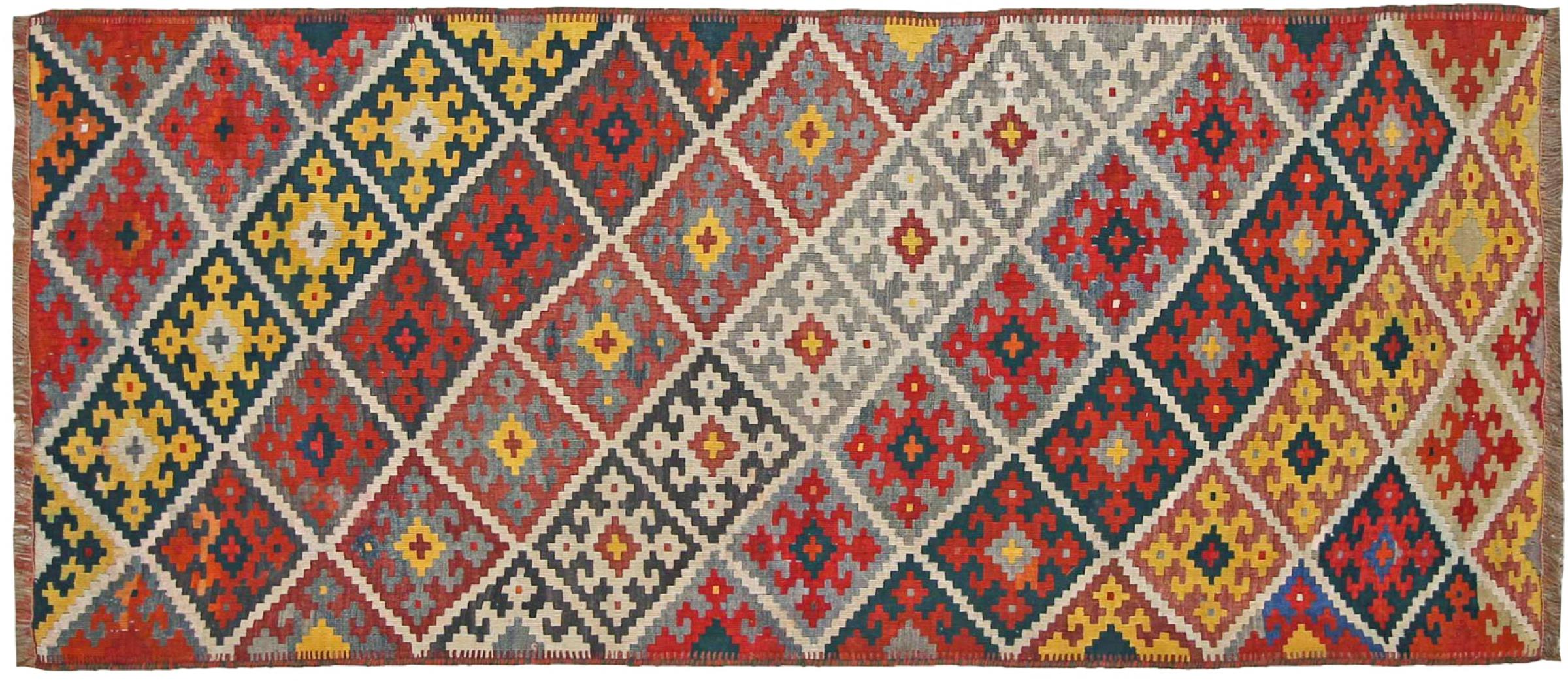 Estes tapetes quilim mostram uma diferença decisiva em relação aos tapetes feitos à mão - são tecidos à mão. Assim, não têm uma grande pilha de lã e são frequentemente mais achatados e ásperos do que os tapetes de lã nodados. O seu fabrico é menos elaborado e, por isso, são normalmente muito mais baratos. Como vantagem, os tapetes kilim são também muito mais leves e podem ser colocados pela frente e por trás. Os quilims tecidos à mão provêm originalmente da antiga Pérsia e são agora frequentemente fabricados também no Afeganistão. Têm padrões bastante simples e simples, que se devem à sua técnica de tecelagem.