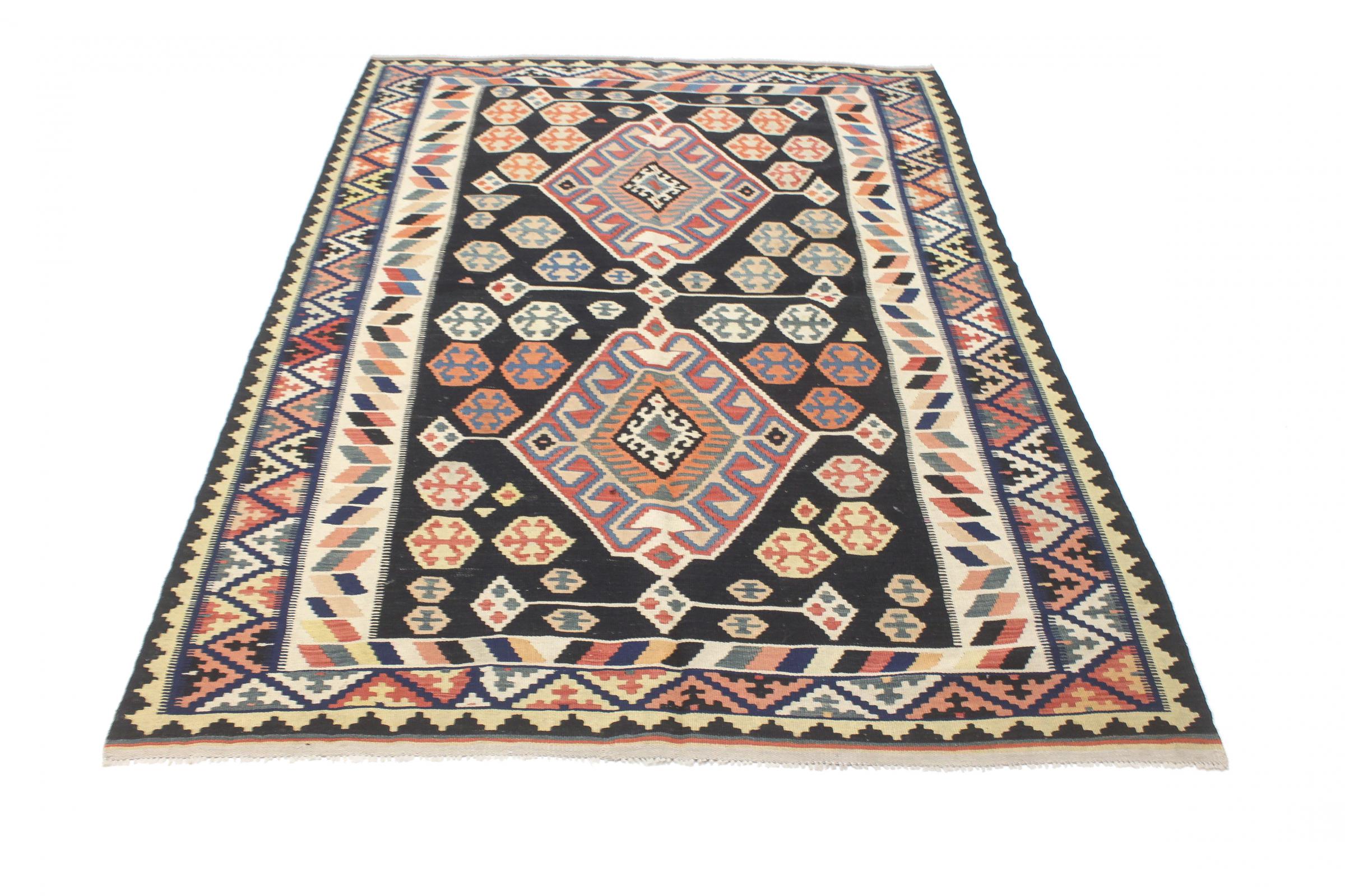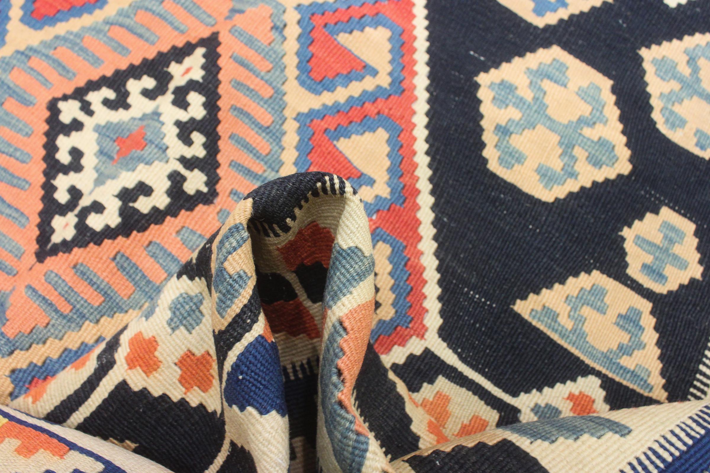 Este kilim fars tecido à mão combina padrões e ornamentos persas com a tradição de tramas planas. Uma grande e moderna combinação dos conceitos mais populares do Oriente. Isso cria um tapete com uma ampla gama de usos. Seja como colcha ou tapete na frente do sofá - um kilim Fars torna isso possível e agora pode ser encontrado nas revistas de design de interiores mais conhecidas. Os tapetes Kilim Fars são tecidos à mão no Irã e, portanto, estão entre os kilims da mais alta qualidade.