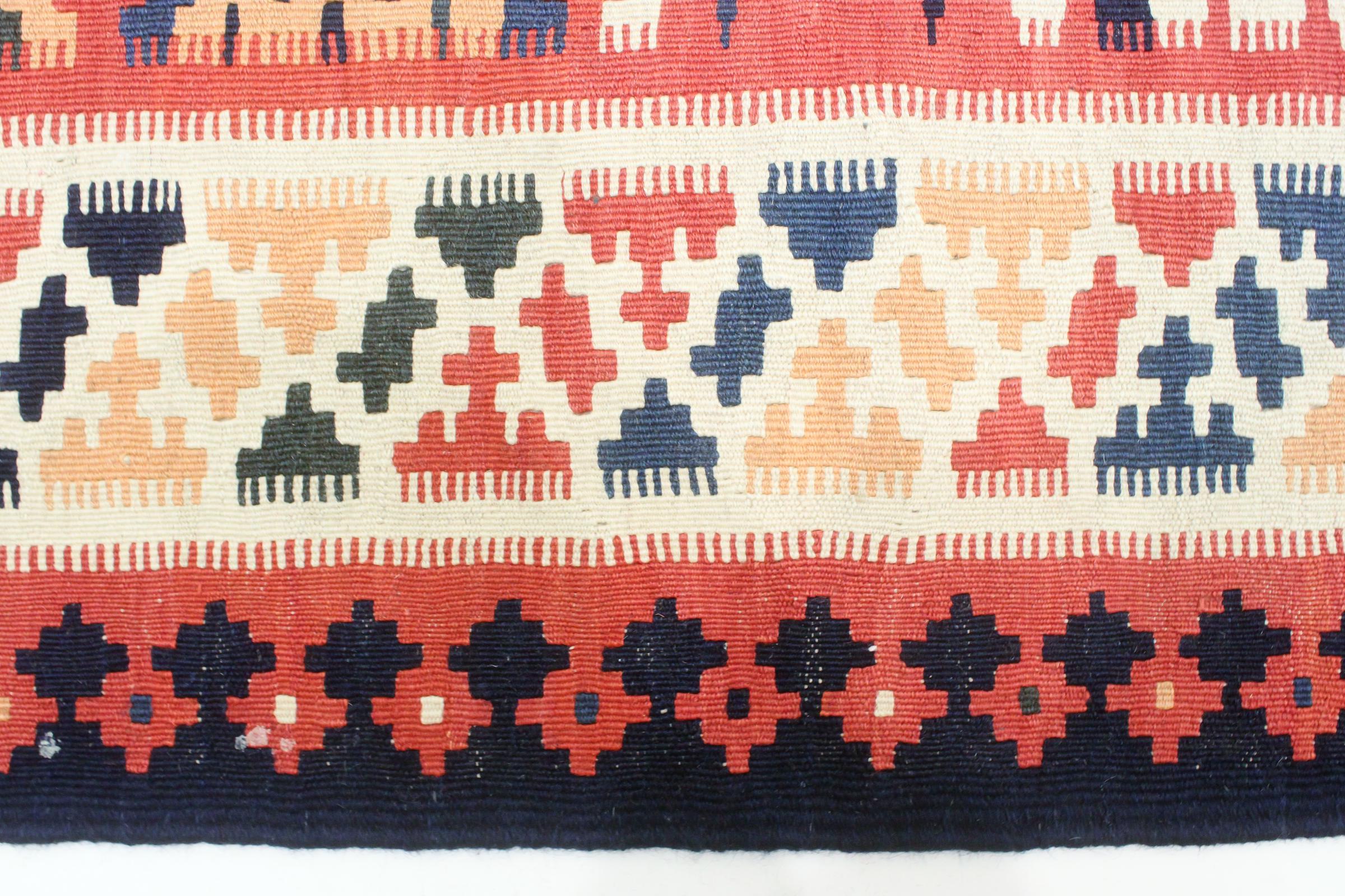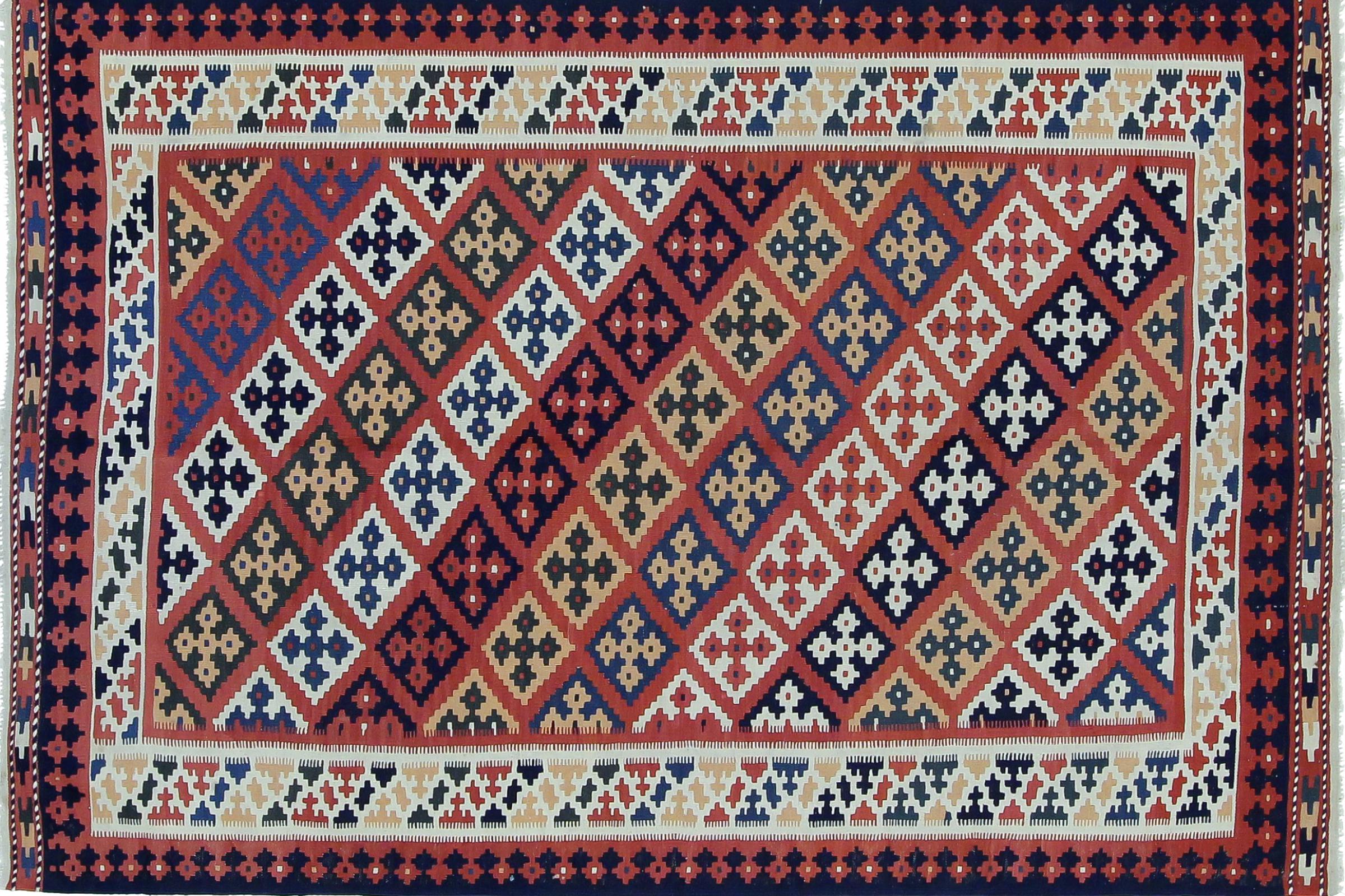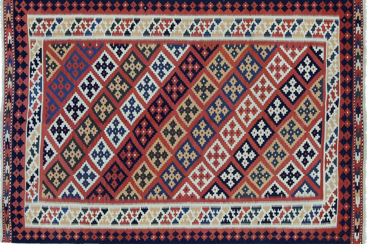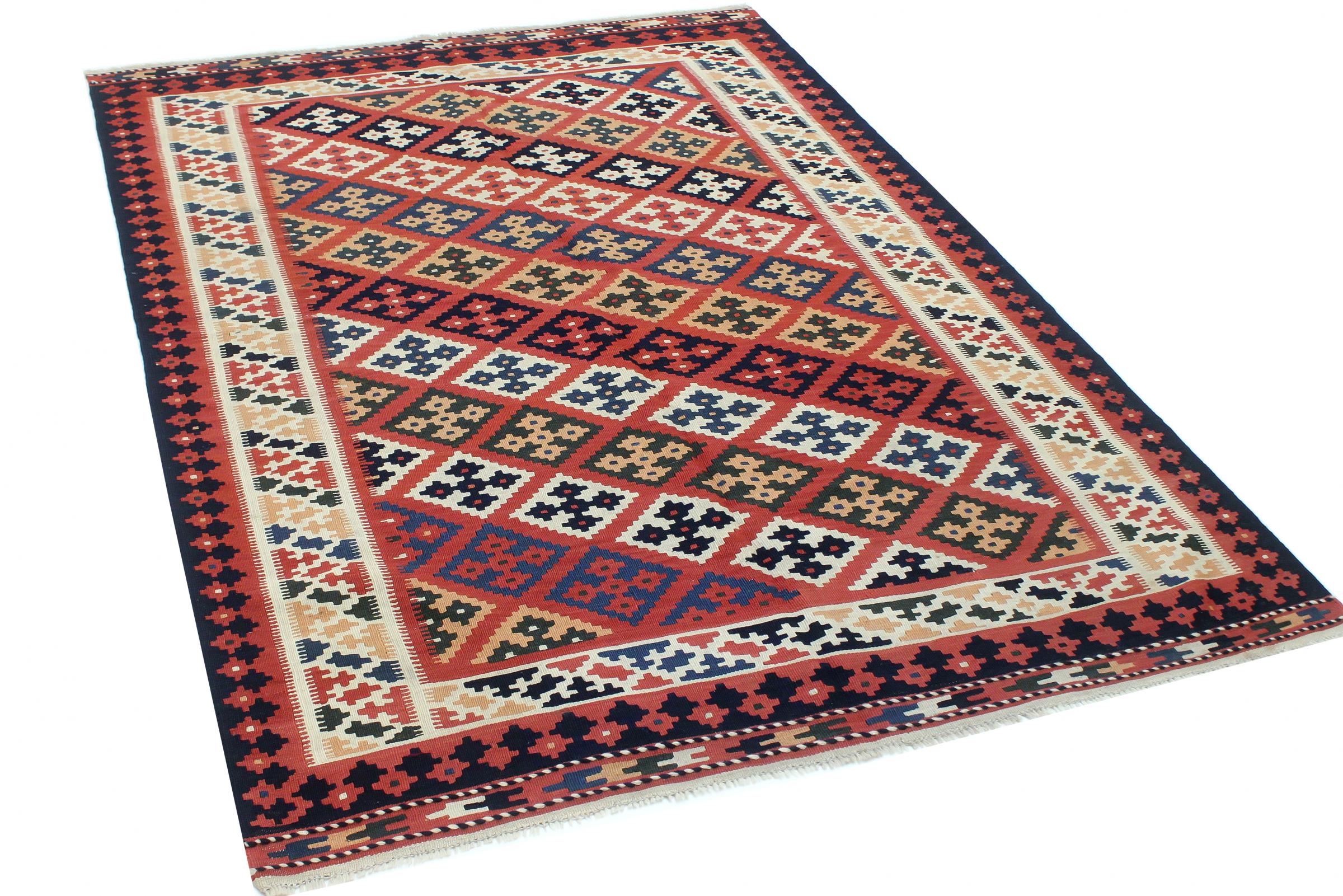 Estes tapetes quilim mostram uma diferença decisiva em relação aos tapetes feitos à mão - são tecidos à mão. Assim, não têm uma grande pilha de lã e são frequentemente mais achatados e ásperos do que os tapetes de lã nodados. O seu fabrico é menos elaborado e, por isso, são normalmente muito mais baratos. Como vantagem, os tapetes kilim são também muito mais leves e podem ser colocados pela frente e por trás. Os quilims tecidos à mão provêm originalmente da antiga Pérsia e são agora frequentemente fabricados também no Afeganistão. Têm padrões bastante simples e simples, que se devem à sua técnica de tecelagem.