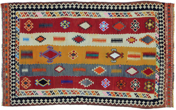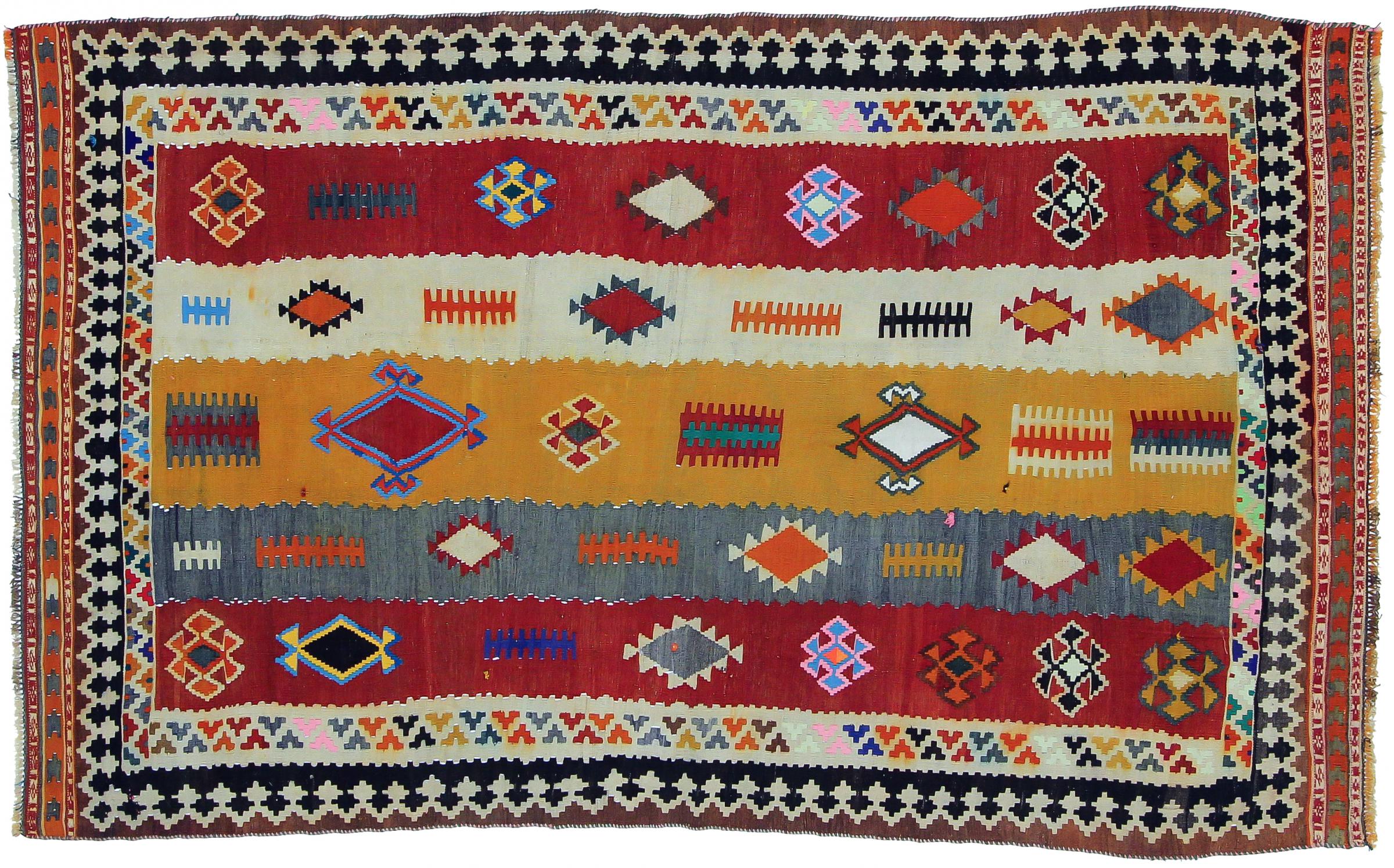 Estes tapetes quilim mostram uma diferença decisiva em relação aos tapetes feitos à mão - são tecidos à mão. Assim, não têm uma grande pilha de lã e são frequentemente mais achatados e ásperos do que os tapetes de lã nodados. O seu fabrico é menos elaborado e, por isso, são normalmente muito mais baratos. Como vantagem, os tapetes kilim são também muito mais leves e podem ser colocados pela frente e por trás. Os quilims tecidos à mão provêm originalmente da antiga Pérsia e são agora frequentemente fabricados também no Afeganistão. Têm padrões bastante simples e simples, que se devem à sua técnica de tecelagem.