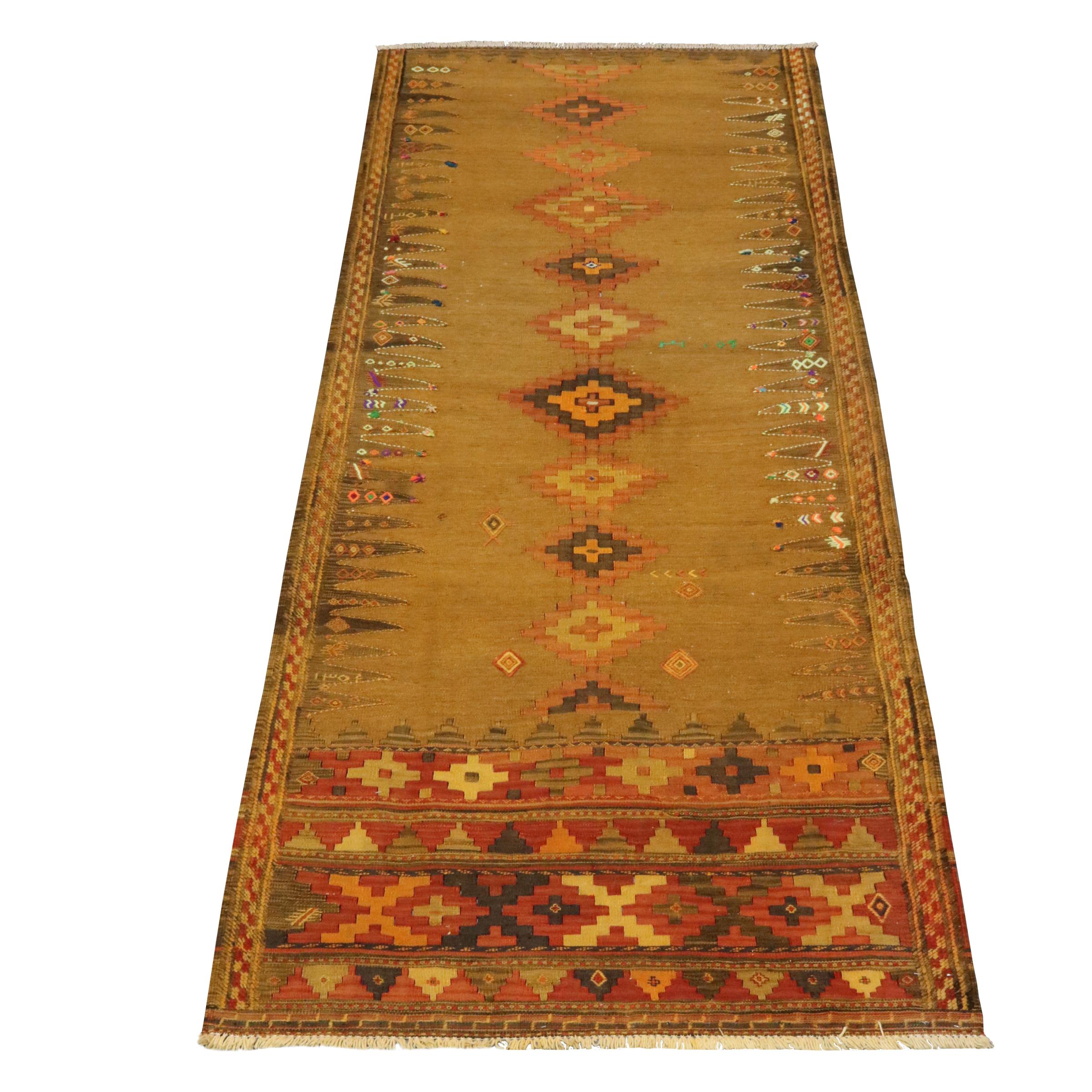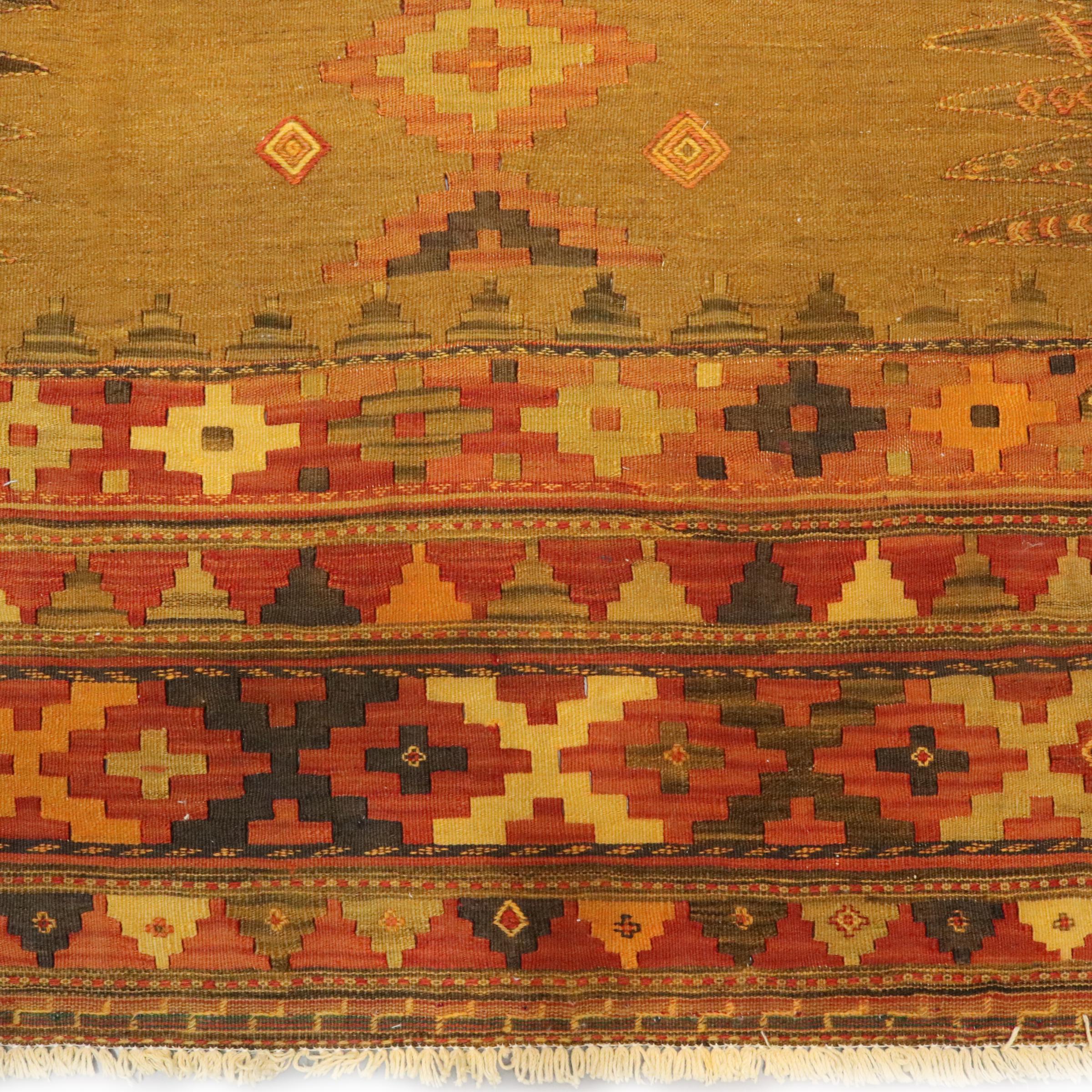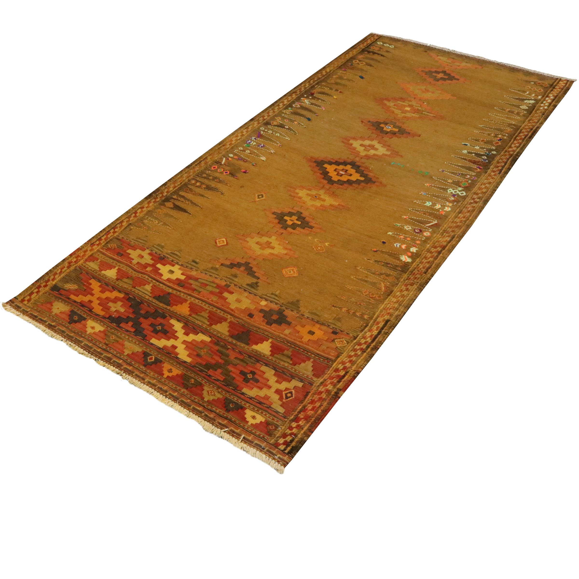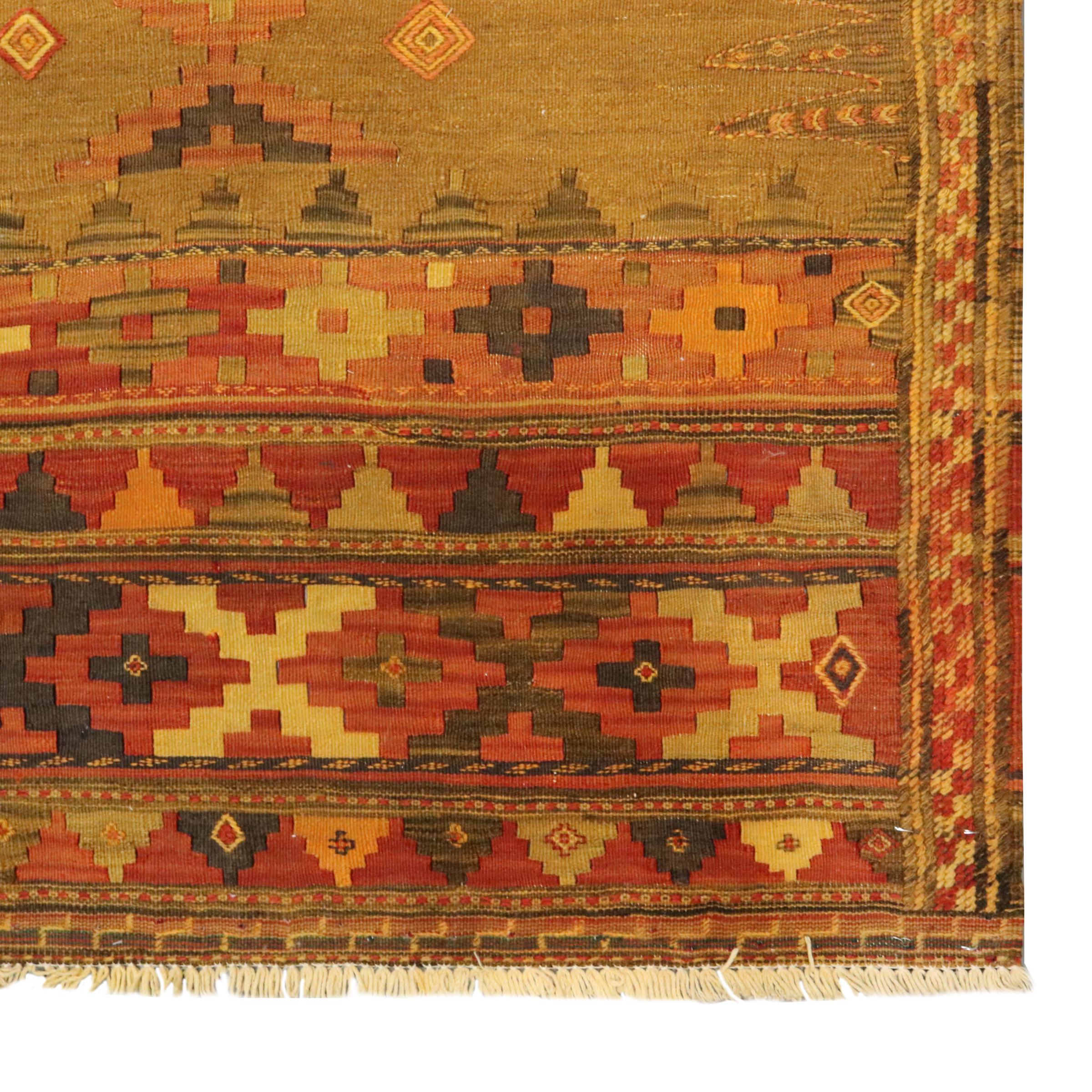 Este kilim fars tecido à mão combina padrões e ornamentos persas com a tradição de tramas planas. Uma grande e moderna combinação dos conceitos mais populares do Oriente. Isso cria um tapete com uma ampla gama de usos. Seja como colcha ou tapete na frente do sofá - um kilim Fars torna isso possível e agora pode ser encontrado nas revistas de design de interiores mais conhecidas. Os tapetes Kilim Fars são tecidos à mão no Irã e, portanto, estão entre os kilims da mais alta qualidade.