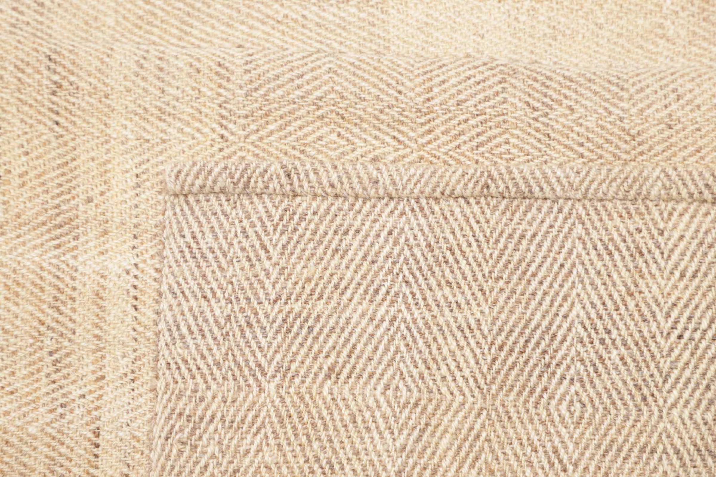 Este tapete foi feito à mão sobre um tear como uma trama plana. Flatweave é o termo utilizado para descrever tapetes que não têm pêlo. Como o nome promete, estes tapetes são tecidos e não atados. Isto resulta num tapete plano com uma superfície estruturada. Os tecidos planos não são tão macios e geralmente mais finos do que os tapetes com nós. Ao mesmo tempo, são muito menos complexos de fabricar e podem normalmente ser dispostos de ambos os lados (frente e verso). Os seus padrões são normalmente geométricos, o que é determinado pelo tecido.