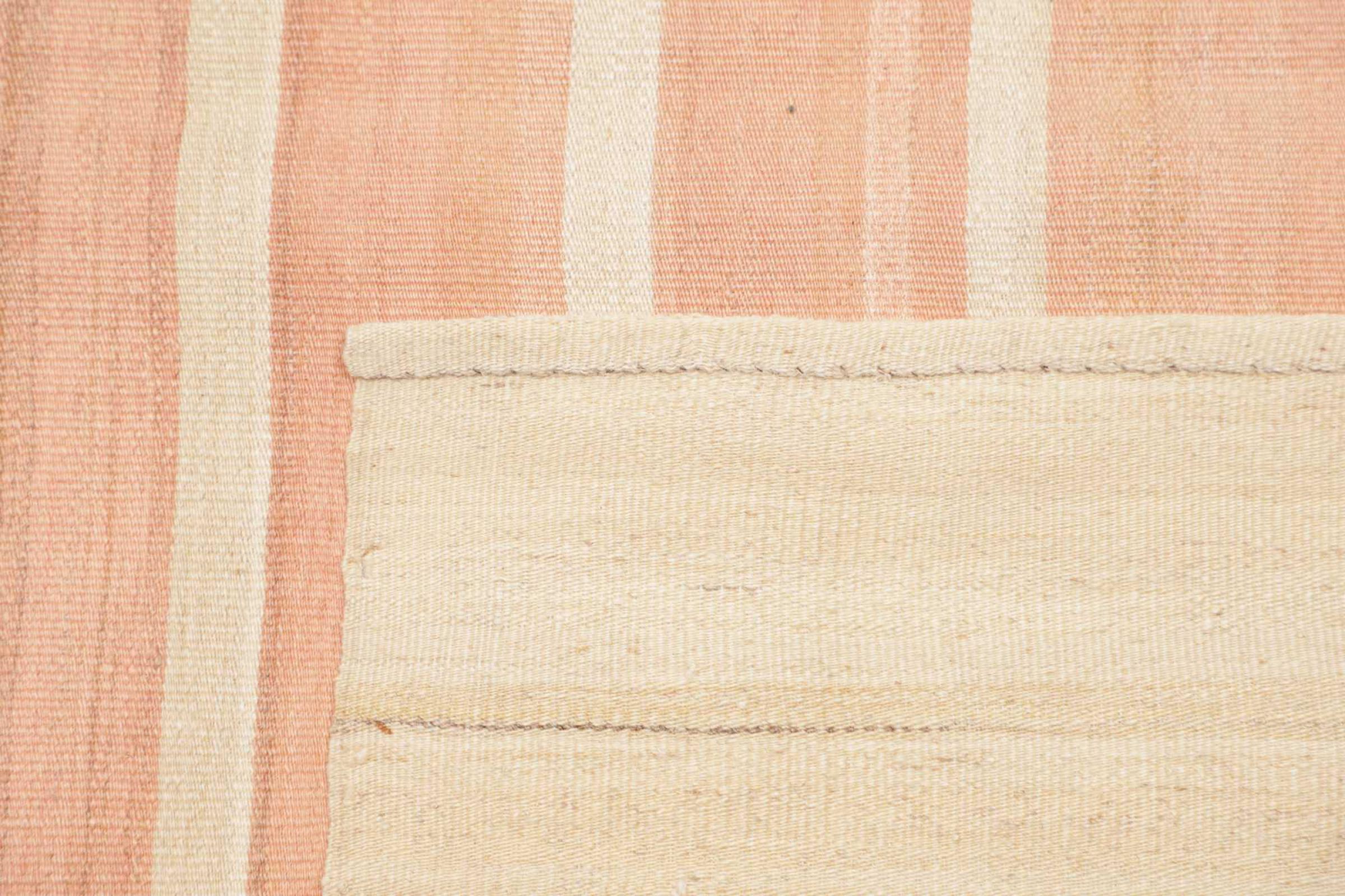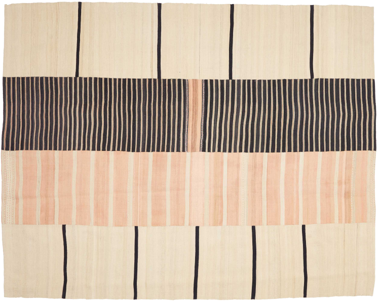 Este tapete foi feito à mão sobre um tear como uma trama plana. Flatweave é o termo utilizado para descrever tapetes que não têm pêlo. Como o nome promete, estes tapetes são tecidos e não atados. Isto resulta num tapete plano com uma superfície estruturada. Os tecidos planos não são tão macios e geralmente mais finos do que os tapetes com nós. Ao mesmo tempo, são muito menos complexos de fabricar e podem normalmente ser dispostos de ambos os lados (frente e verso). Os seus padrões são normalmente geométricos, o que é determinado pelo tecido.
