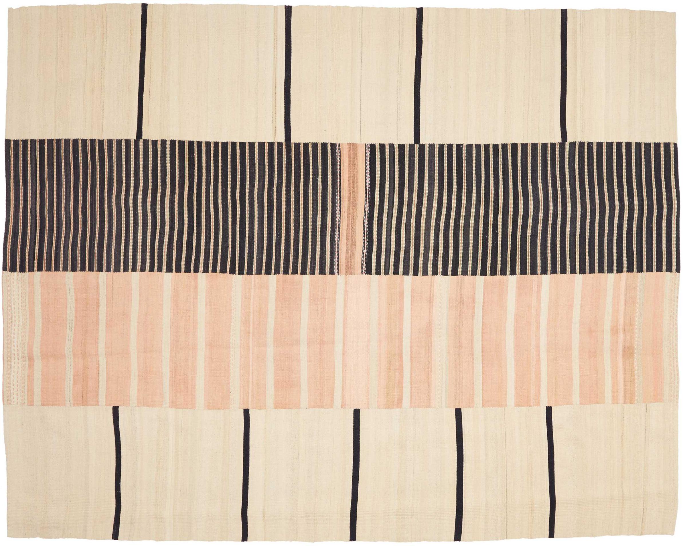Este kilim fars tecido à mão combina padrões e ornamentos persas com a tradição de tramas planas. Uma grande e moderna combinação dos conceitos mais populares do Oriente. Isso cria um tapete com uma ampla gama de usos. Seja como colcha ou tapete na frente do sofá - um kilim Fars torna isso possível e agora pode ser encontrado nas revistas de design de interiores mais conhecidas. Os tapetes Kilim Fars são tecidos à mão no Irã e, portanto, estão entre os kilims da mais alta qualidade.