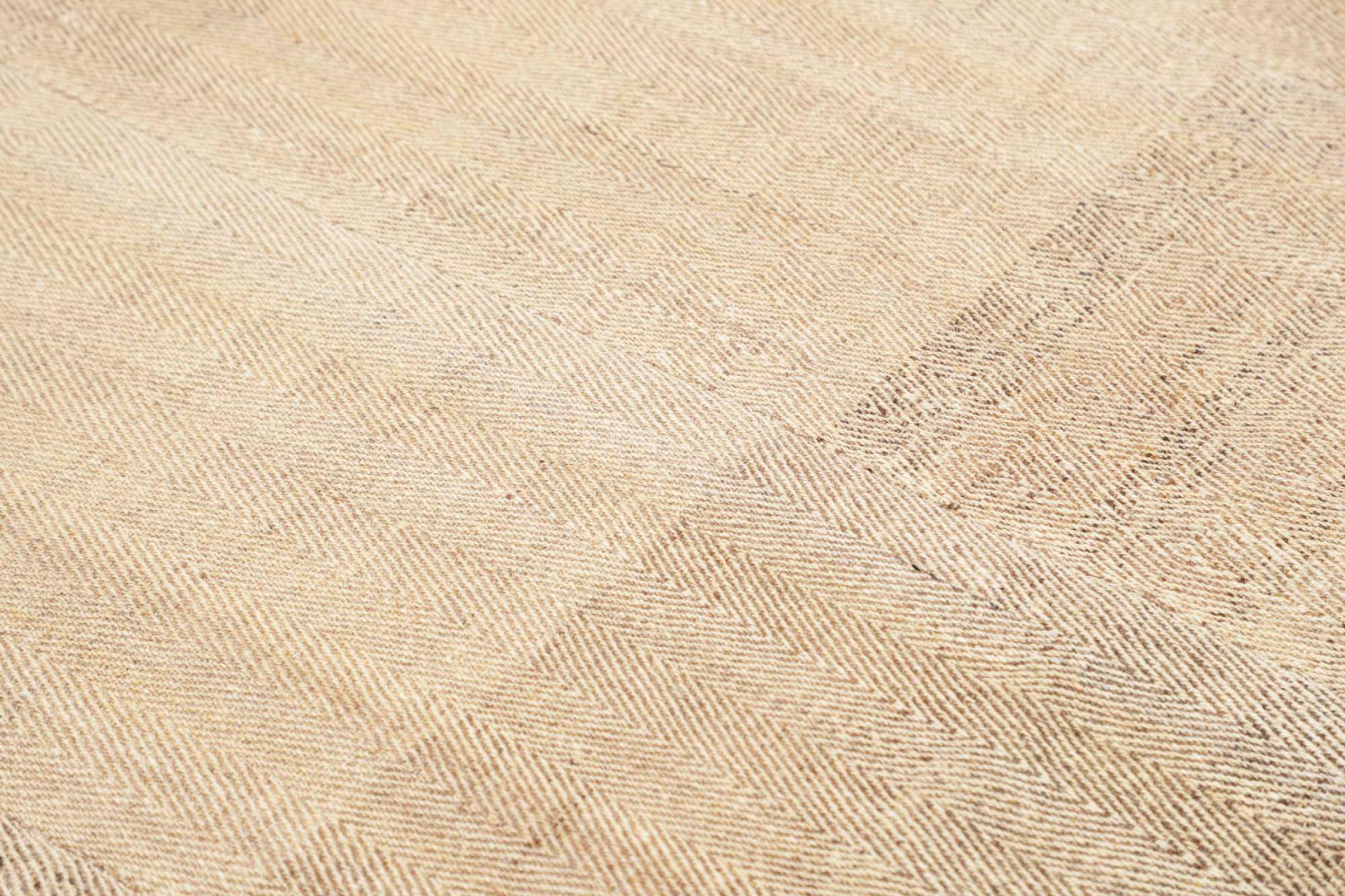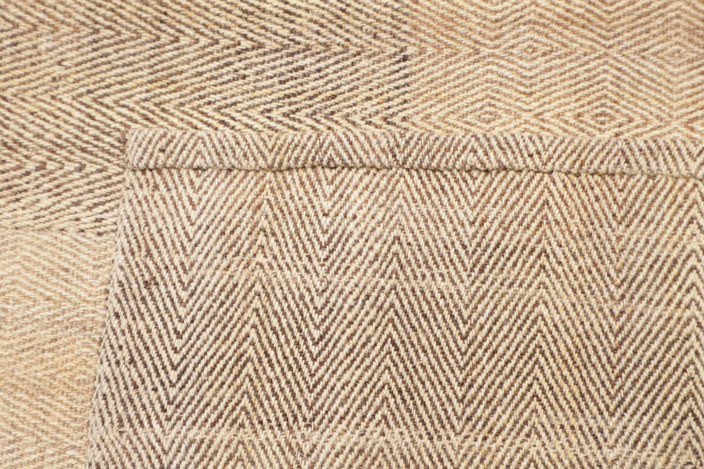 Este tapete foi feito à mão sobre um tear como uma trama plana. Flatweave é o termo utilizado para descrever tapetes que não têm pêlo. Como o nome promete, estes tapetes são tecidos e não atados. Isto resulta num tapete plano com uma superfície estruturada. Os tecidos planos não são tão macios e geralmente mais finos do que os tapetes com nós. Ao mesmo tempo, são muito menos complexos de fabricar e podem normalmente ser dispostos de ambos os lados (frente e verso). Os seus padrões são normalmente geométricos, o que é determinado pelo tecido.