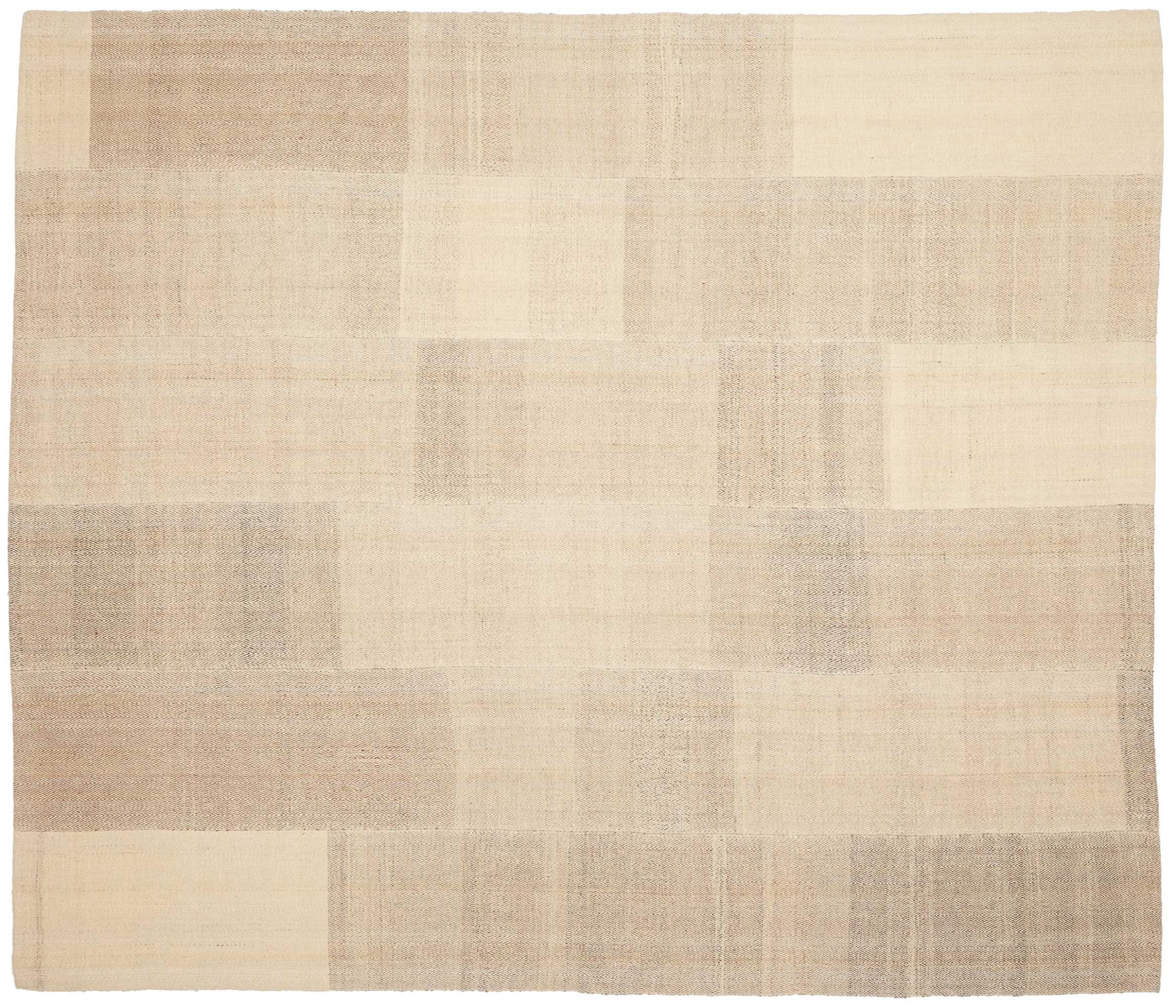 Este kilim fars tecido à mão combina padrões e ornamentos persas com a tradição de tramas planas. Uma grande e moderna combinação dos conceitos mais populares do Oriente. Isso cria um tapete com uma ampla gama de usos. Seja como colcha ou tapete na frente do sofá - um kilim Fars torna isso possível e agora pode ser encontrado nas revistas de design de interiores mais conhecidas. Os tapetes Kilim Fars são tecidos à mão no Irã e, portanto, estão entre os kilims da mais alta qualidade.