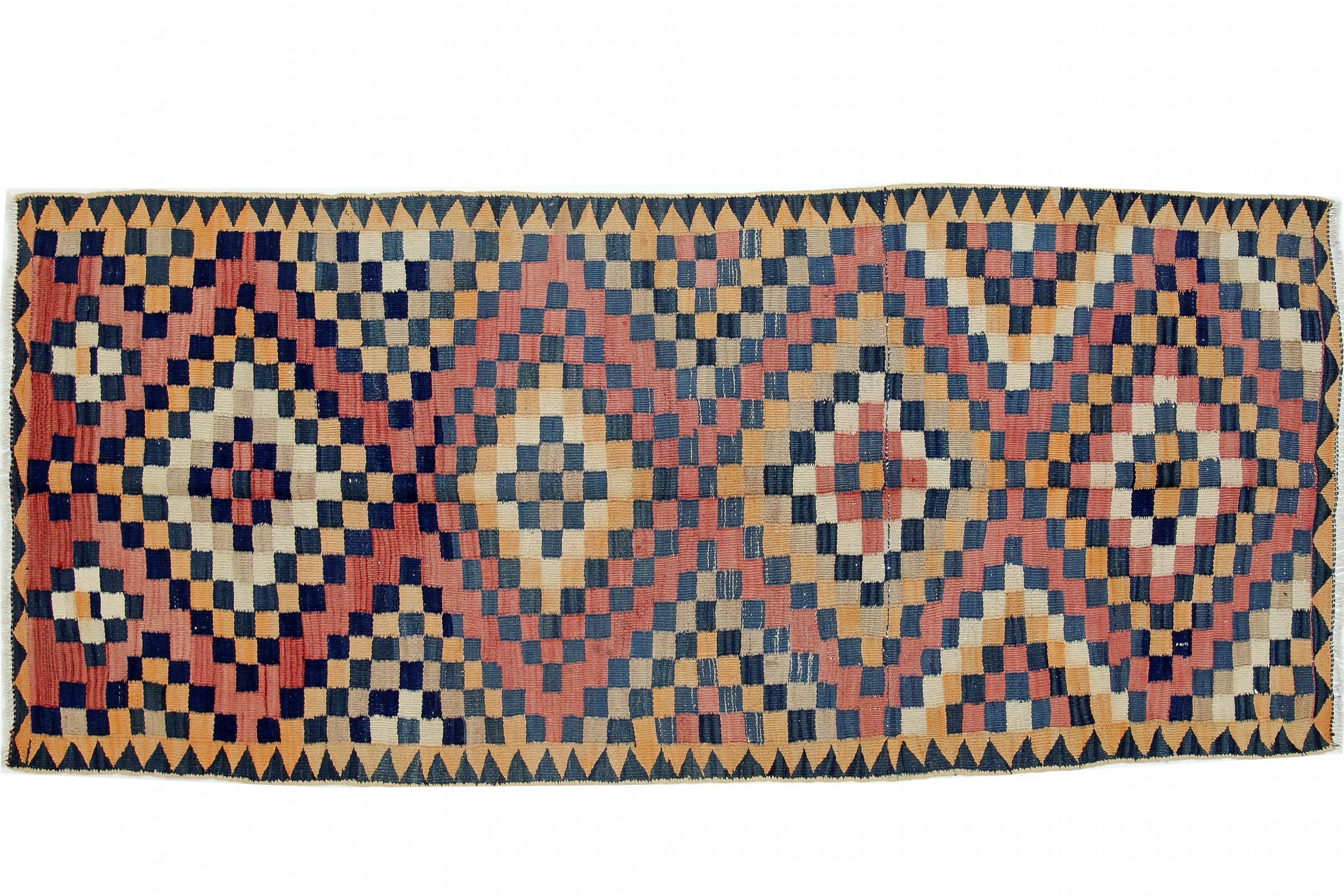 Estes tapetes quilim mostram uma diferença decisiva em relação aos tapetes feitos à mão - são tecidos à mão. Assim, não têm uma grande pilha de lã e são frequentemente mais achatados e ásperos do que os tapetes de lã nodados. O seu fabrico é menos elaborado e, por isso, são normalmente muito mais baratos. Como vantagem, os tapetes kilim são também muito mais leves e podem ser colocados pela frente e por trás. Os quilims tecidos à mão provêm originalmente da antiga Pérsia e são agora frequentemente fabricados também no Afeganistão. Têm padrões bastante simples e simples, que se devem à sua técnica de tecelagem.
