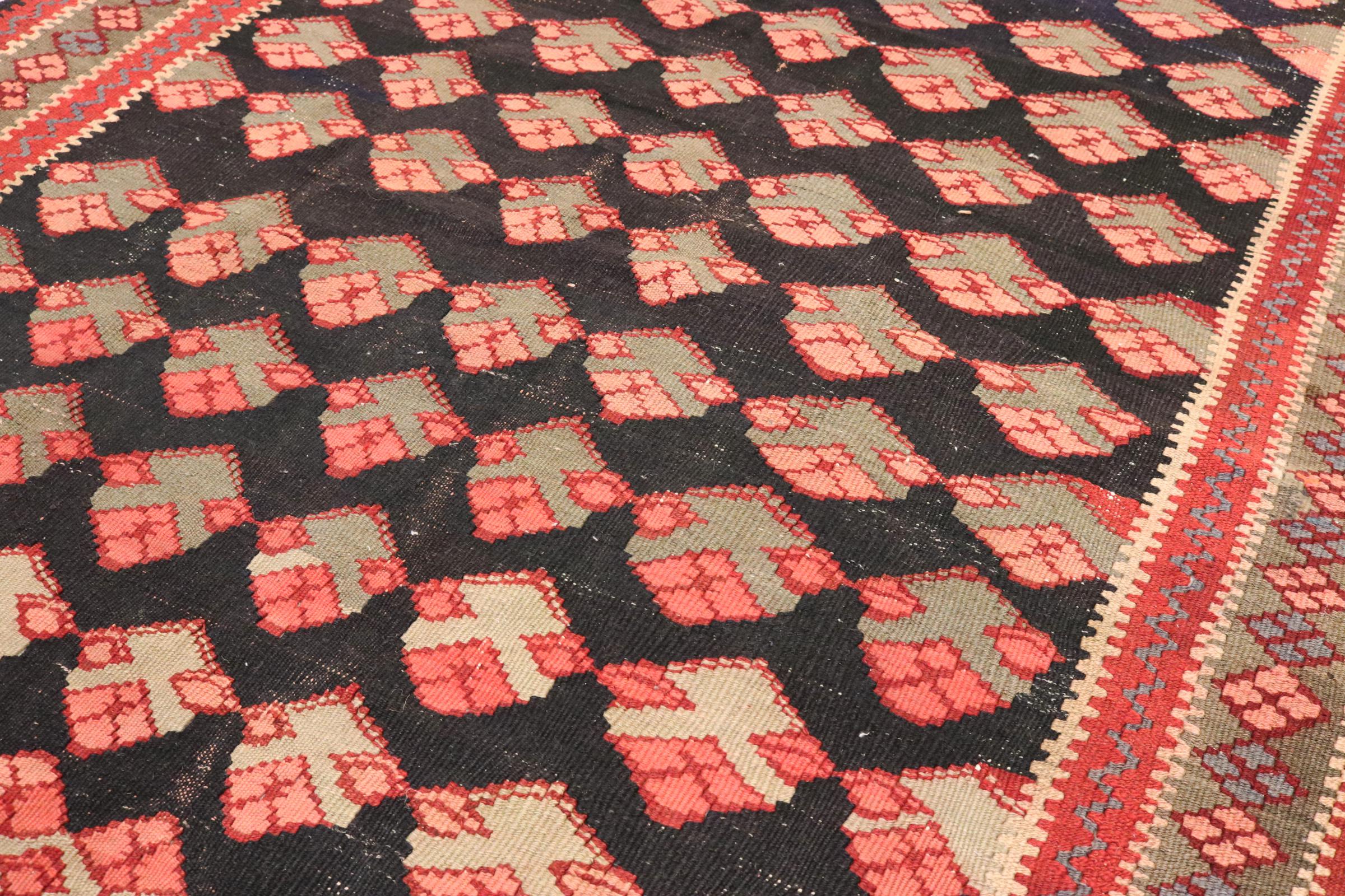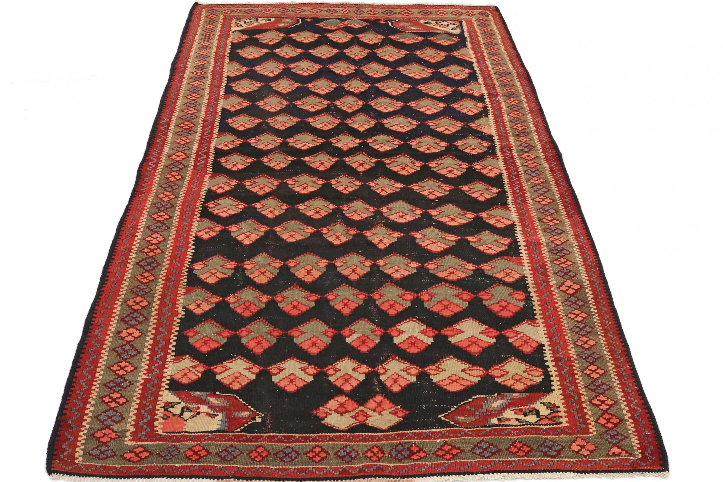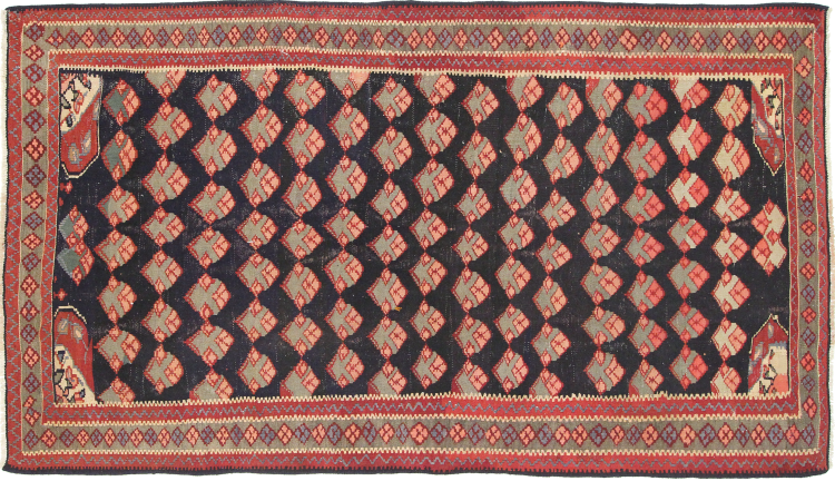 Este kilim fars tecido à mão combina padrões e ornamentos persas com a tradição de tramas planas. Uma grande e moderna combinação dos conceitos mais populares do Oriente. Isso cria um tapete com uma ampla gama de usos. Seja como colcha ou tapete na frente do sofá - um kilim Fars torna isso possível e agora pode ser encontrado nas revistas de design de interiores mais conhecidas. Os tapetes Kilim Fars são tecidos à mão no Irã e, portanto, estão entre os kilims da mais alta qualidade.