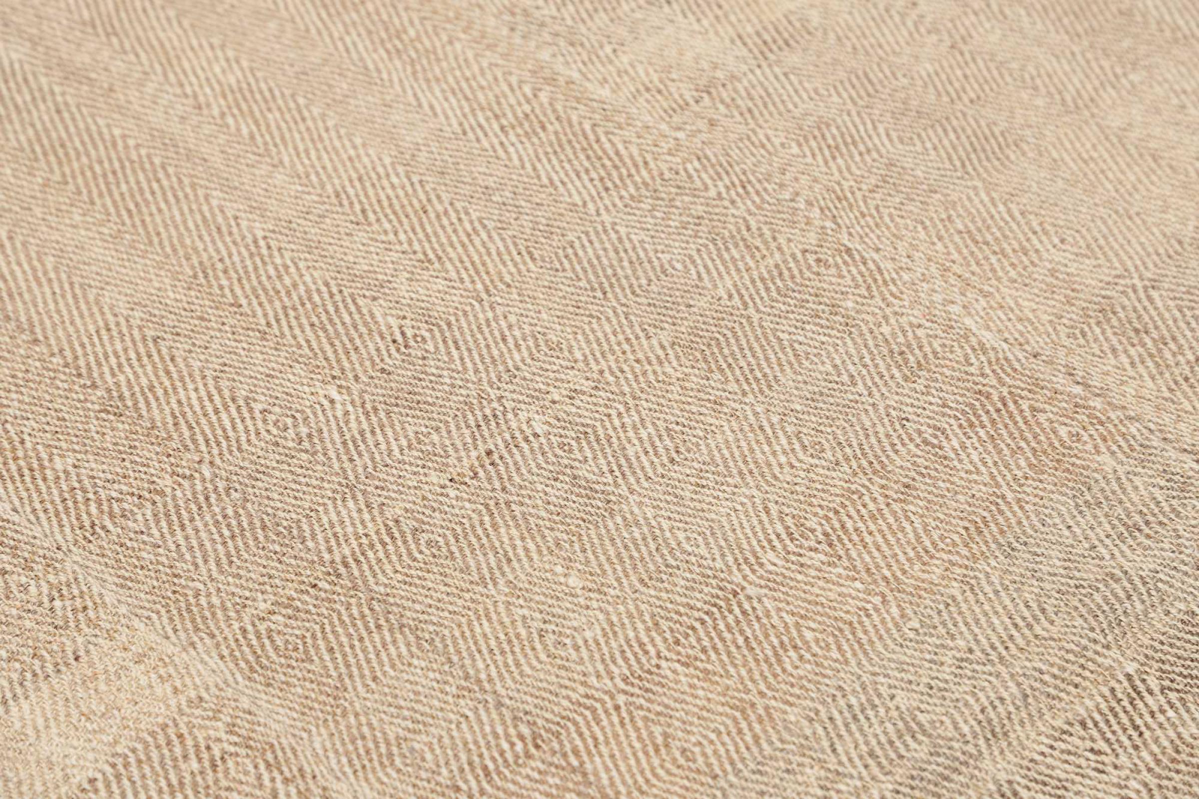 Este tapete foi feito à mão sobre um tear como uma trama plana. Flatweave é o termo utilizado para descrever tapetes que não têm pêlo. Como o nome promete, estes tapetes são tecidos e não atados. Isto resulta num tapete plano com uma superfície estruturada. Os tecidos planos não são tão macios e geralmente mais finos do que os tapetes com nós. Ao mesmo tempo, são muito menos complexos de fabricar e podem normalmente ser dispostos de ambos os lados (frente e verso). Os seus padrões são normalmente geométricos, o que é determinado pelo tecido.