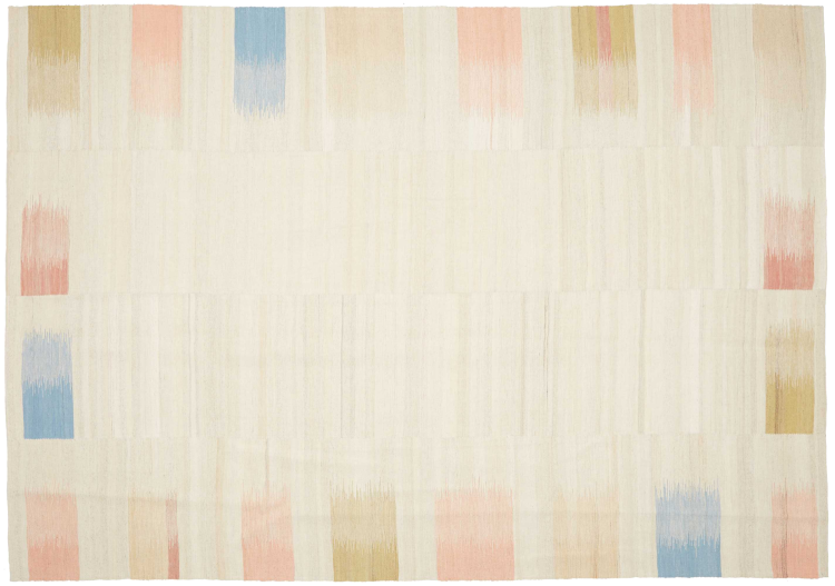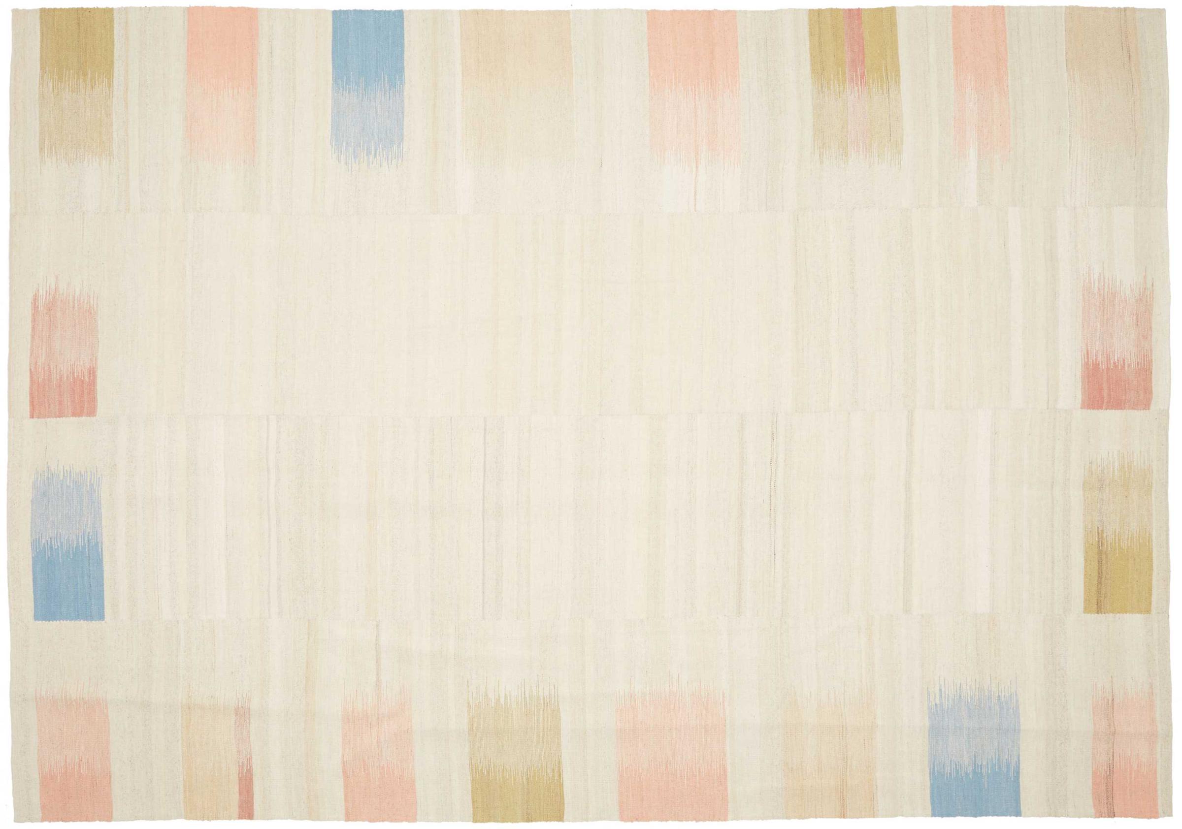 Este kilim fars tecido à mão combina padrões e ornamentos persas com a tradição de tramas planas. Uma grande e moderna combinação dos conceitos mais populares do Oriente. Isso cria um tapete com uma ampla gama de usos. Seja como colcha ou tapete na frente do sofá - um kilim Fars torna isso possível e agora pode ser encontrado nas revistas de design de interiores mais conhecidas. Os tapetes Kilim Fars são tecidos à mão no Irã e, portanto, estão entre os kilims da mais alta qualidade.