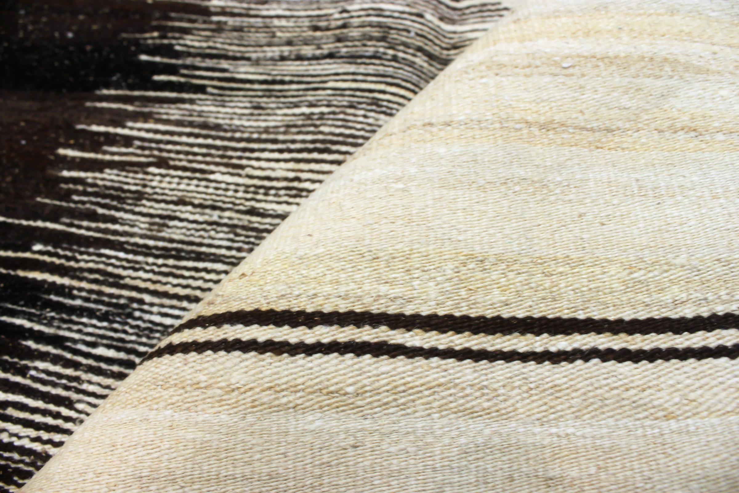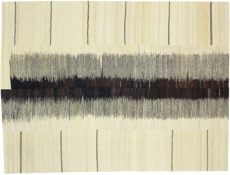 Este tapete foi feito à mão sobre um tear como uma trama plana. Flatweave é o termo utilizado para descrever tapetes que não têm pêlo. Como o nome promete, estes tapetes são tecidos e não atados. Isto resulta num tapete plano com uma superfície estruturada. Os tecidos planos não são tão macios e geralmente mais finos do que os tapetes com nós. Ao mesmo tempo, são muito menos complexos de fabricar e podem normalmente ser dispostos de ambos os lados (frente e verso). Os seus padrões são normalmente geométricos, o que é determinado pelo tecido.