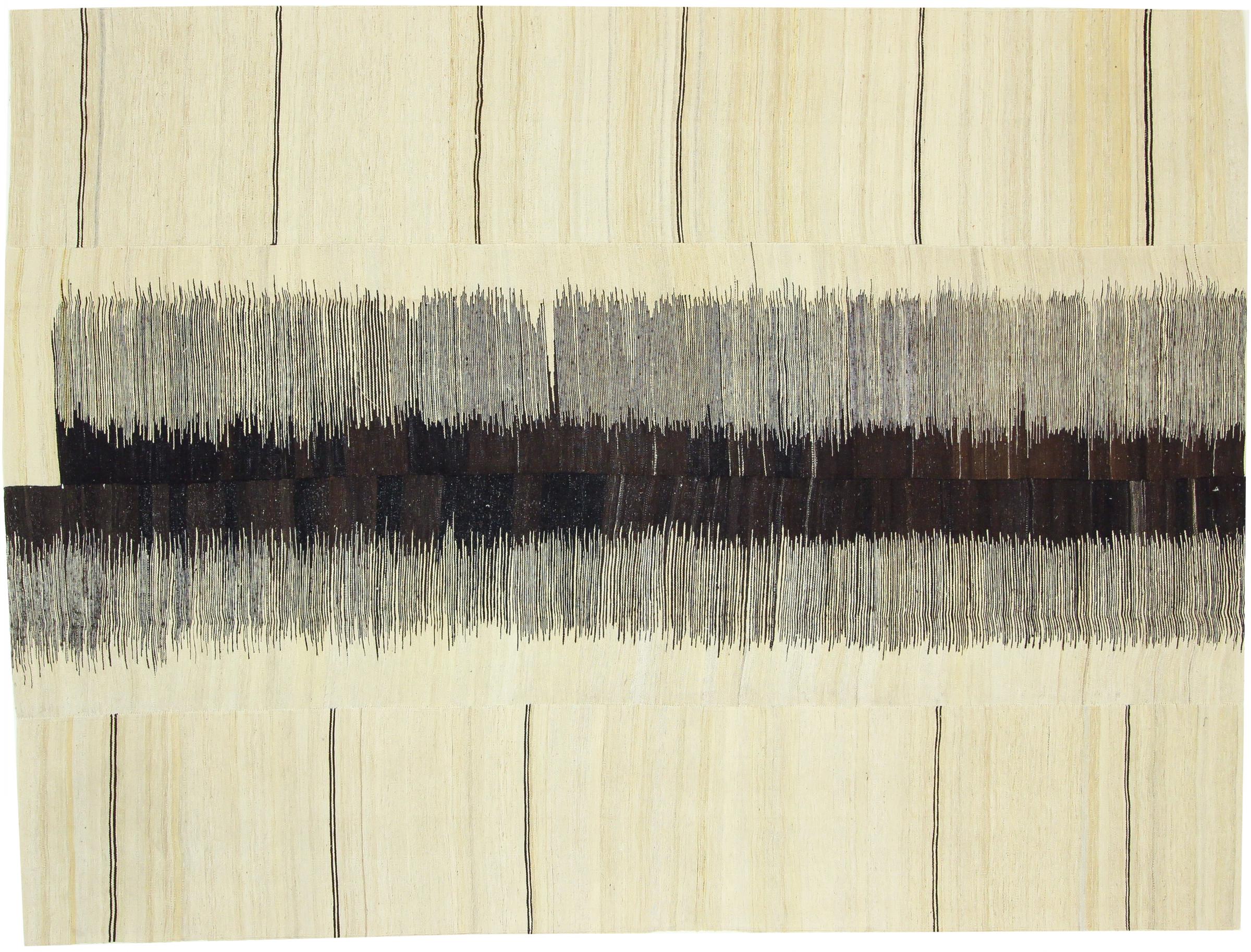 Este kilim fars tecido à mão combina padrões e ornamentos persas com a tradição de tramas planas. Uma grande e moderna combinação dos conceitos mais populares do Oriente. Isso cria um tapete com uma ampla gama de usos. Seja como colcha ou tapete na frente do sofá - um kilim Fars torna isso possível e agora pode ser encontrado nas revistas de design de interiores mais conhecidas. Os tapetes Kilim Fars são tecidos à mão no Irã e, portanto, estão entre os kilims da mais alta qualidade.